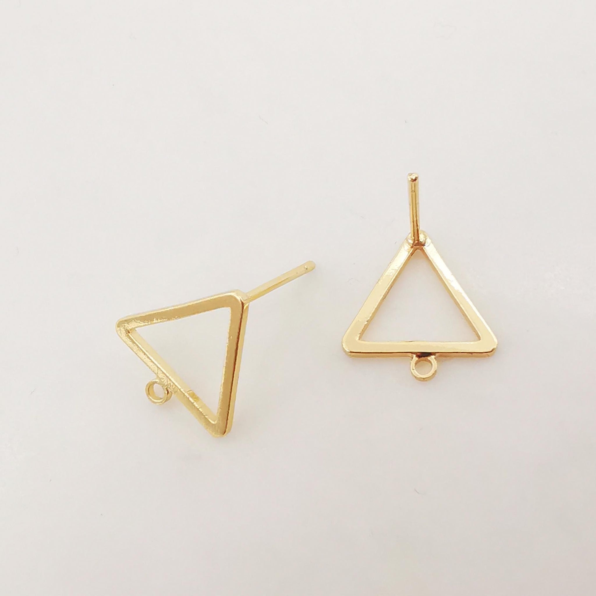 4pcs 14K Gold Triangle Post With Loop, Openwork Triangle Stud Earring Nickel Free, 12mm, Hypoallergenic Earring Findings Z075
