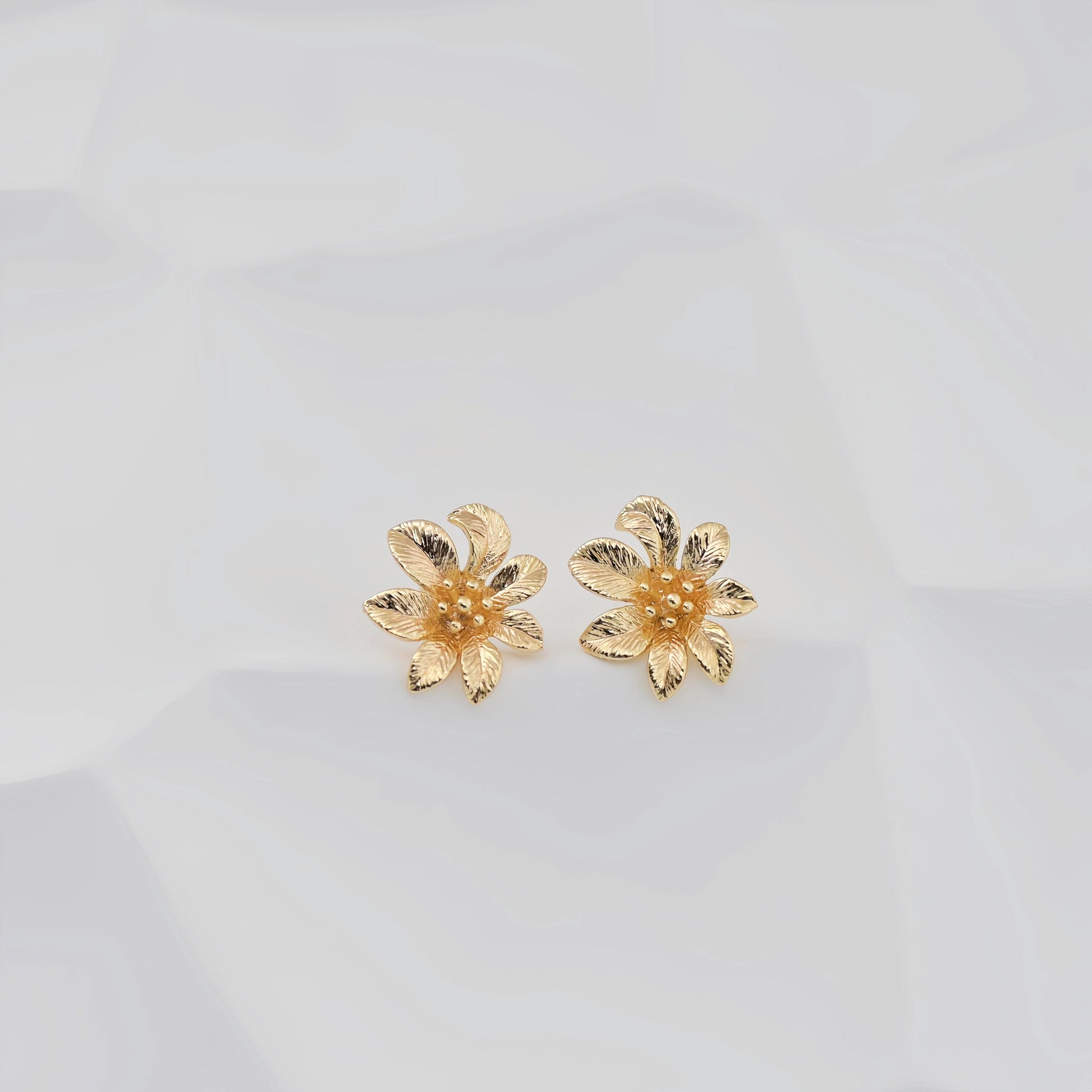 4PCS Flower Earring Post, 18K Real Gold Plated Brass Stud Earring With Loop, Nickel Free, Earring Finding ZX005