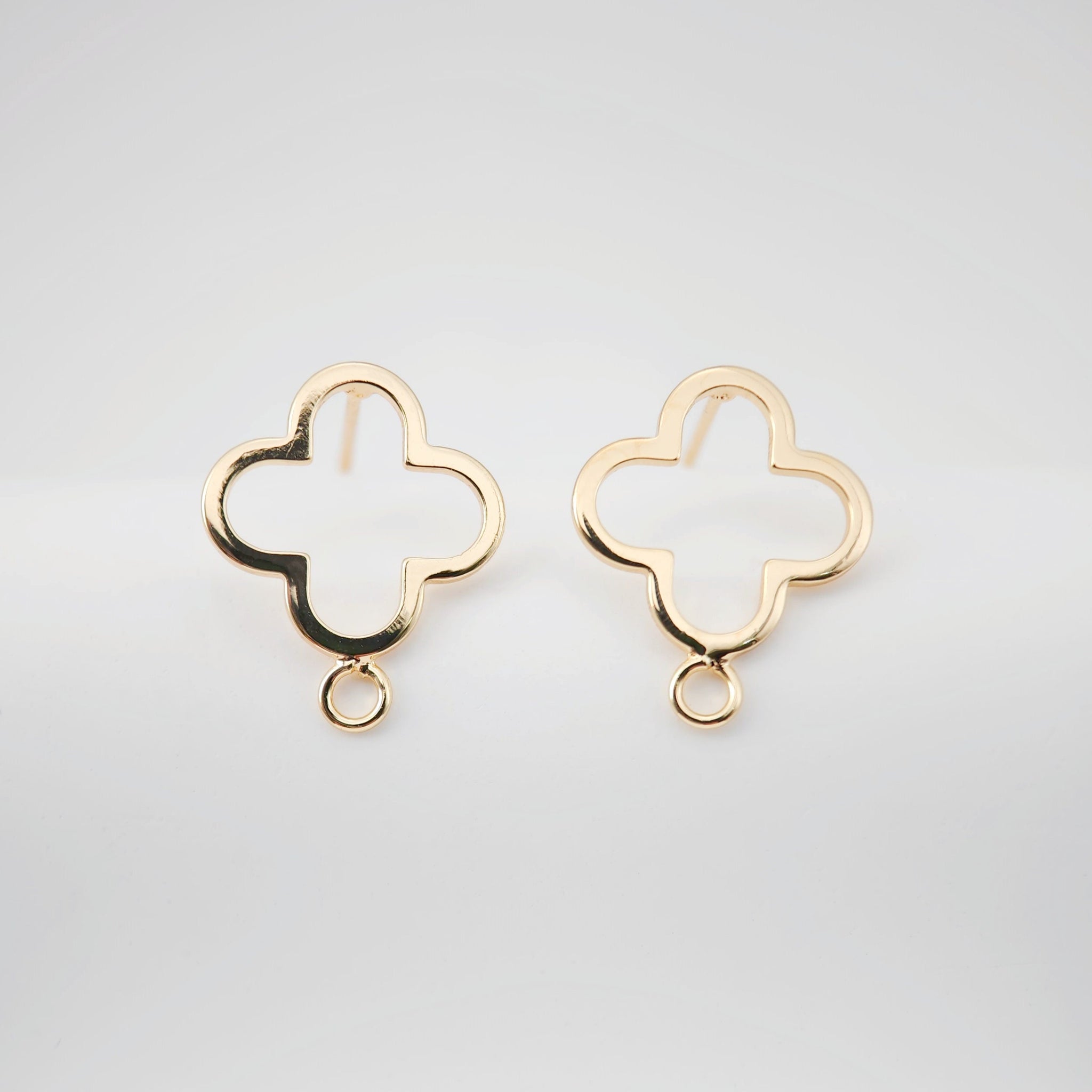 4pcs Four Leaf Clover Stud Earrings, 18K Gold Earring Post With Loop, Nickel Free, Hypoallergenic Earring Findings ZX214