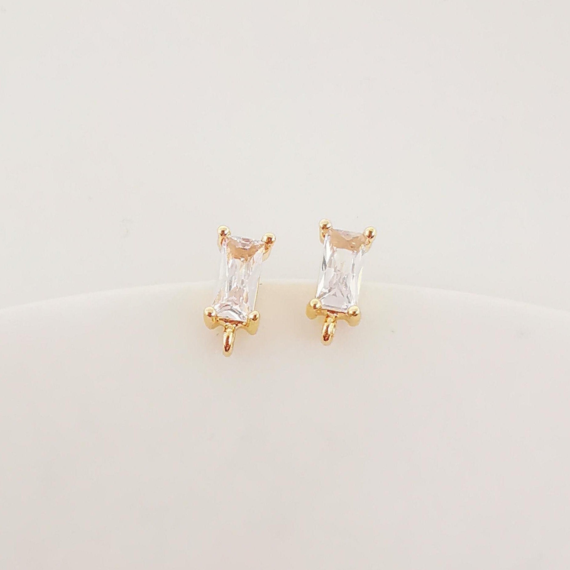 4pcs Rectangular CZ Earring Post With Loop, S925 Silver Pin Nickel Free Post, 18K gold Plated, Hypoallergenic Earring Findings ZX059