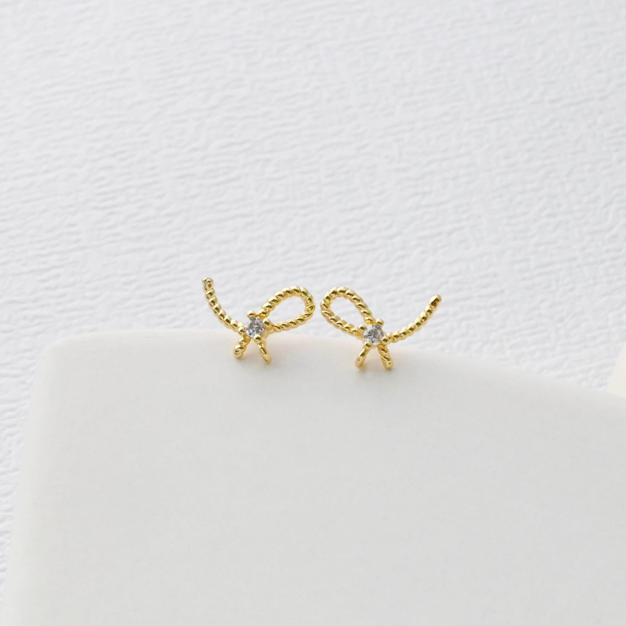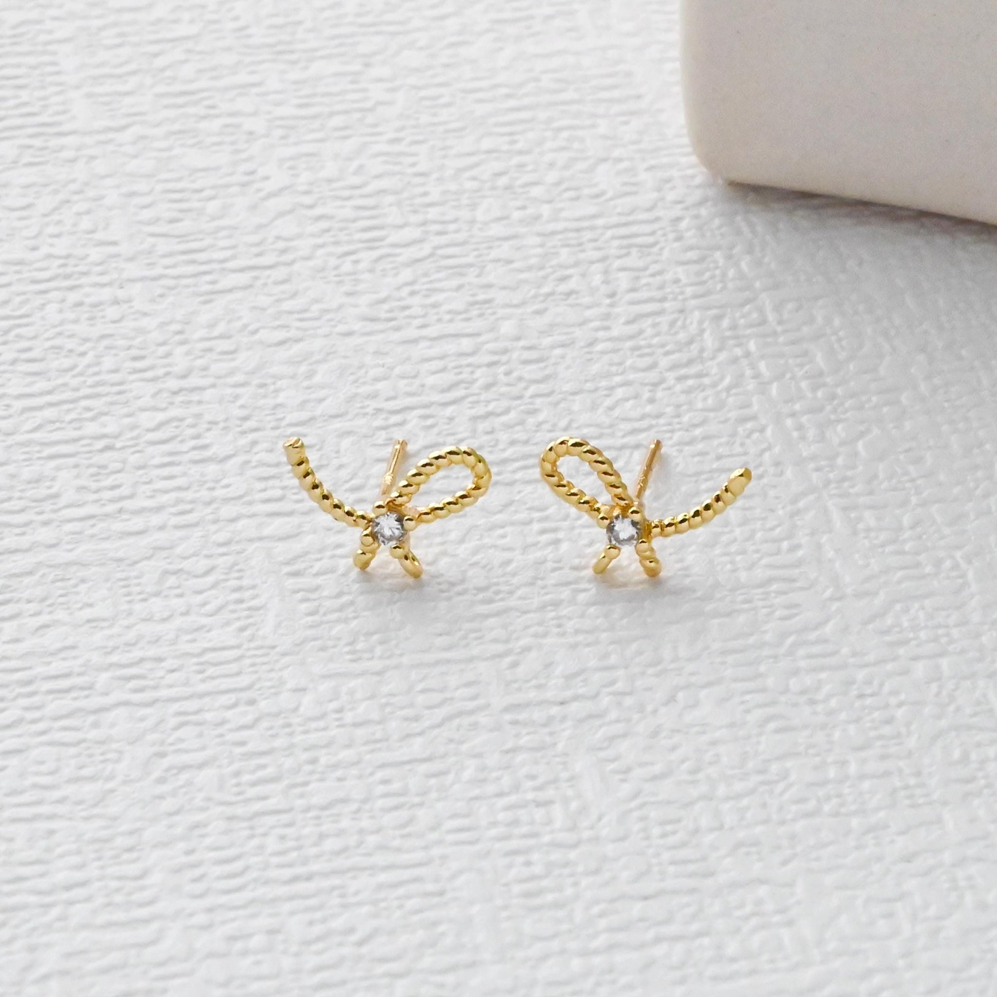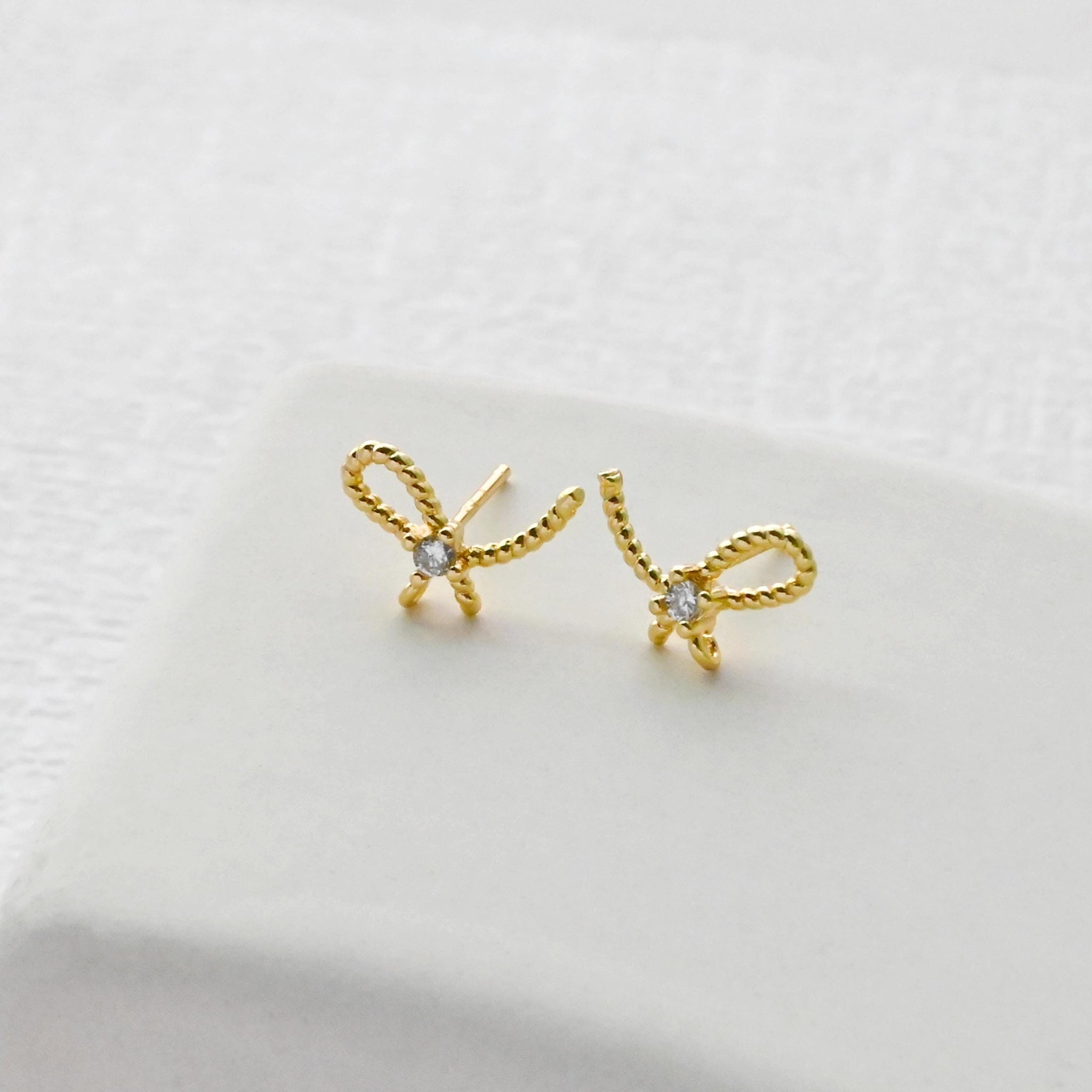 Bow Tie Earring Post With Loop, 18K Gold Plated, Green CZ Pave, Nickel Free Earrings, Bow Tie Ear Stud with Loop D0467