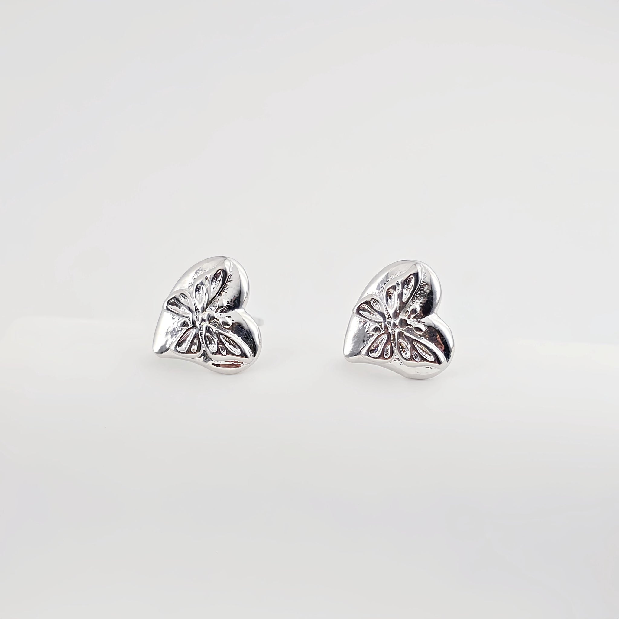 Butterfly Ear Post, Heart Shape Post, S925 Silver Ear Pin, Nickel Free, Ear Studs, 18K Gold...