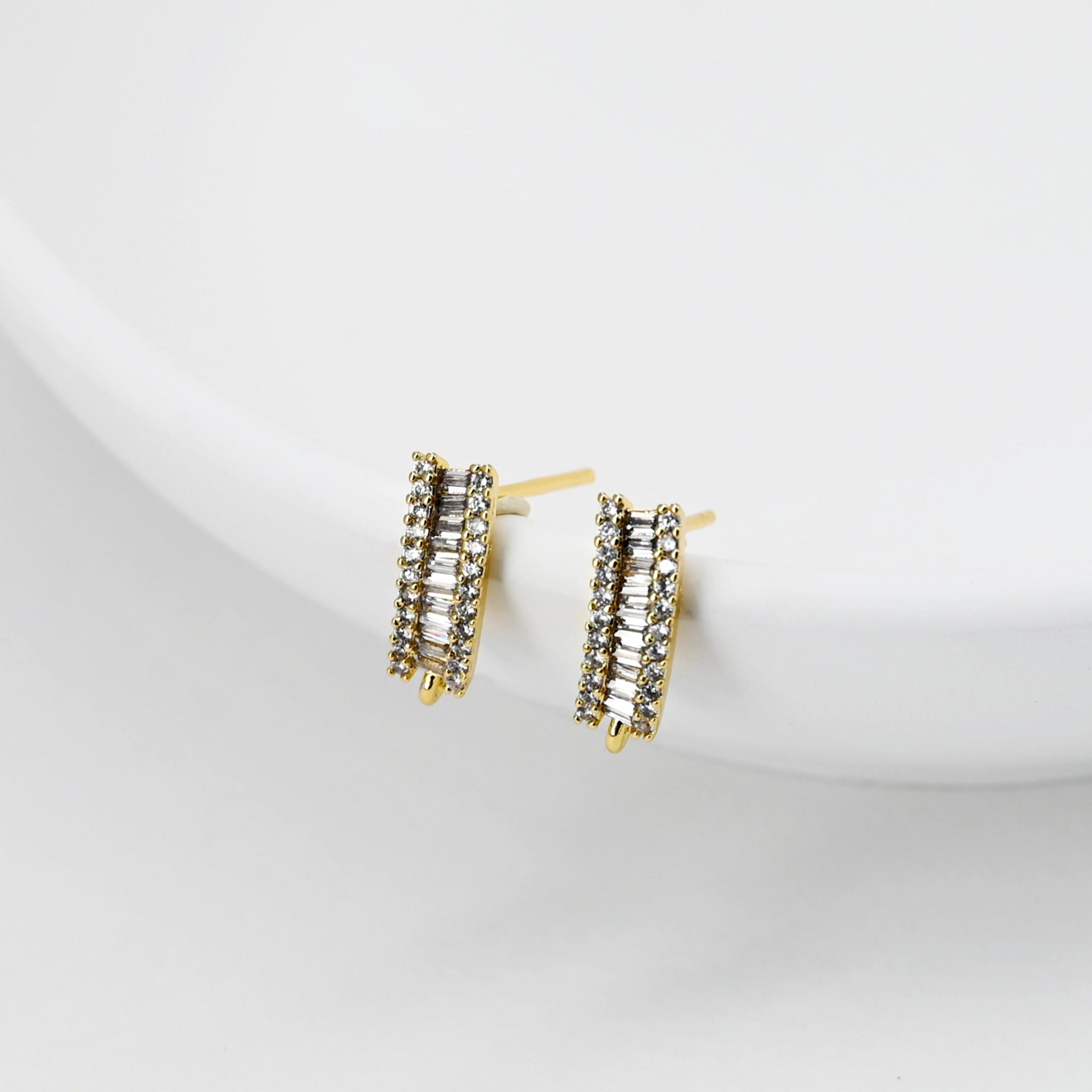 C Shape Ear Post, Nickel Free, CZ Pave, 13*4.8mm, S925 silver pin, 18K Gold Plated Stud Earring Finding D0443