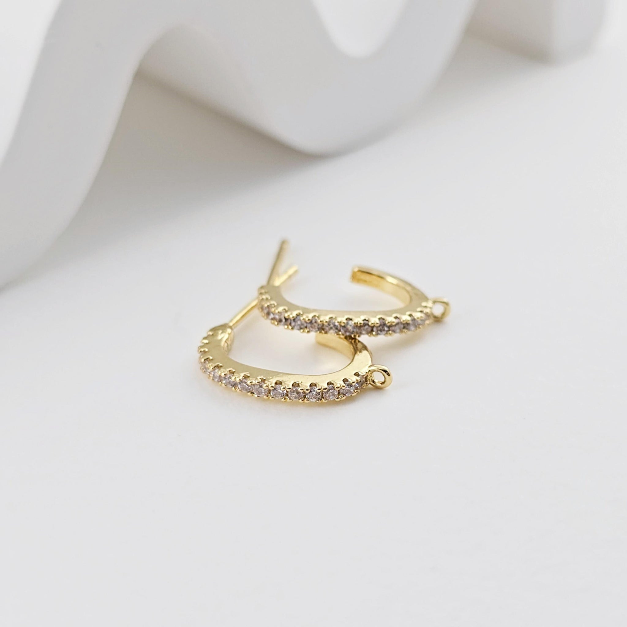 C Shape Ear Post, Nickel Free, CZ Pave, 18.9*16.4mm, 18K Gold Plated Stud Earring Finding D0277