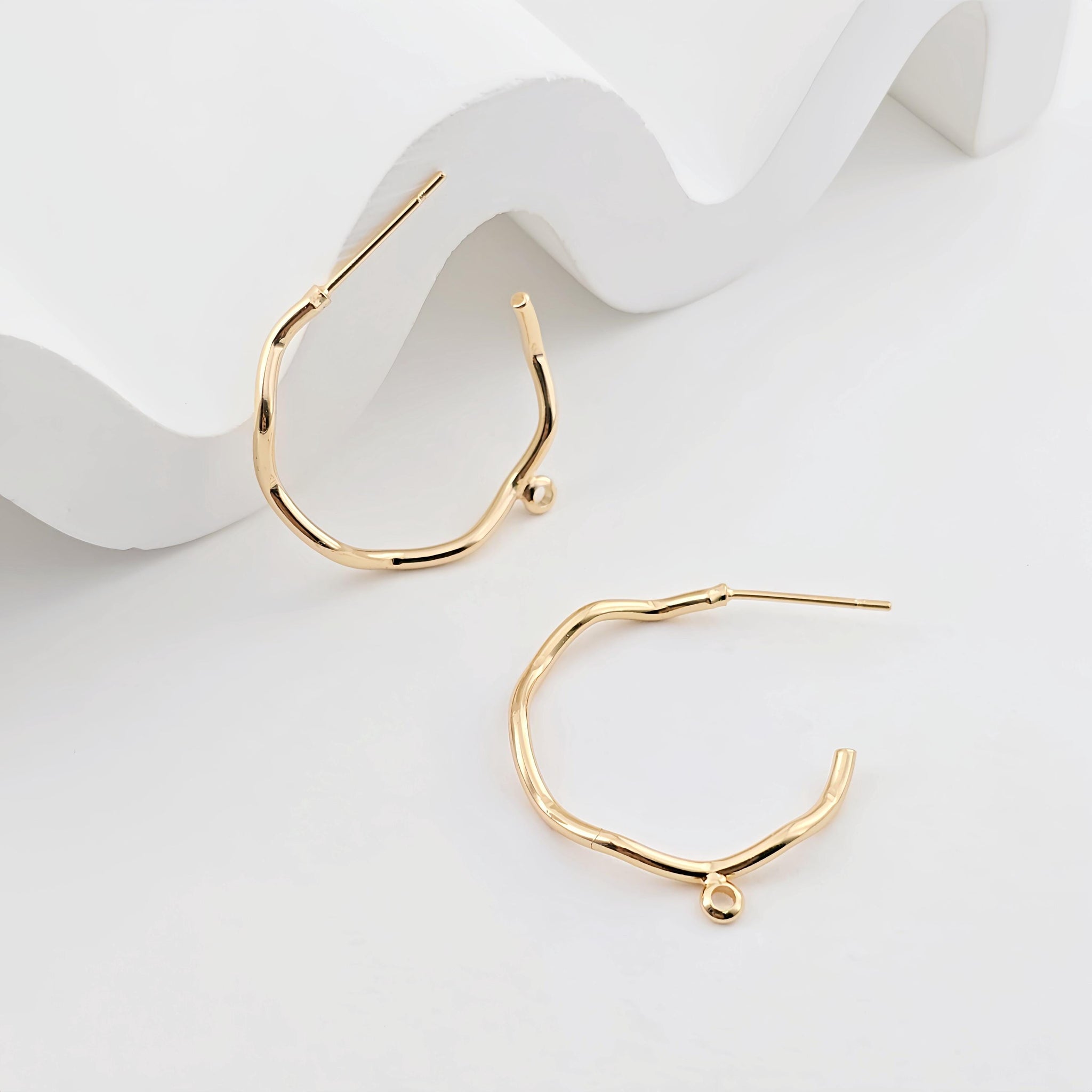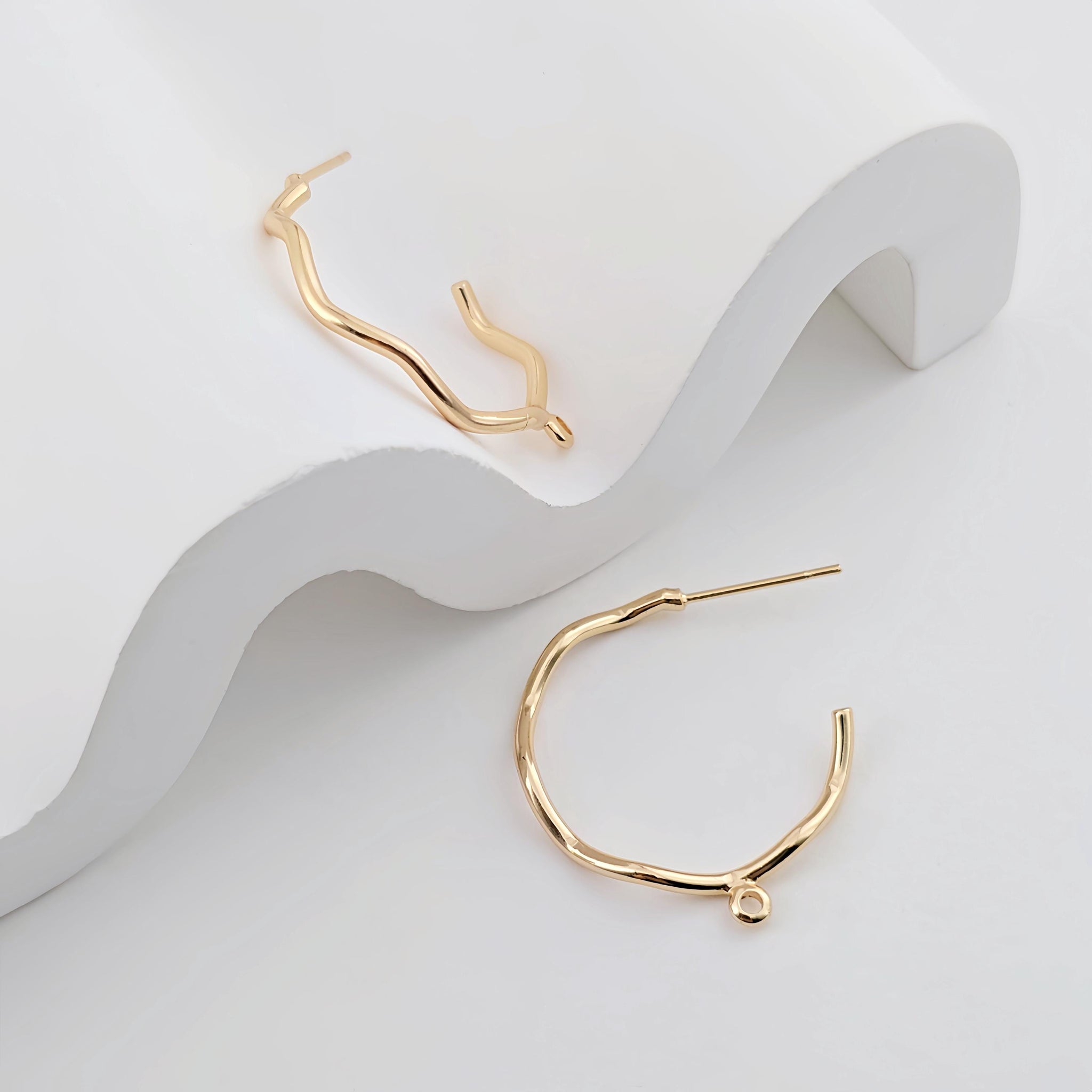 C Shape Earrings Post With Loop, Twig Bending Style Post Earring, S925 silver pin, 18K Gold Nickel Free, Hypoallergenic Earring Findings ZX287