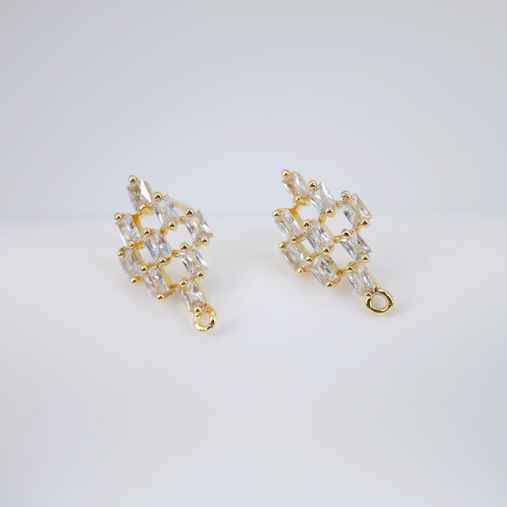 Cubic Zirconia Rhombus Post Earrings, Gold Earring Post with Loop, Hypoallergenic, Earring Findings, Handmade Earring Supplies D0033