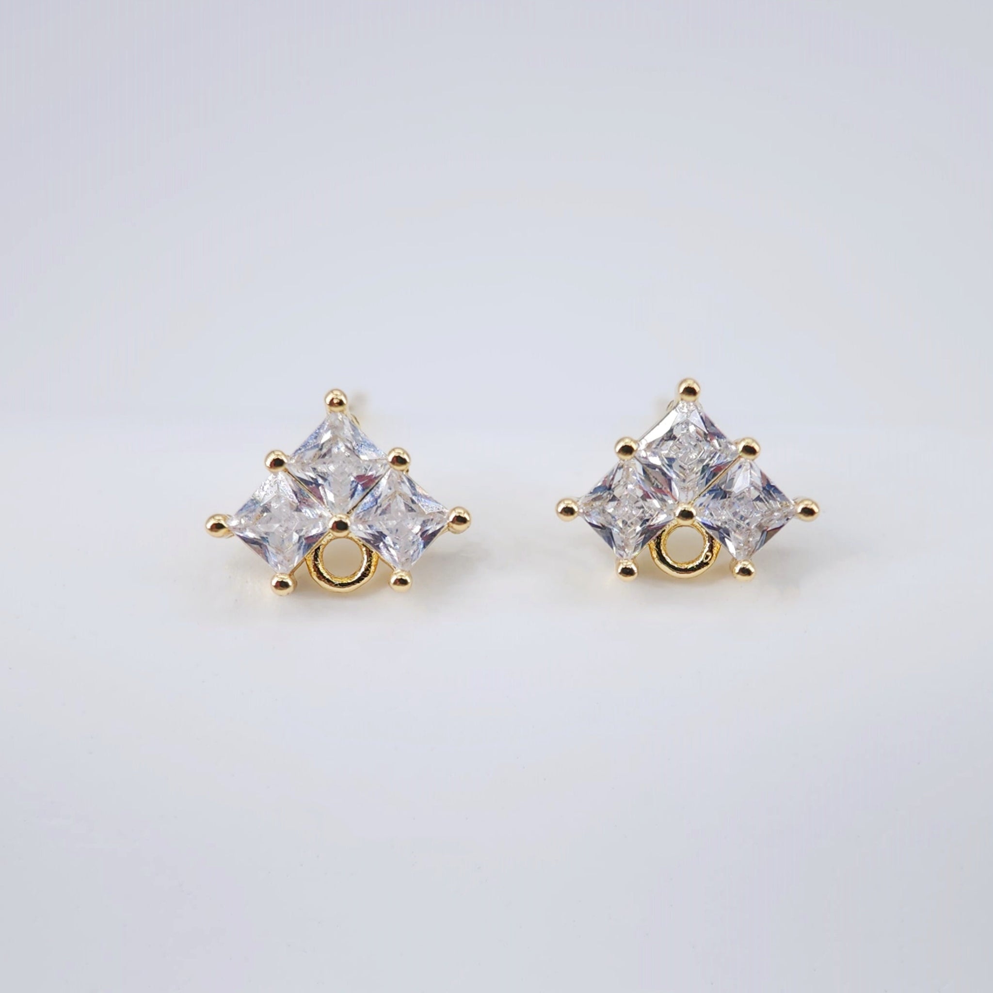 Cubic Zirconia Triangle Post Earrings, Gold Earring Post with Loop, Hypoallergenic, Earring Findings, Handmade Earring Supplies D0029
