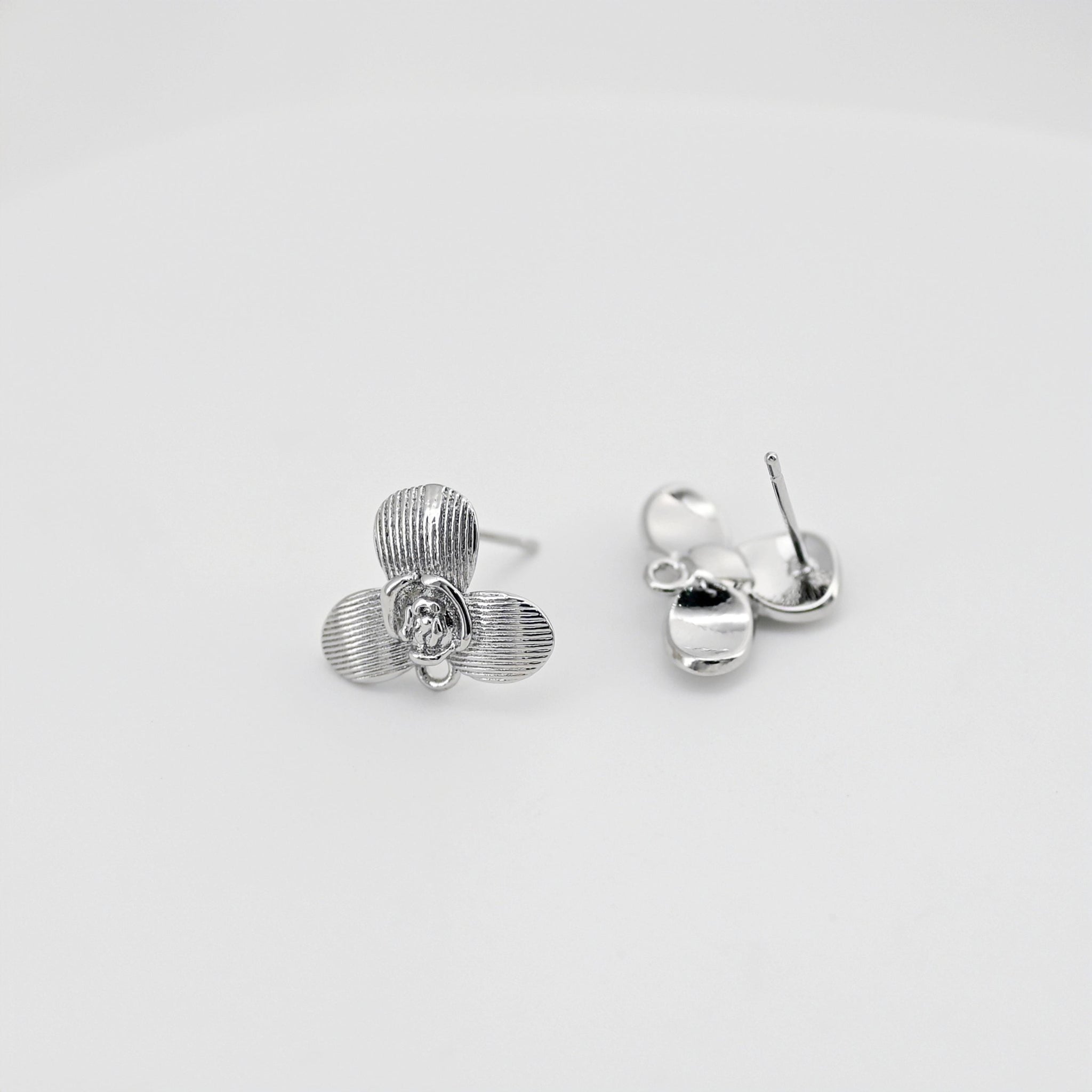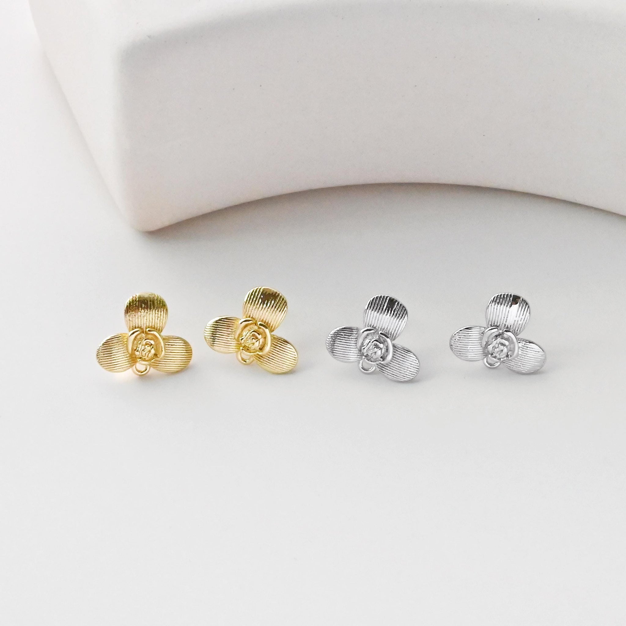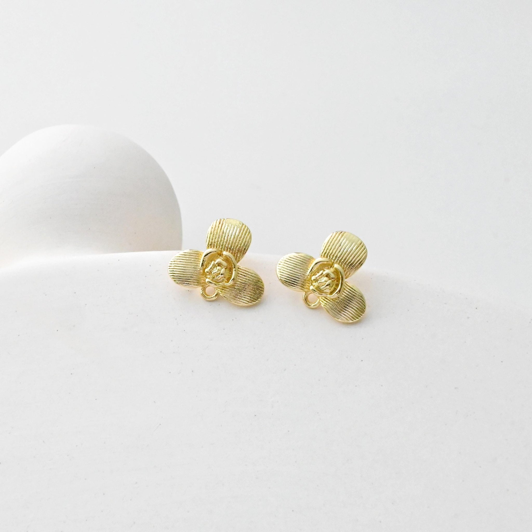 Flower Earring Post, 18K Real Gold Plated Brass Stud Earring With Loop, Nickel Free, Earring Finding D0444