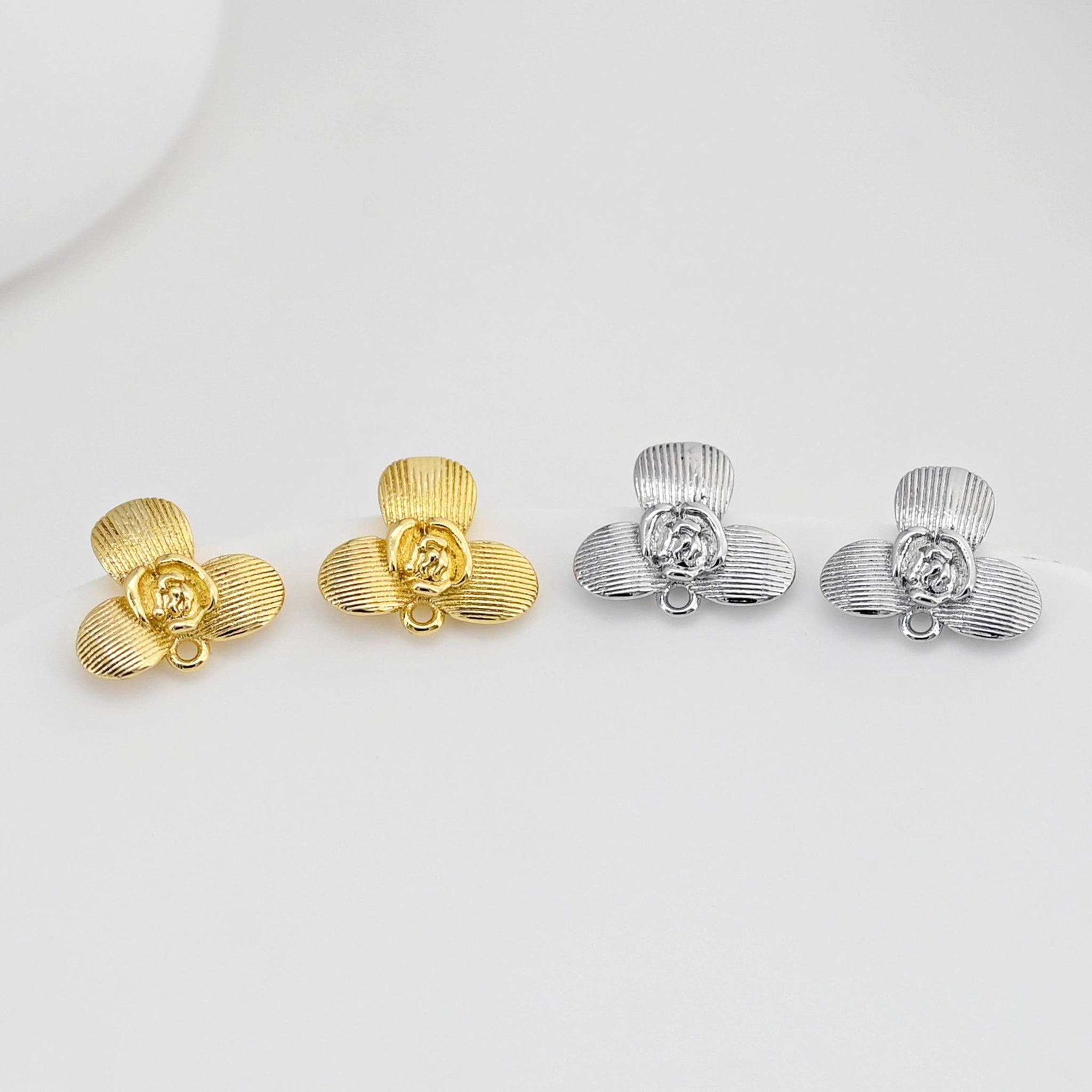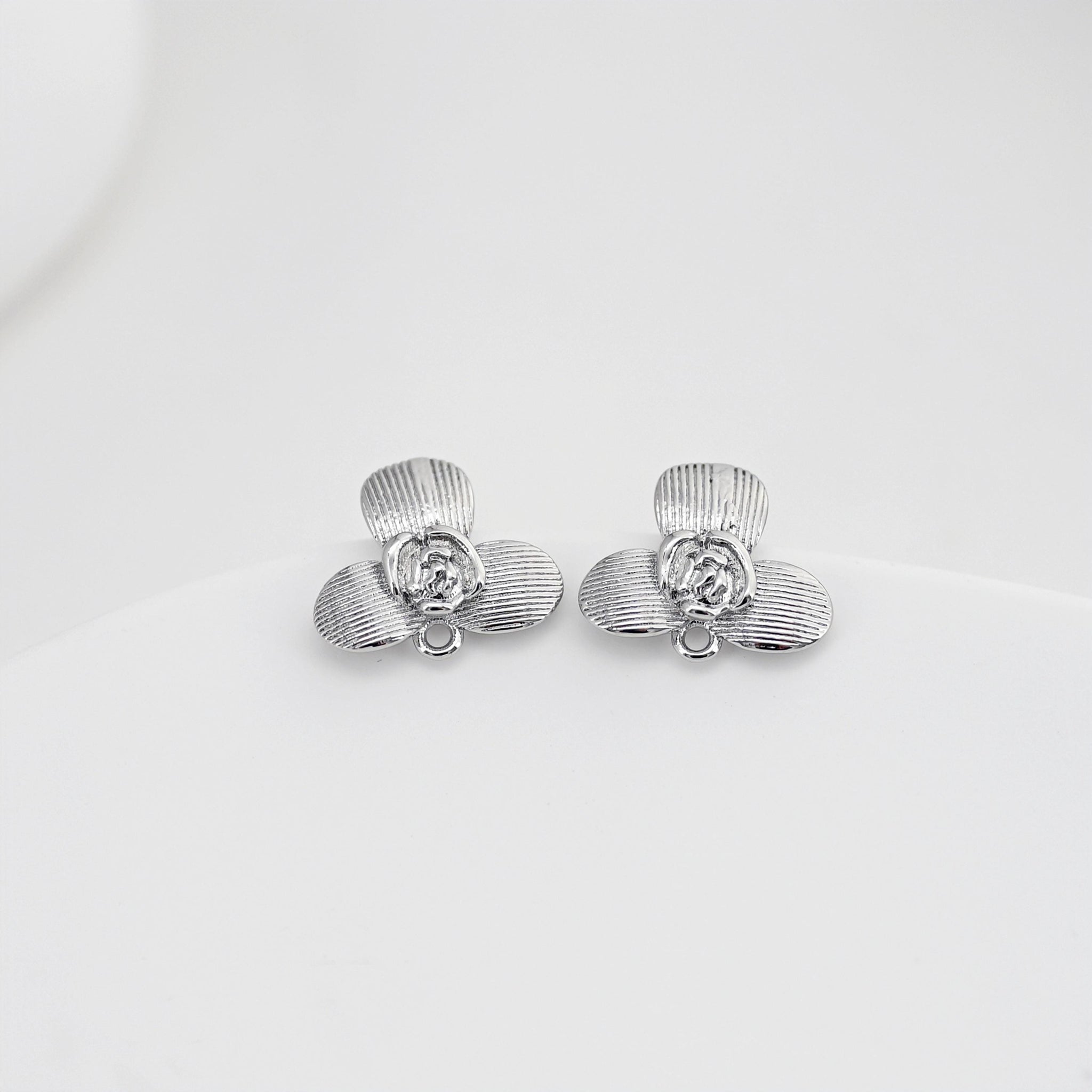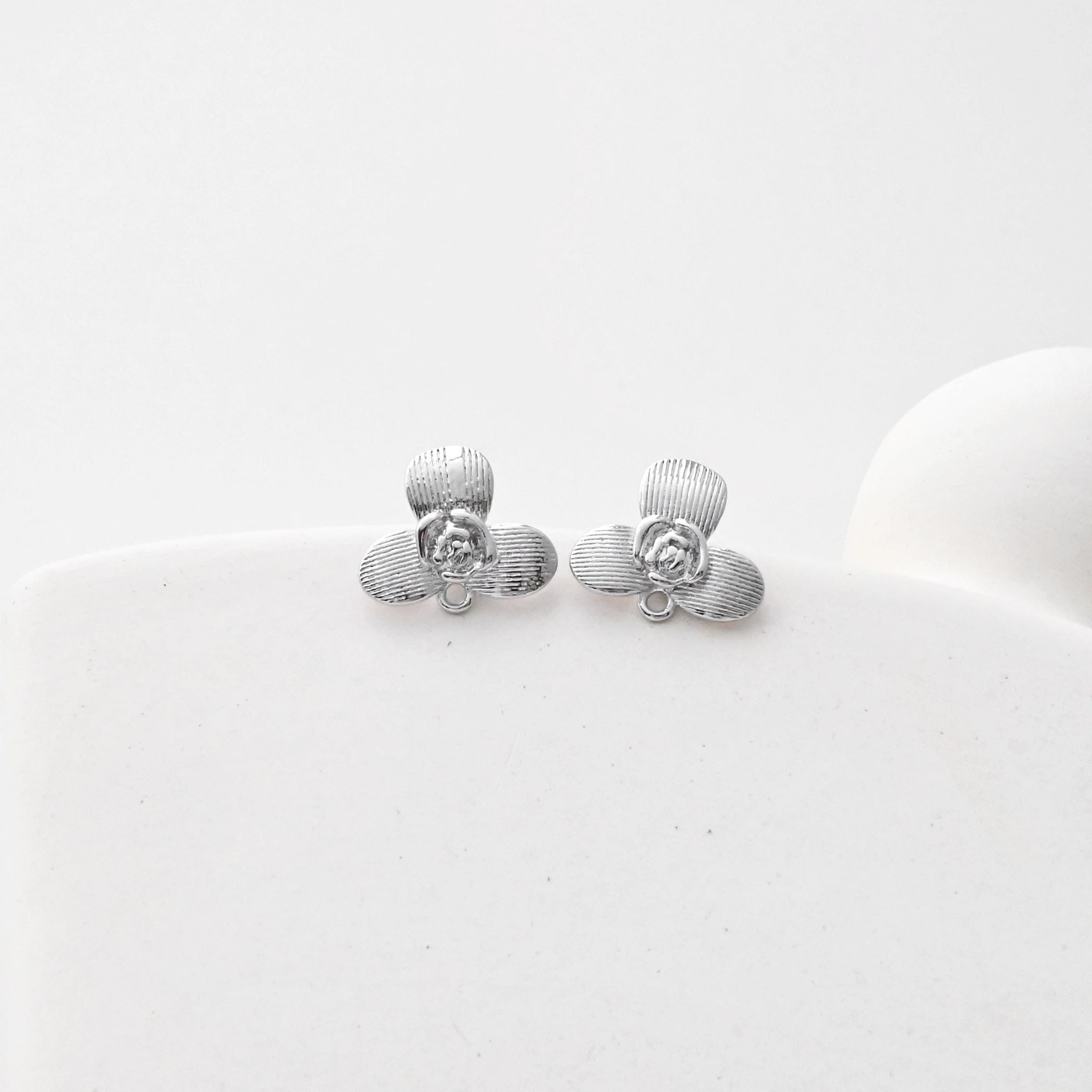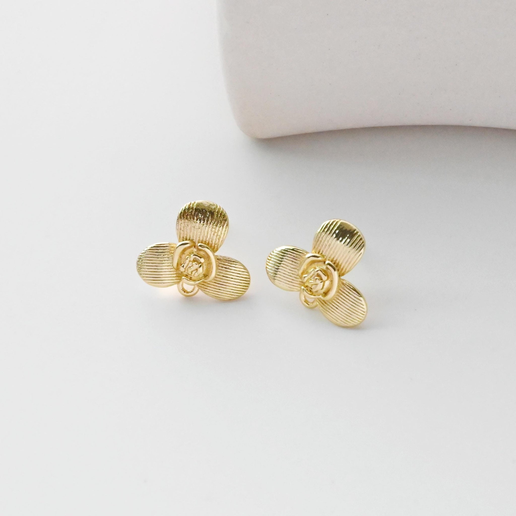 Flower Earring Post, 18K Real Gold Plated Brass Stud Earring With Loop, Nickel Free, Earring Finding D0444