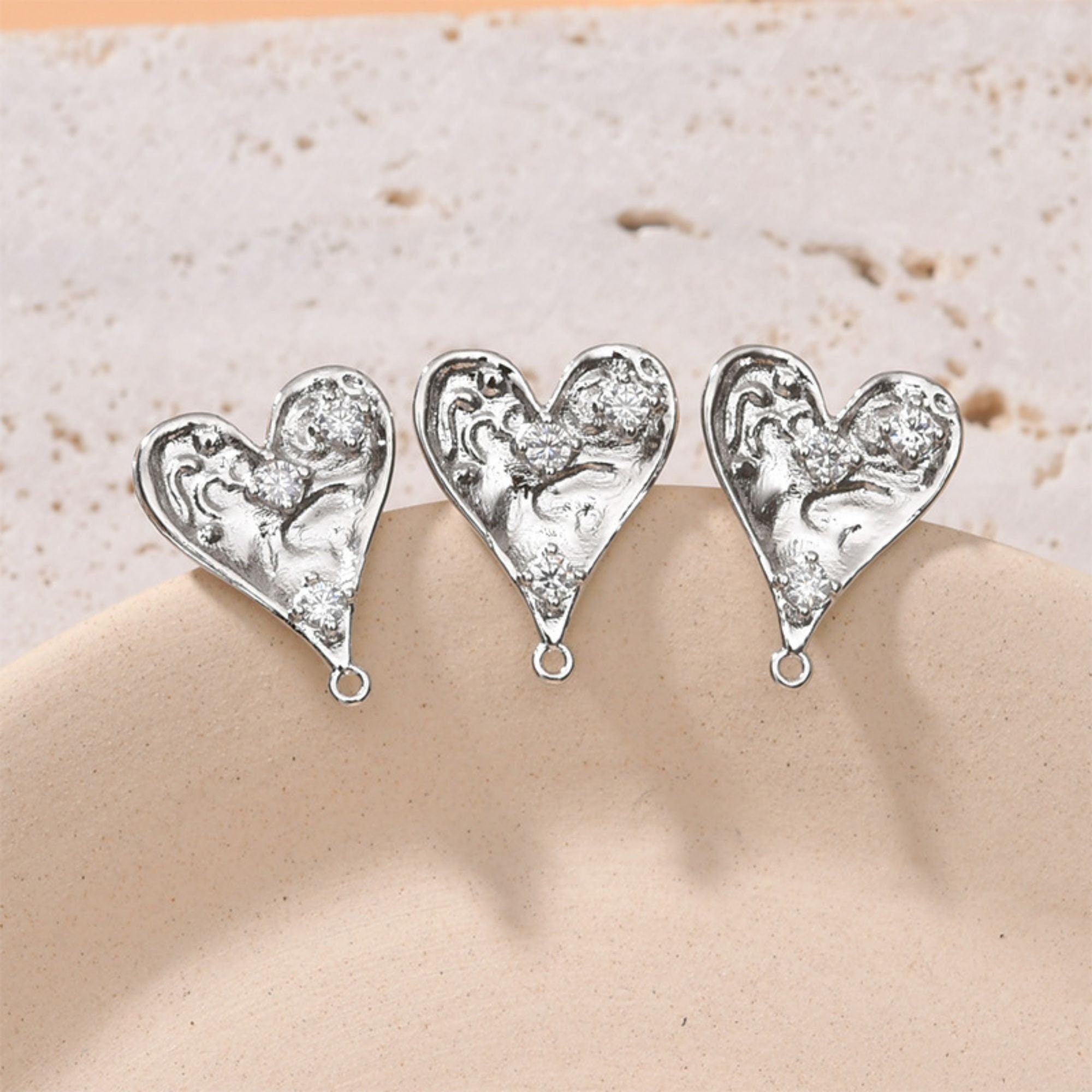 Gold Heart Earring Post, 14K Gold Nickel Free Earrings, S925 Silver Ear Pins, 19mm, Heart Shape...