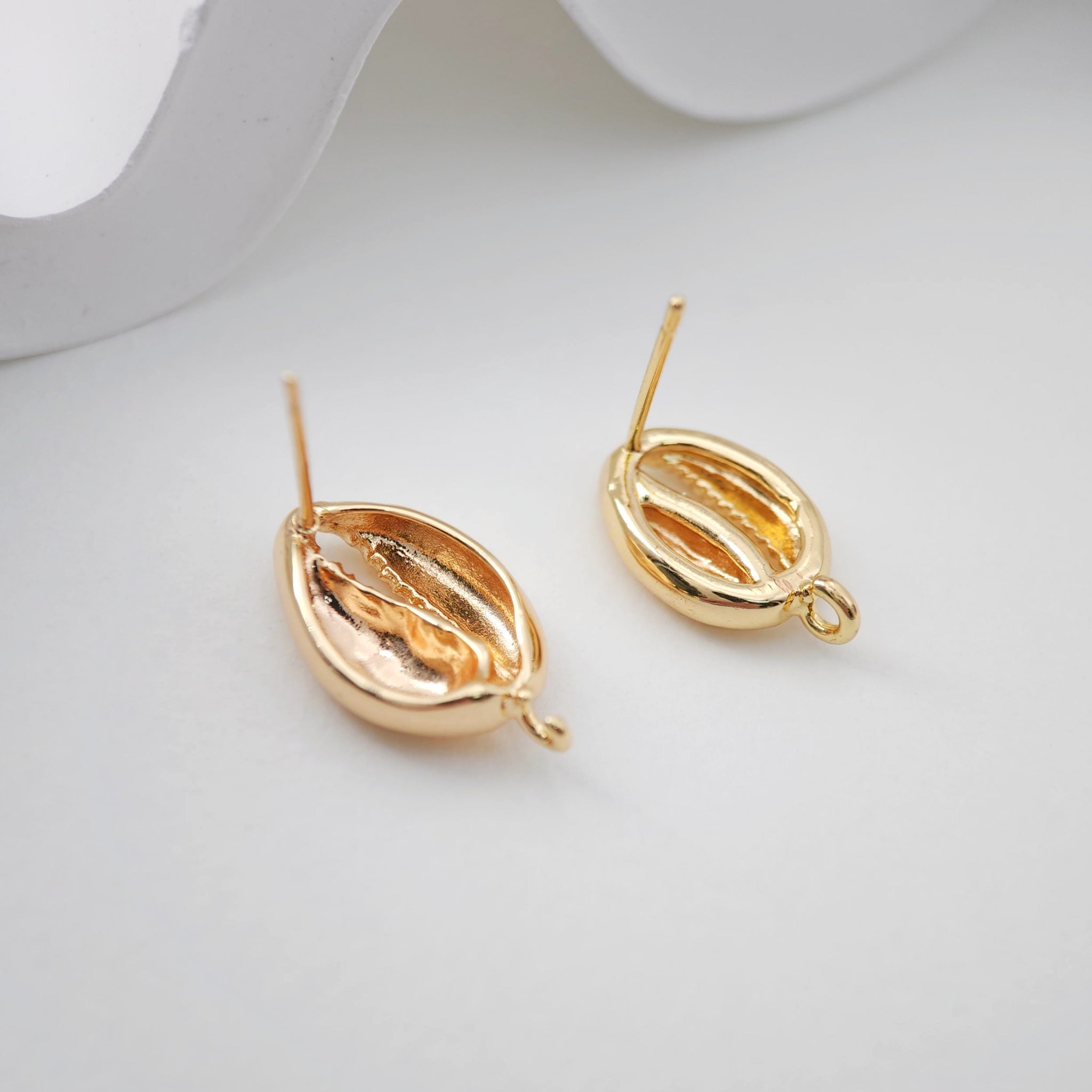 10pcs Gold Seashells Earring Post With Loop, S925 Silver Needle Nickel Free Earrings, Hypoallergenic Earring Findings Z071