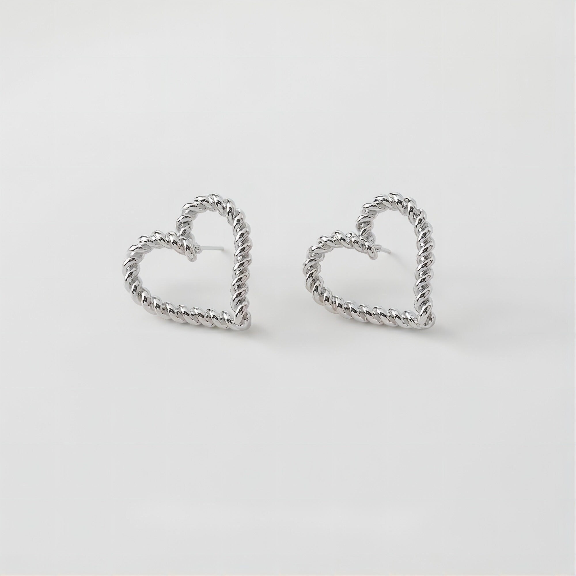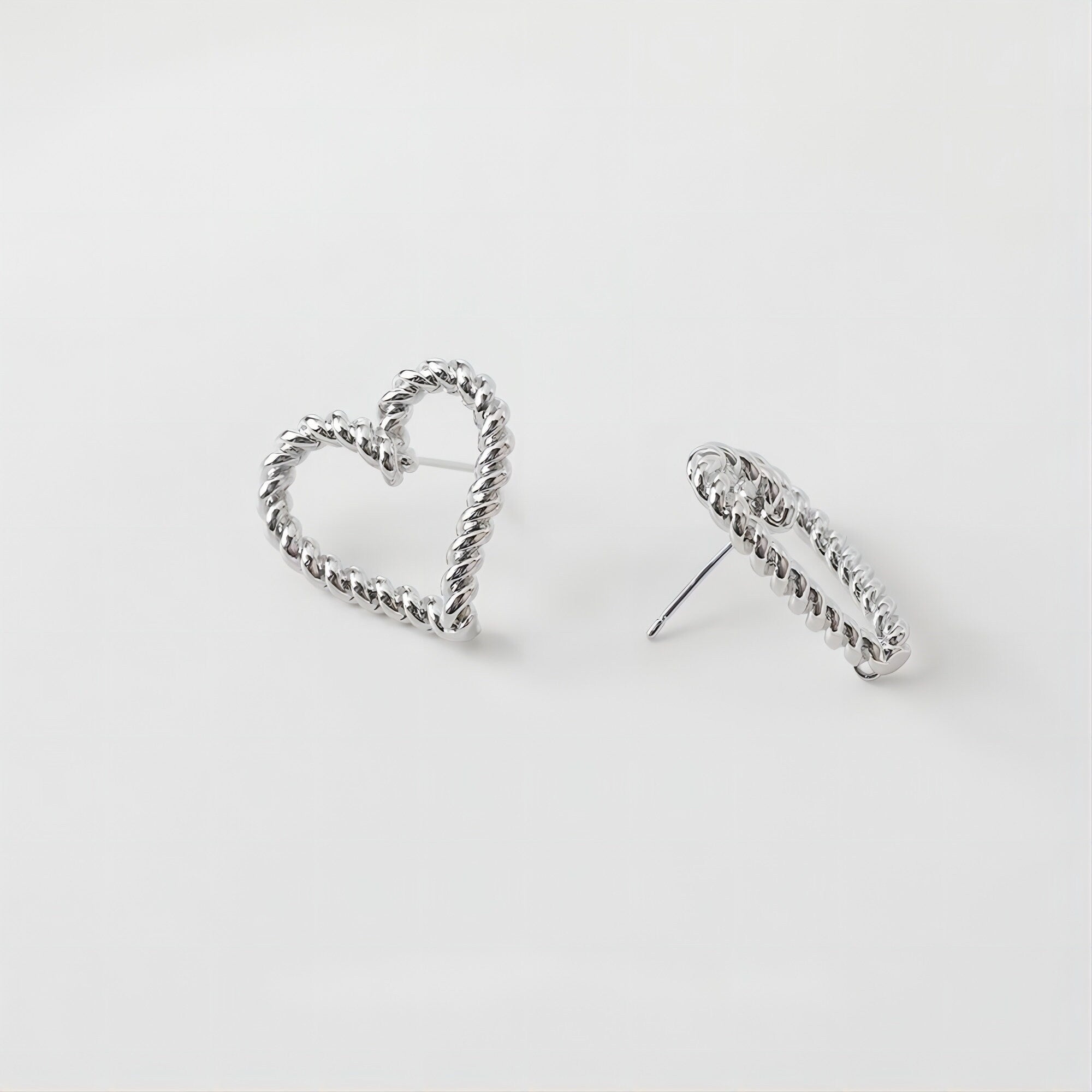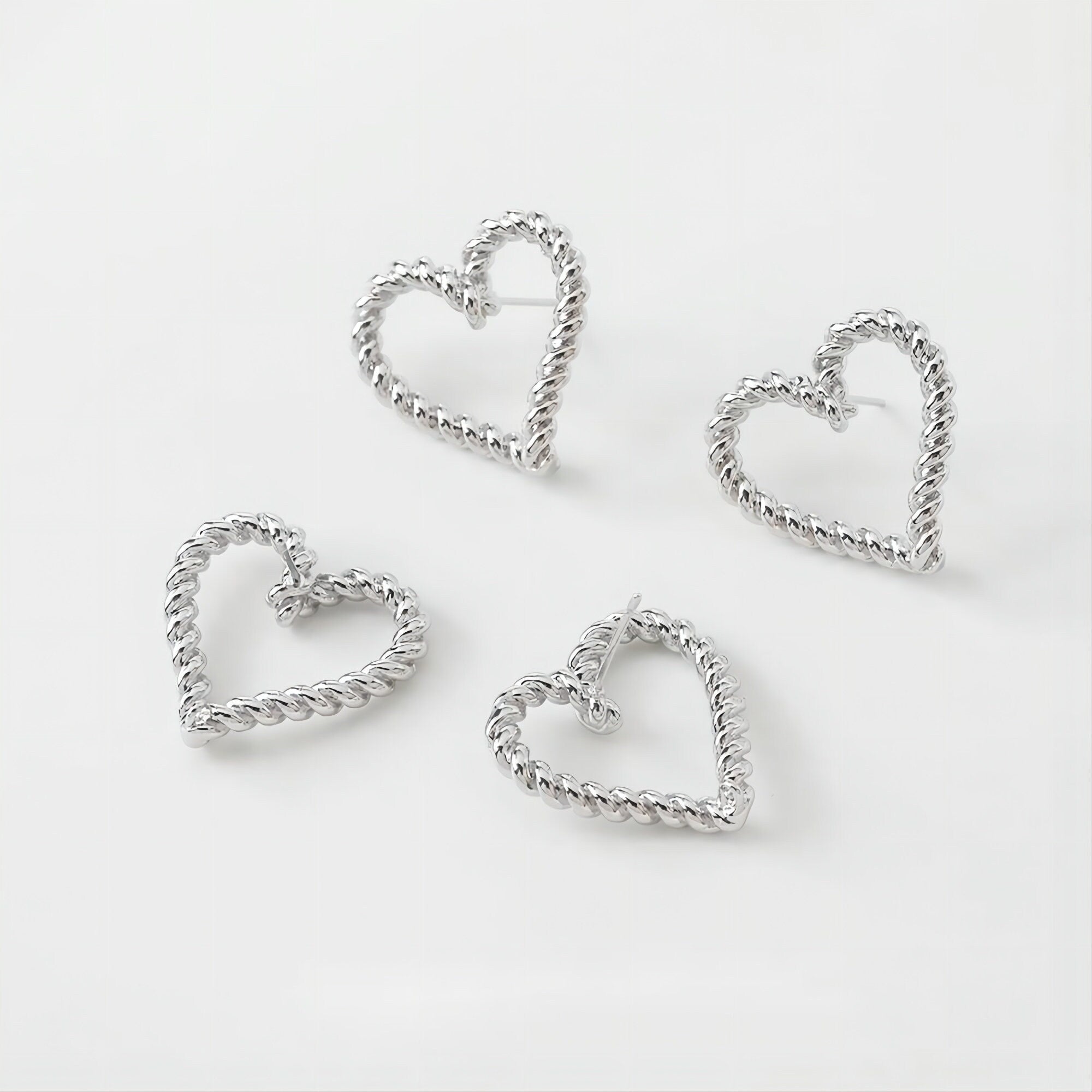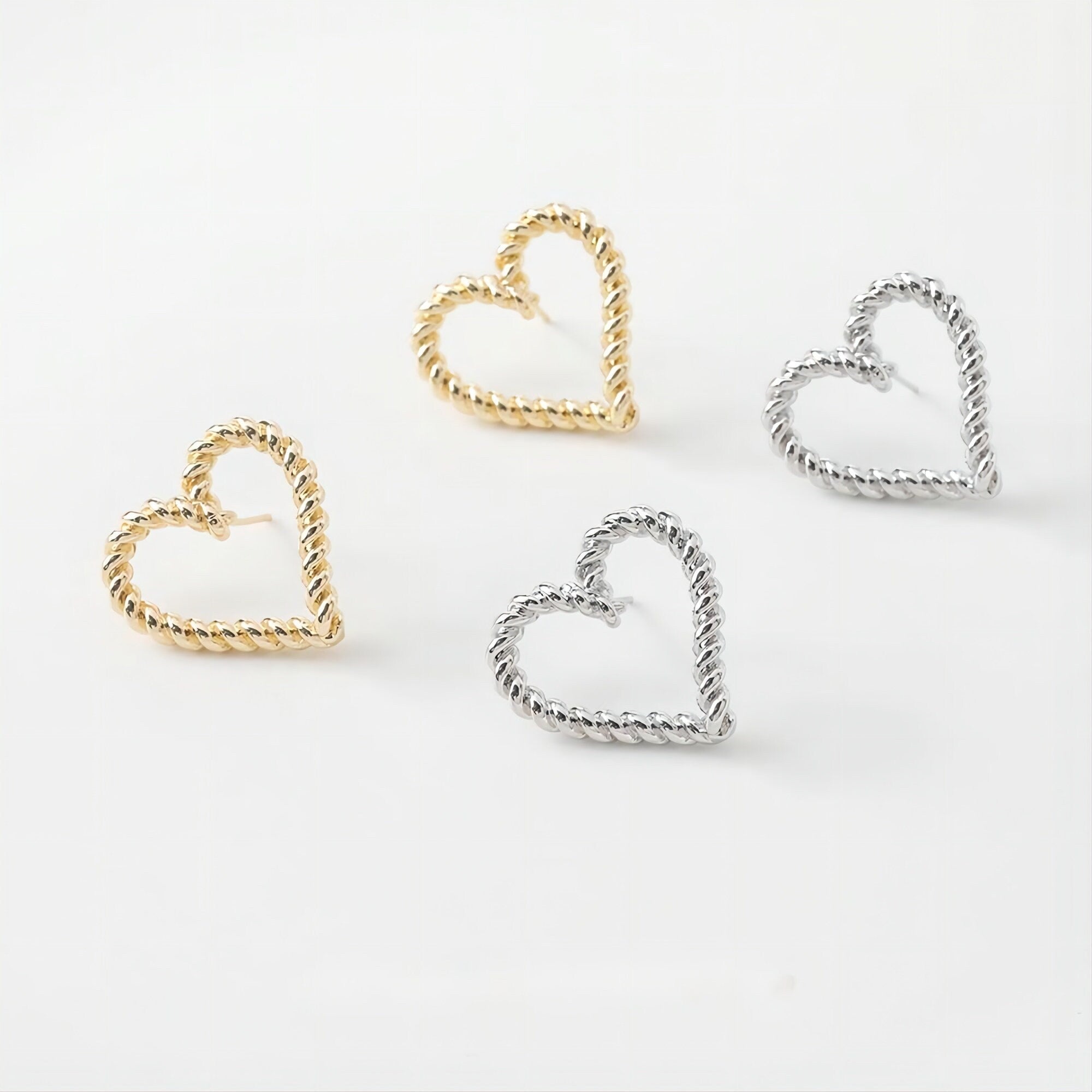 Gold Vintage Heart Earring Post, 24mm, S925 Silver Ear Pin Nickel Free Earrings, Ear Stud Loop, Hypoallergenic Earring Findings GE005