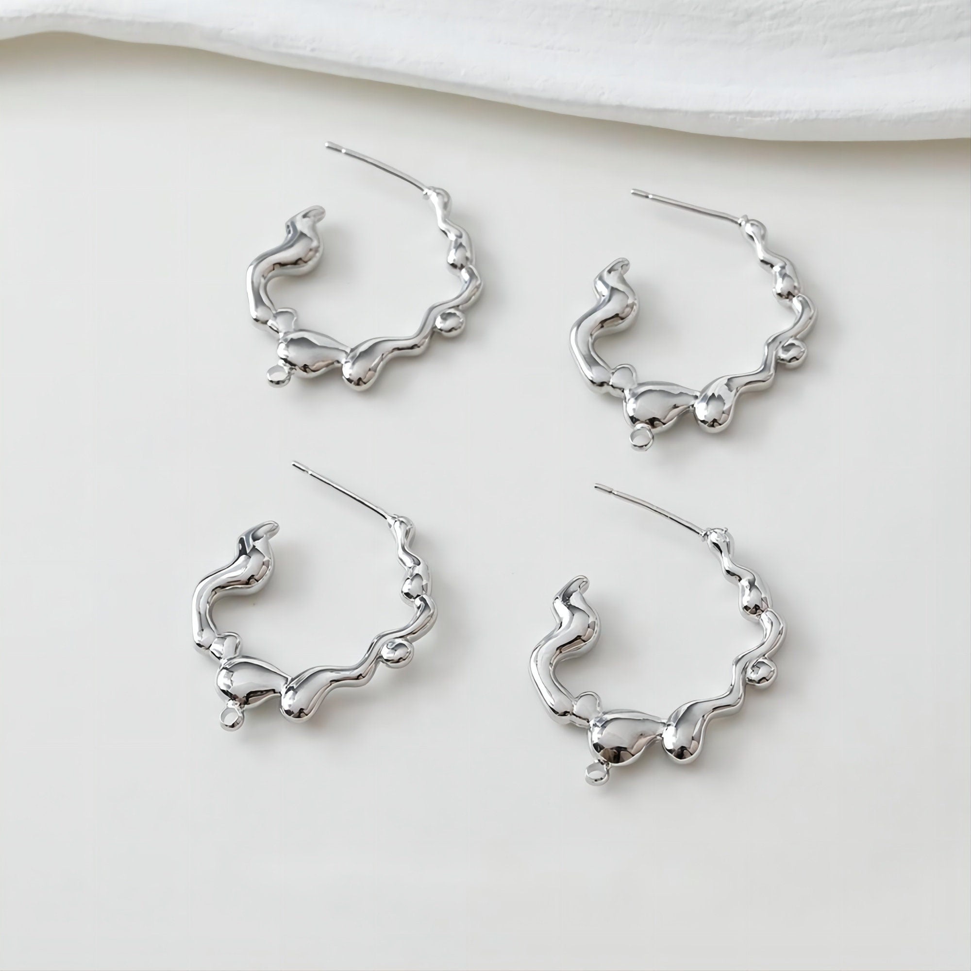 Irregular Drop Earring Post, 14K Gold/Silver, S925 Silver Pin Nickel Free Earrings, Circle Ear Stud with Loop GE028-D0016