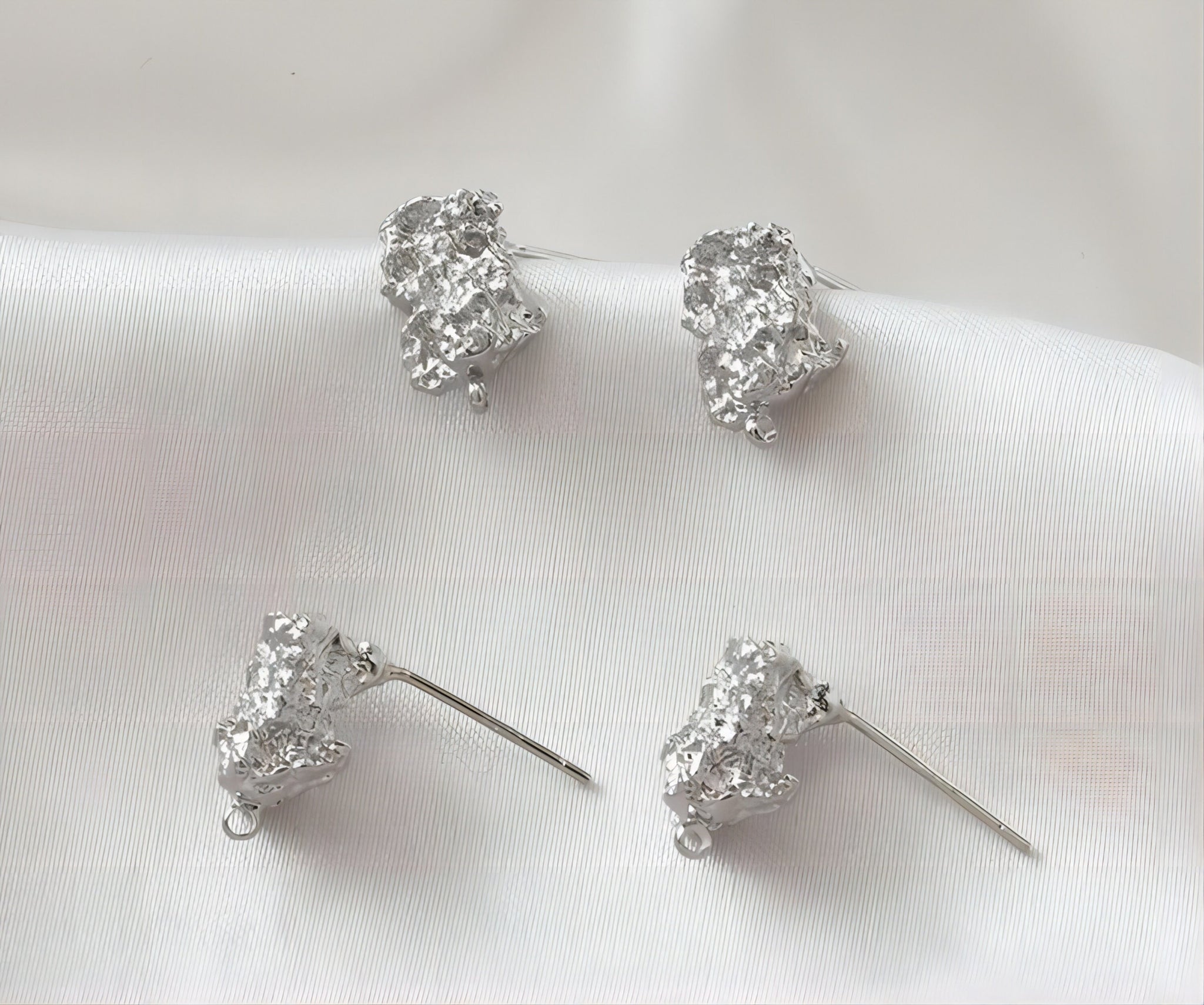 Irregular Ear Post With Loop, S925 Silver Ear Stick Nickel Free Earrings, Gold/Silver Ear Stud, Hypoallergenic Earring Findings G0010-D0013