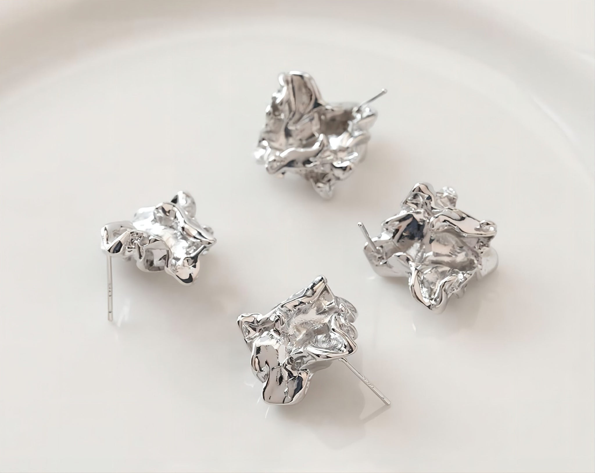 Irregular Ear Post With Loop, S925 Silver Ear Stick Nickel Free Earrings, Gold/Silver Ear Stud, Hypoallergenic Earring Findings G002