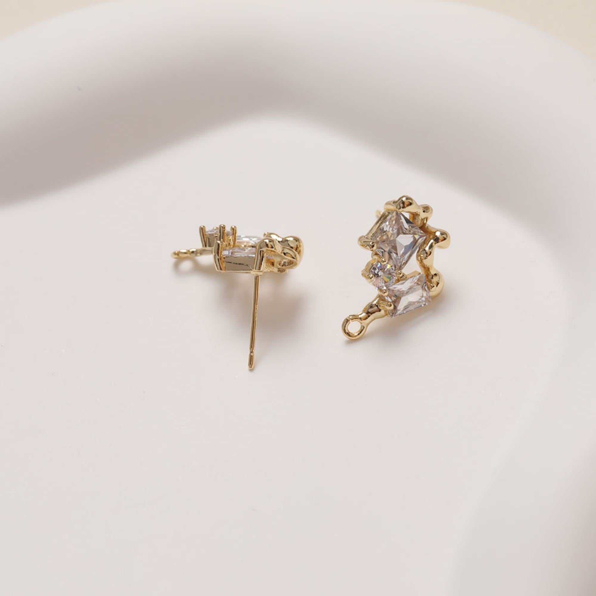 Irregular Pave CZ Earring Post, 14K Gold/Silver Plated, S925 Silver Pin Nickel Free Earrings, Hypoallergenic Earring Findings GZ124