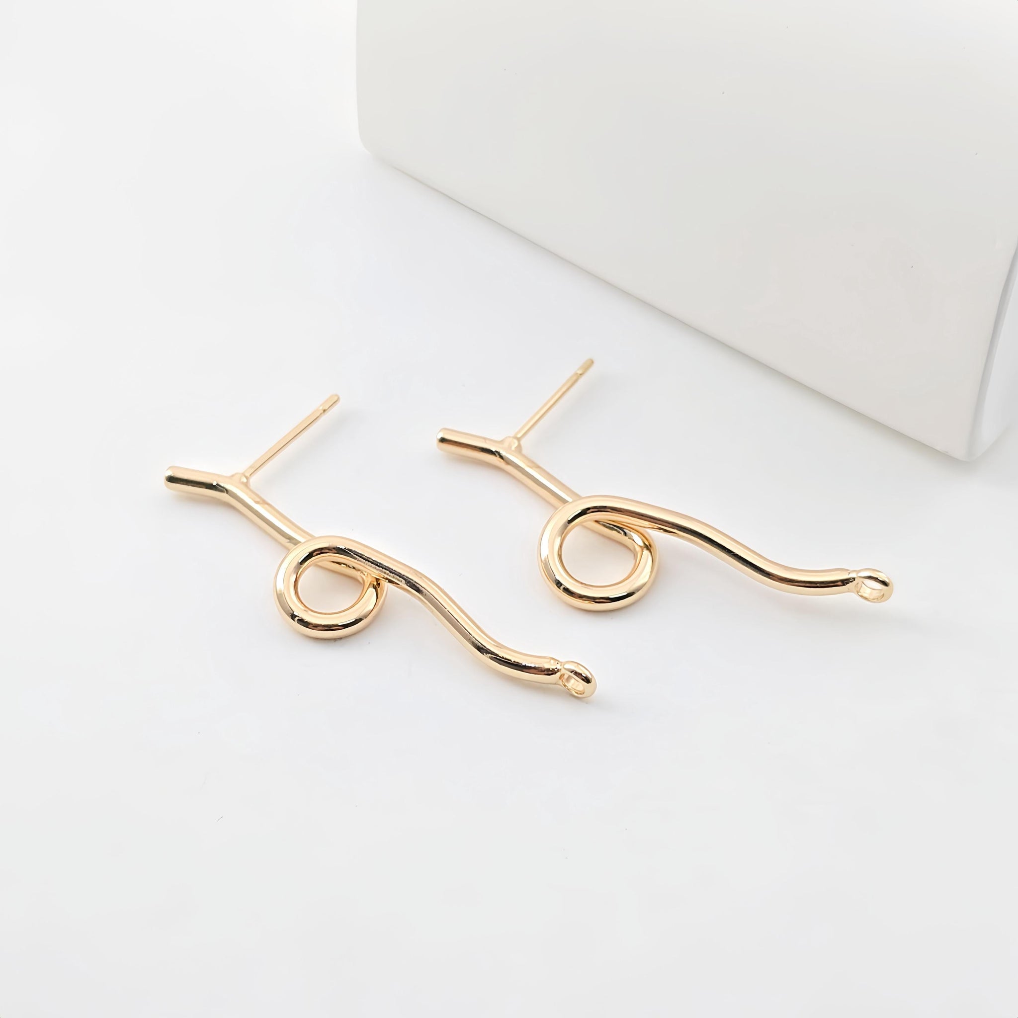 Long Line Post With Loop, 18k Gold Chain Round Stud Earring Nickel Free, Hypoallergenic Earring Findings ZX298