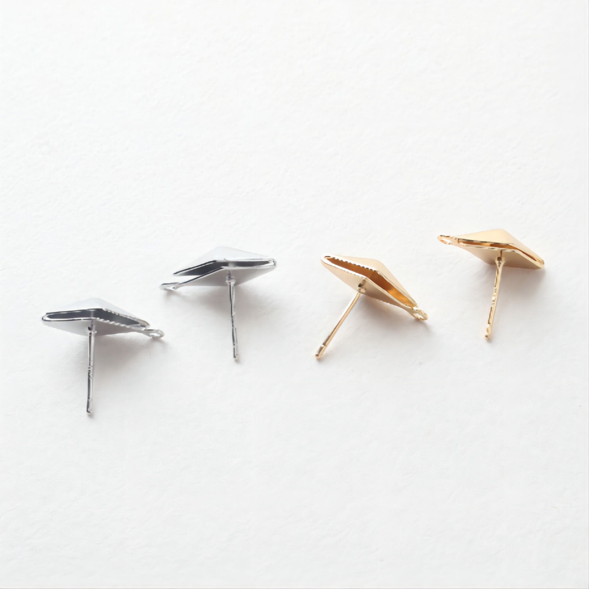 Minimalist Rhombus Ear Post With Loop, S925 Silver Ear Pin Nickel Free, Gold/Silver Ear Stud, Hypoallergenic Earring Findings JJ009