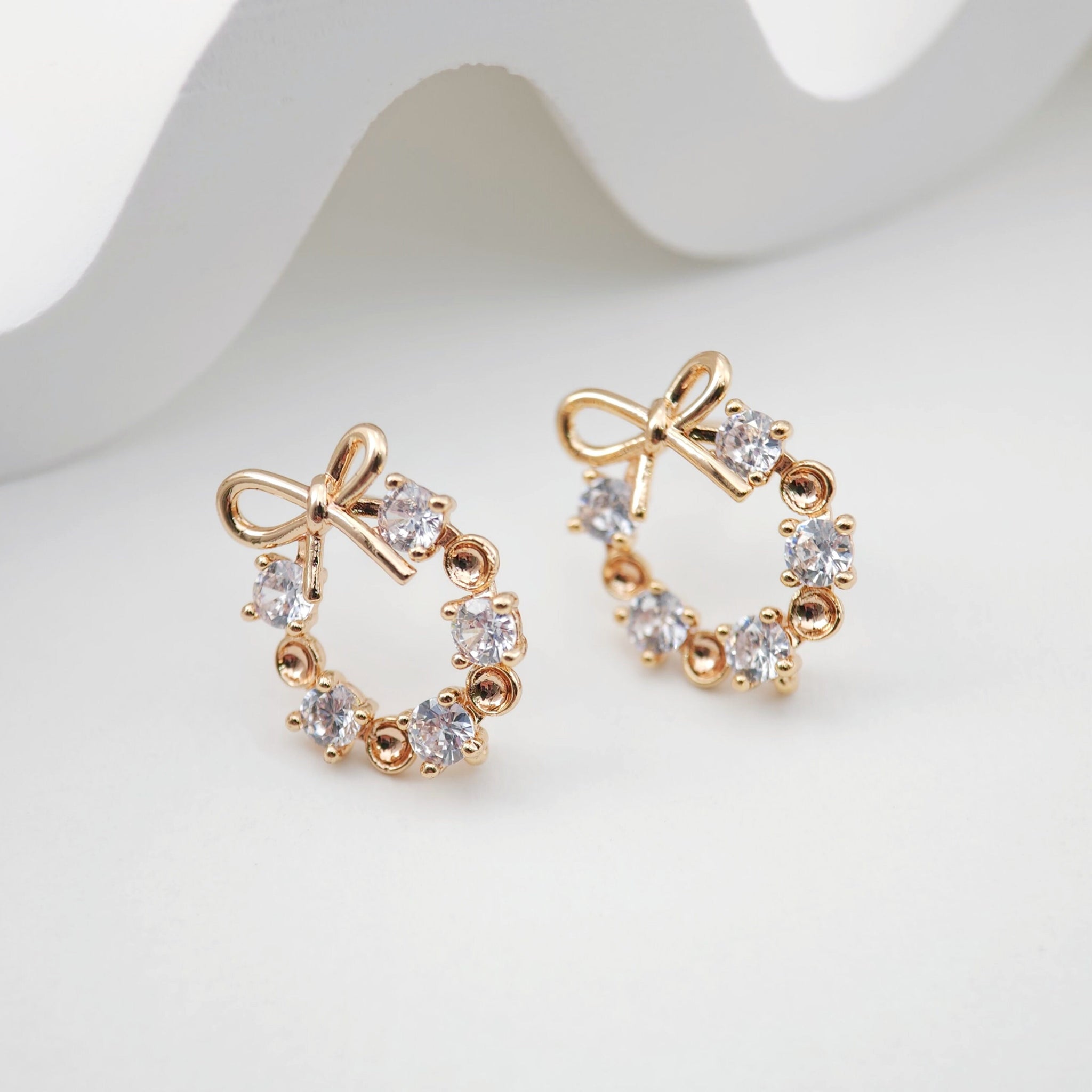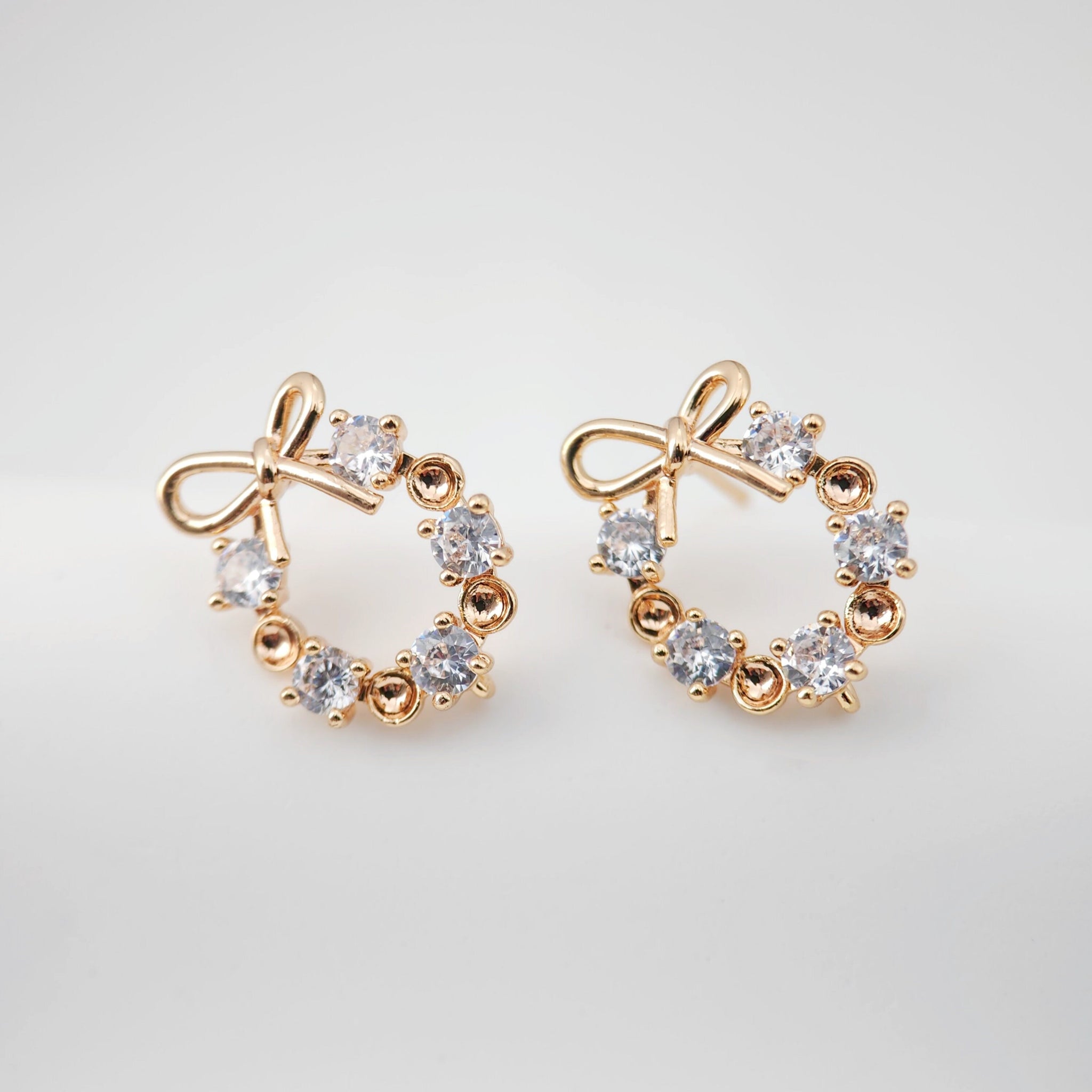 Oval Bow Pave CZ Earring Post, 18K Gold Plated, S925 Silver Pin Nickel Free Earrings, Hypoallergenic...