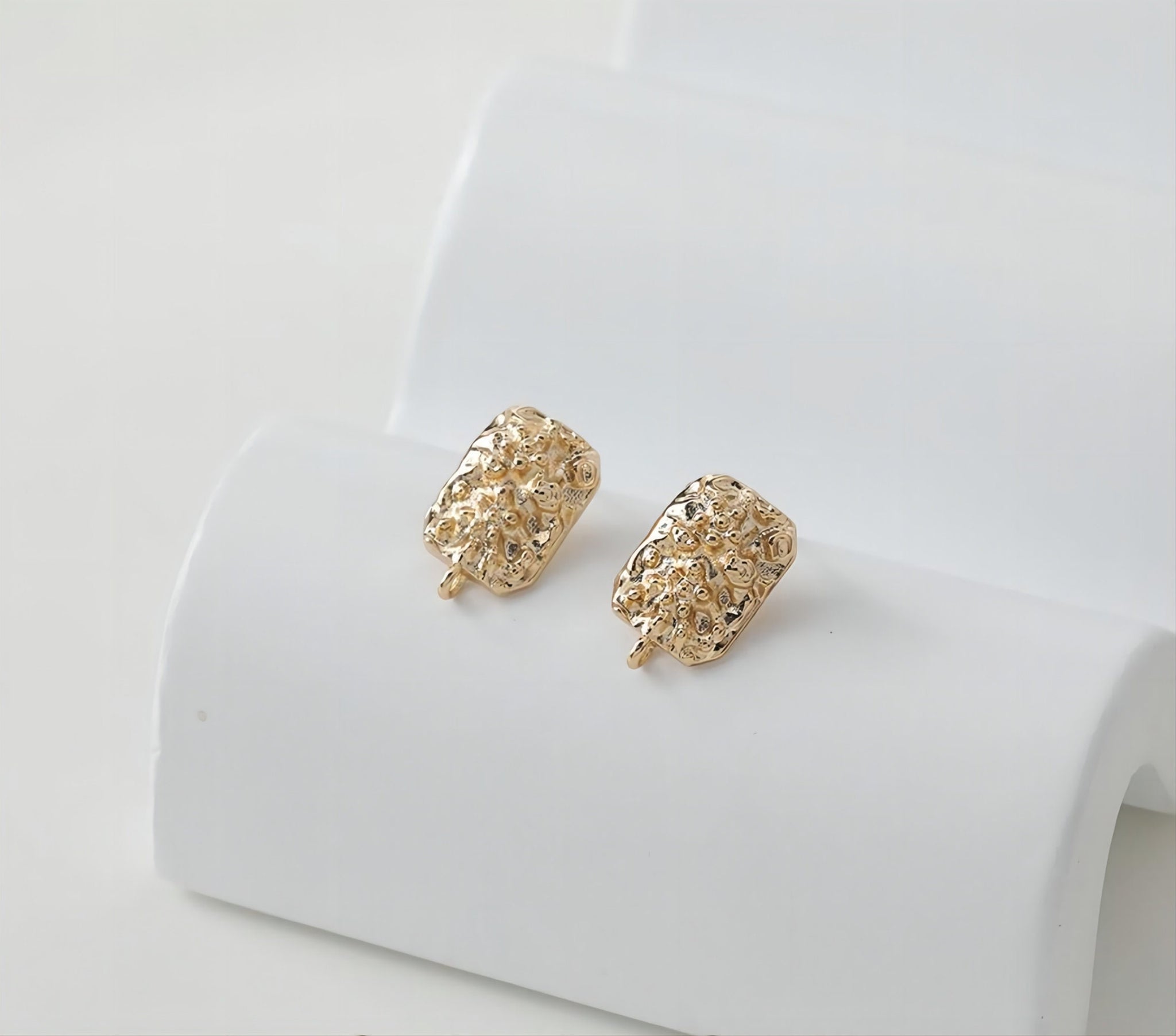 Rectangular Concave Convex Ear Post With Loop, S925 Silver Ear Pin Nickel Free, Gold/Silver Ear Stud, Hypoallergenic Earring Findings GE072