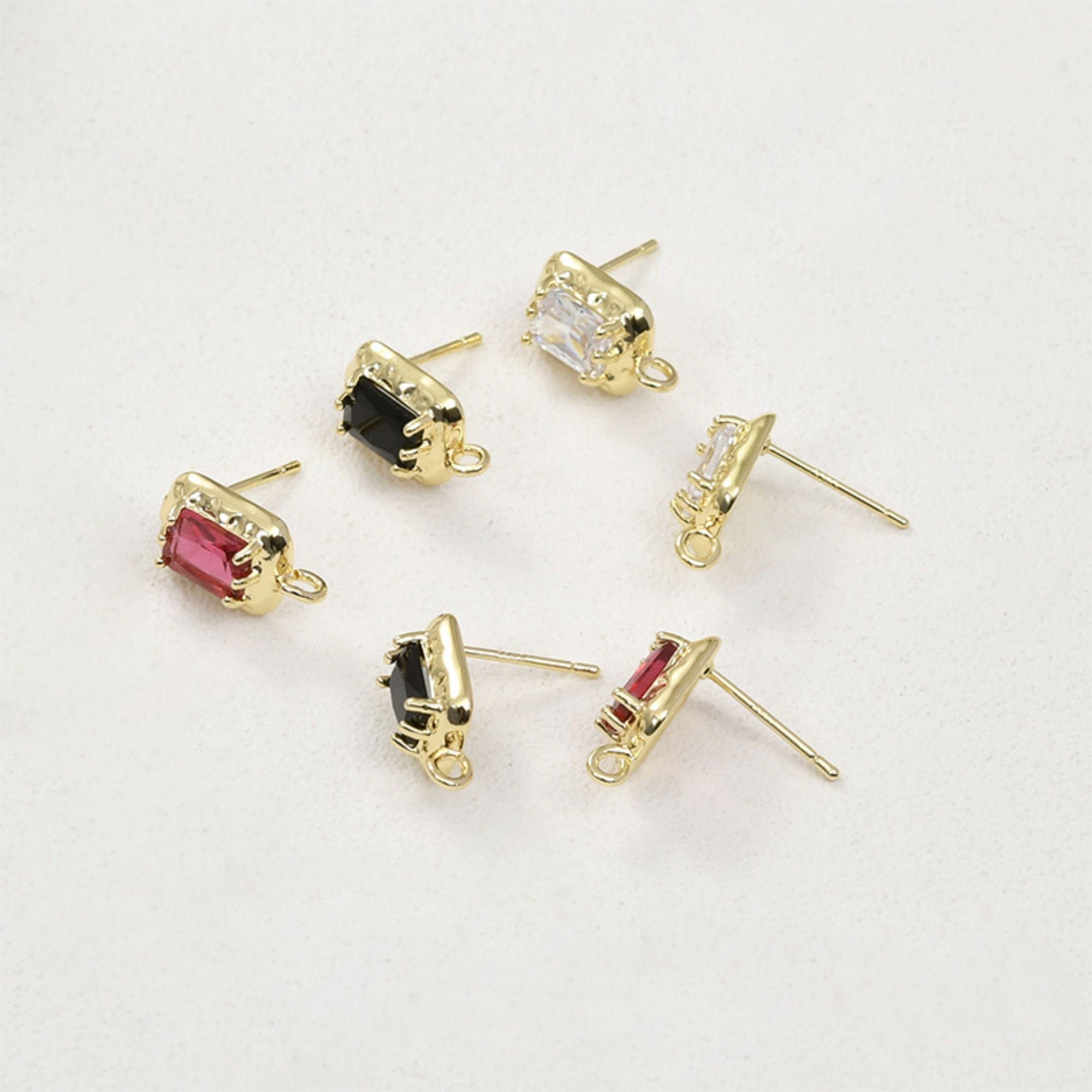 Rectangular CZ Pave Ear Post With Loop, S925 Silver Ear Pin Nickel Free, Gold/Silver Ear Stud, Hypoallergenic Earring Findings LL204