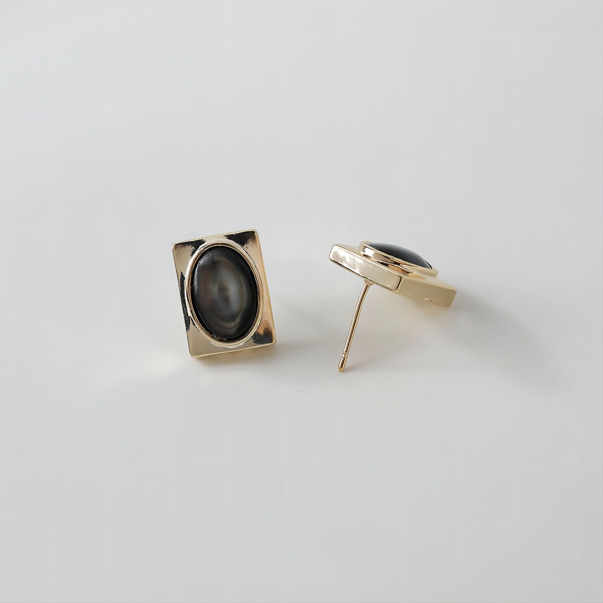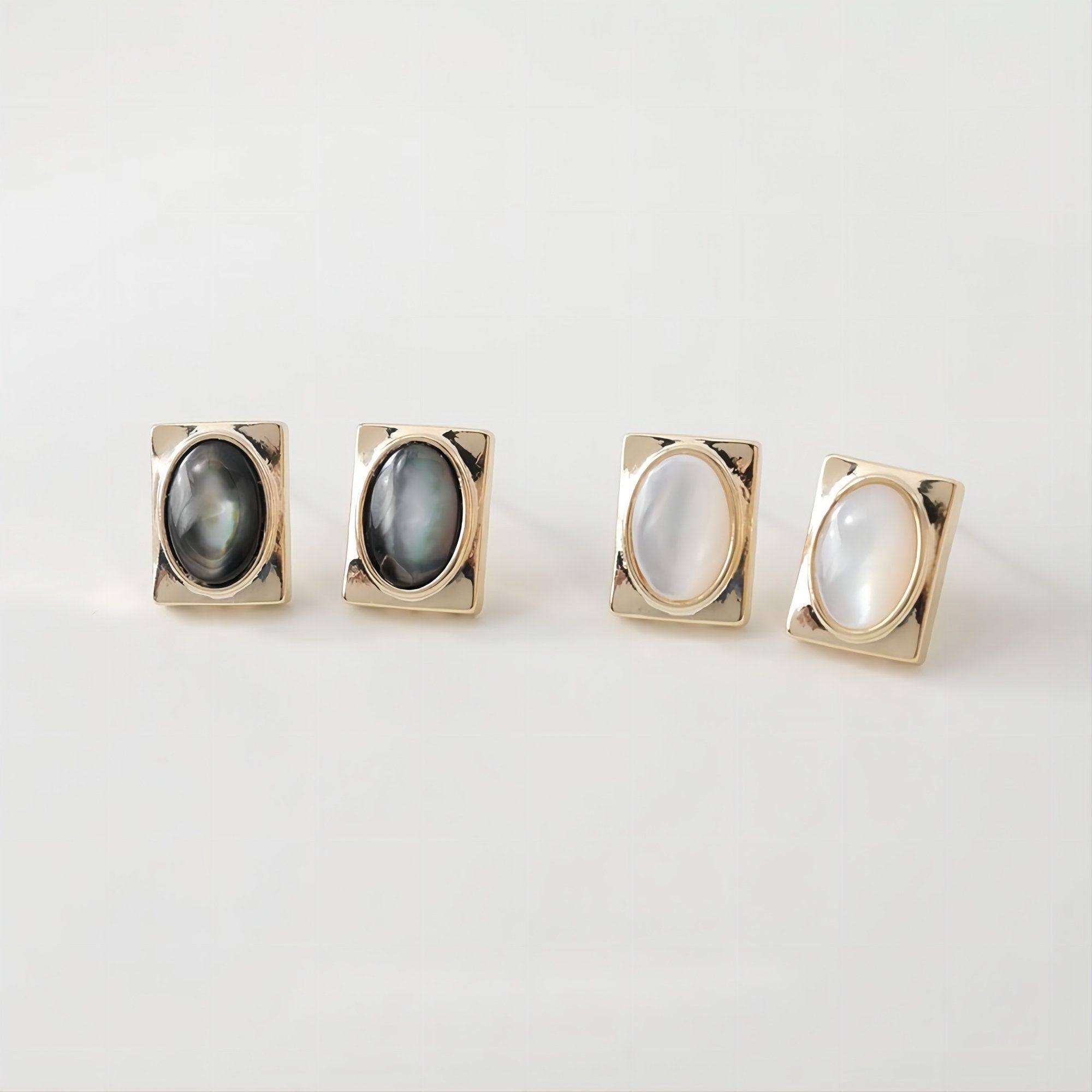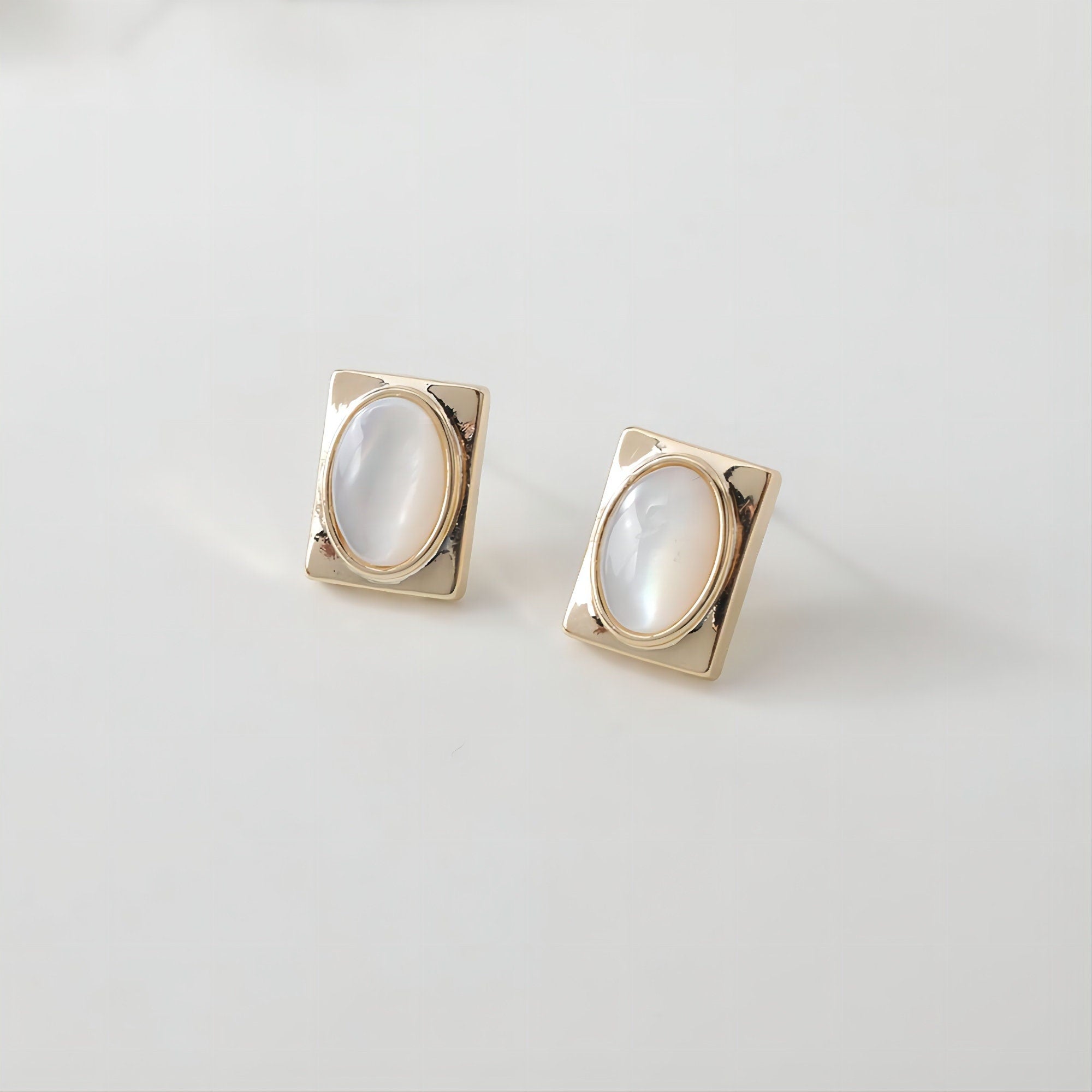 Rectangular Shell Ear Post With Loop, S925 Silver Ear Pin Nickel Free, Gold/Silver Ear Stud, Hypoallergenic Earring Findings GS002