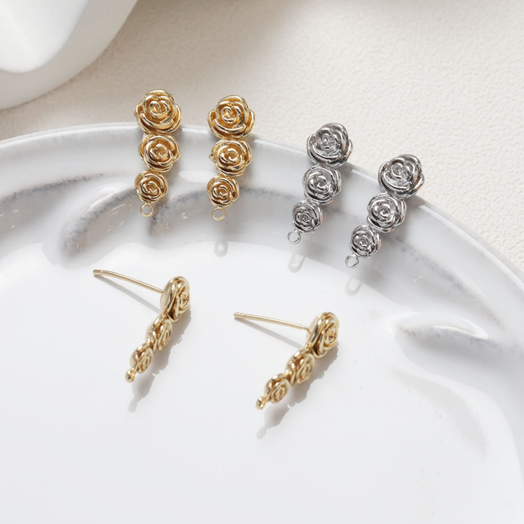 Rose Ear Stud, S925 Silver Ear Pin Nickel Free Earrings, Gold/Silver Stud Earrings, Hypoallergenic Earring Findings BB005-D0131
