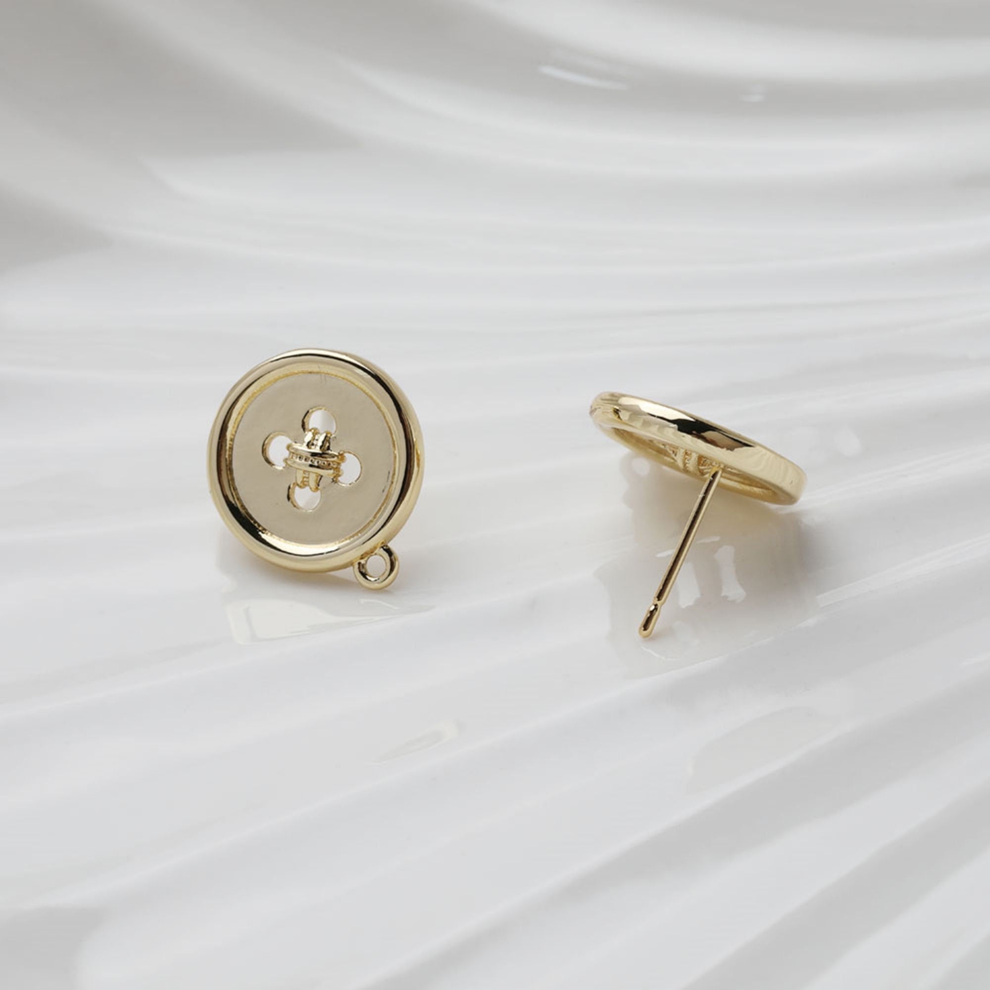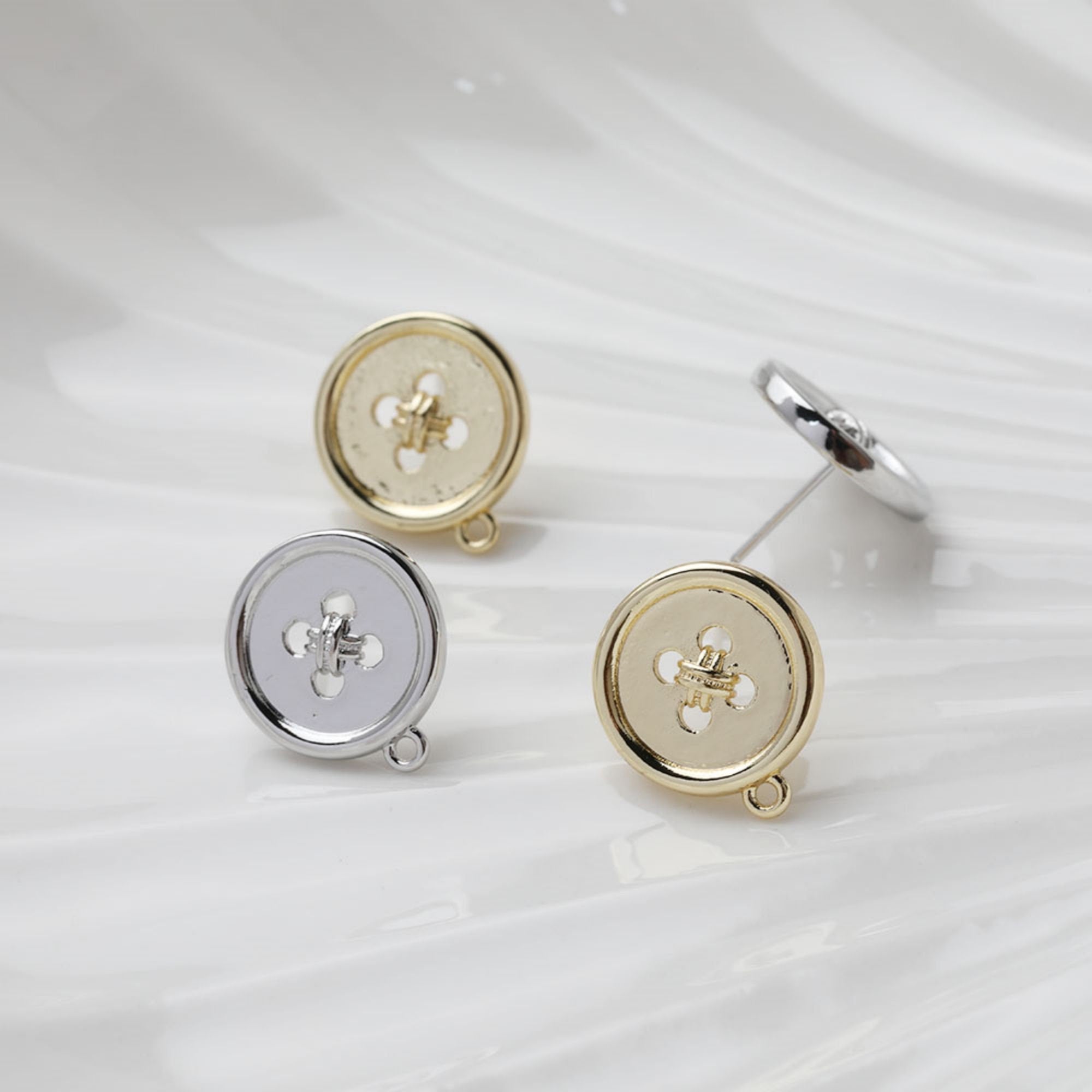 Round Button Post Earring With Loop, S925 Silver Ear Pin Nickel Free, Gold/Silver Ear Stud, Hypoallergenic Earring Findings GT025