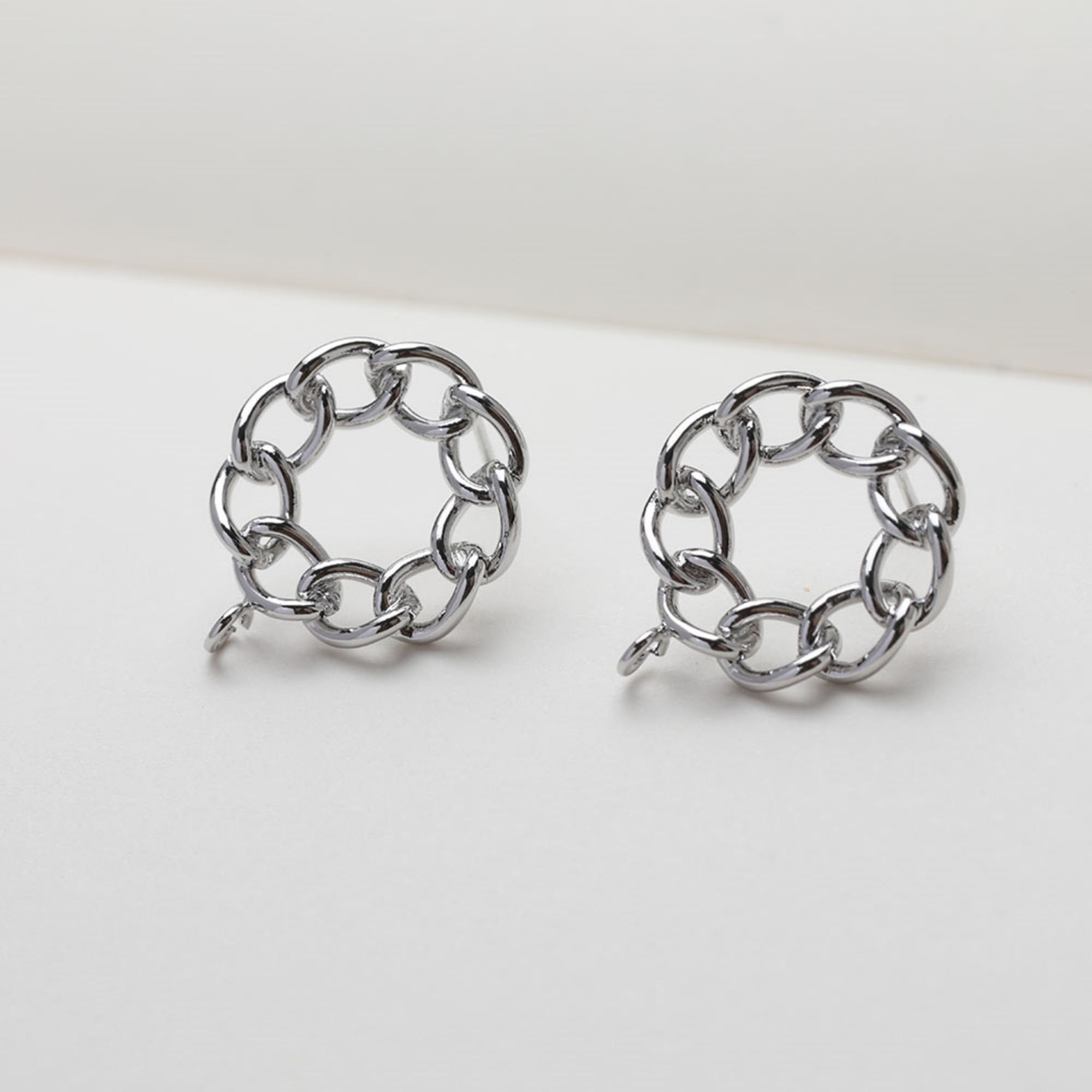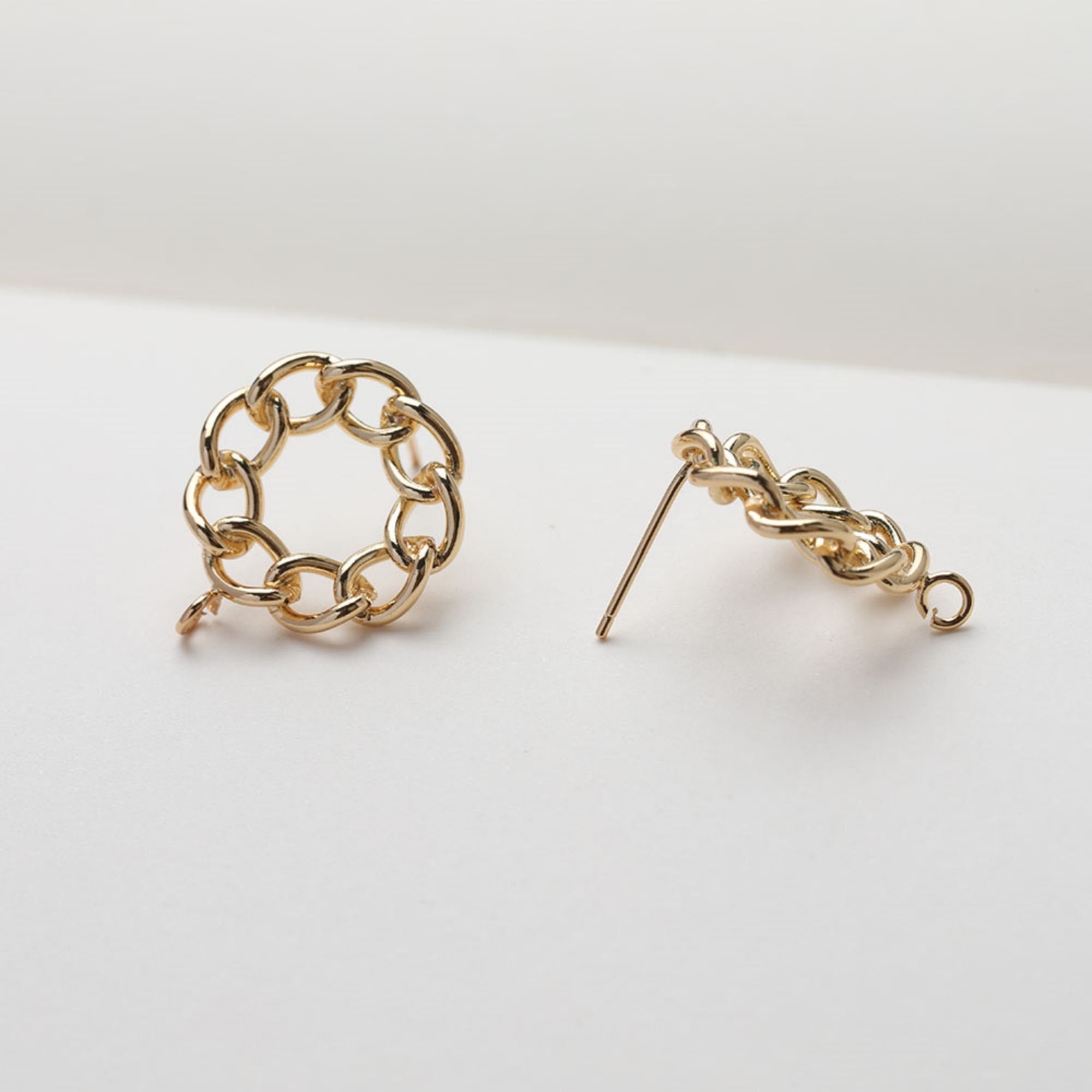 Round Chain Post With Loop, 14k Gold/Silver Chain Round Stud Earring Nickel Free, S925 Ear Pin Hypoallergenic Earring Findings GE113