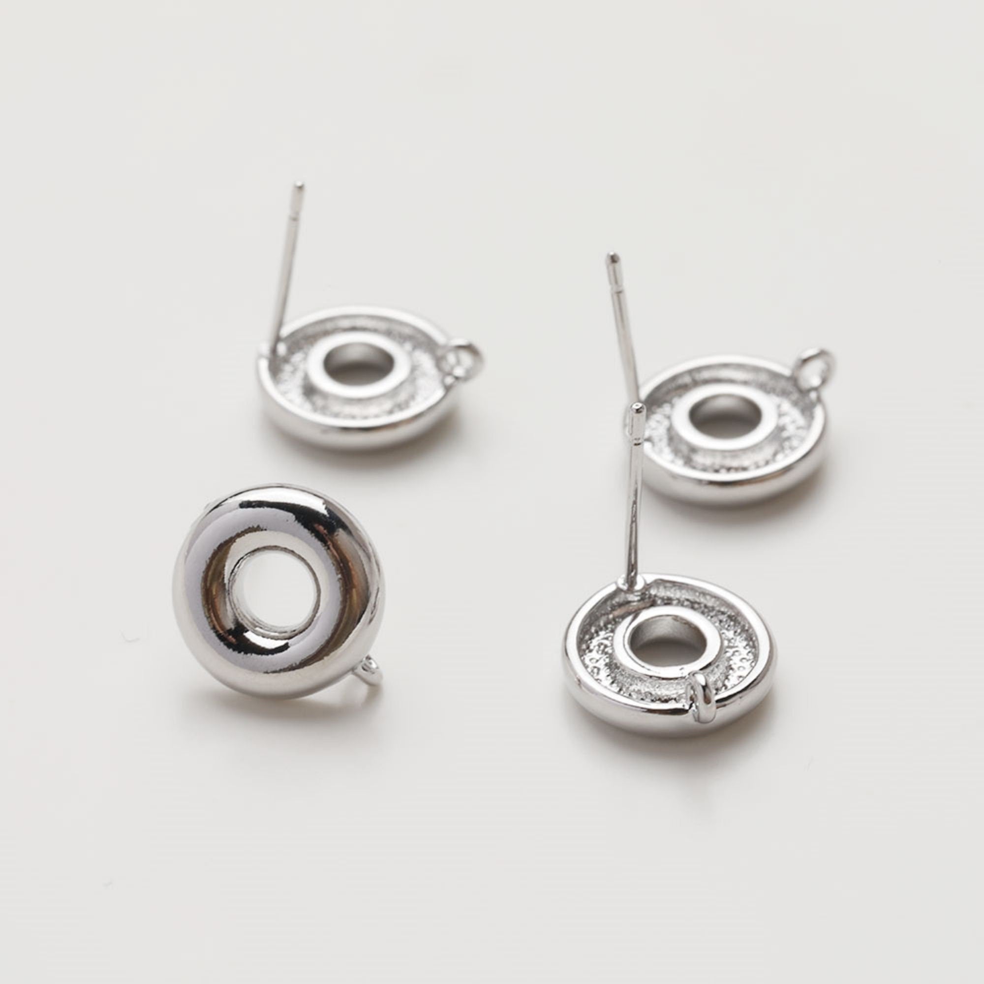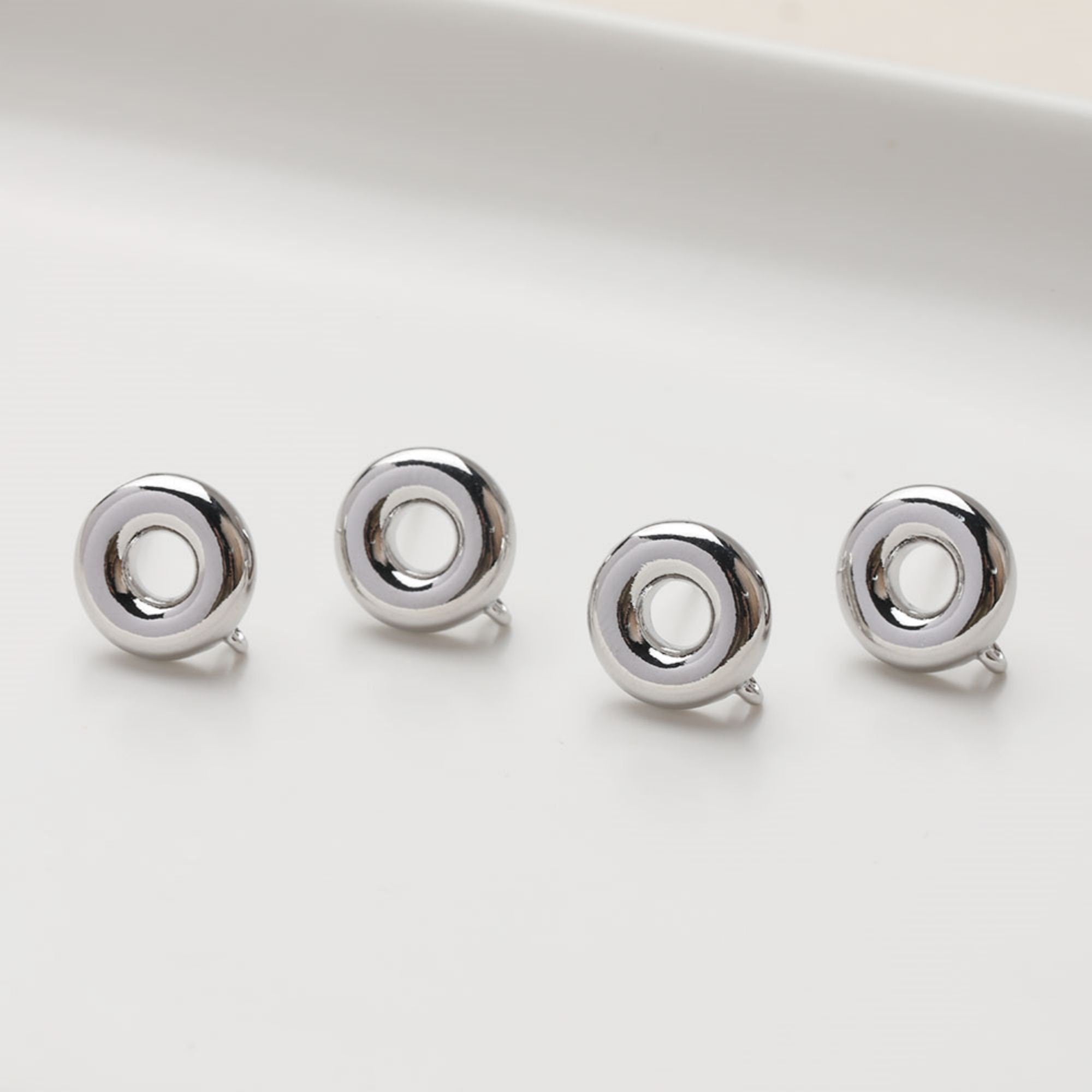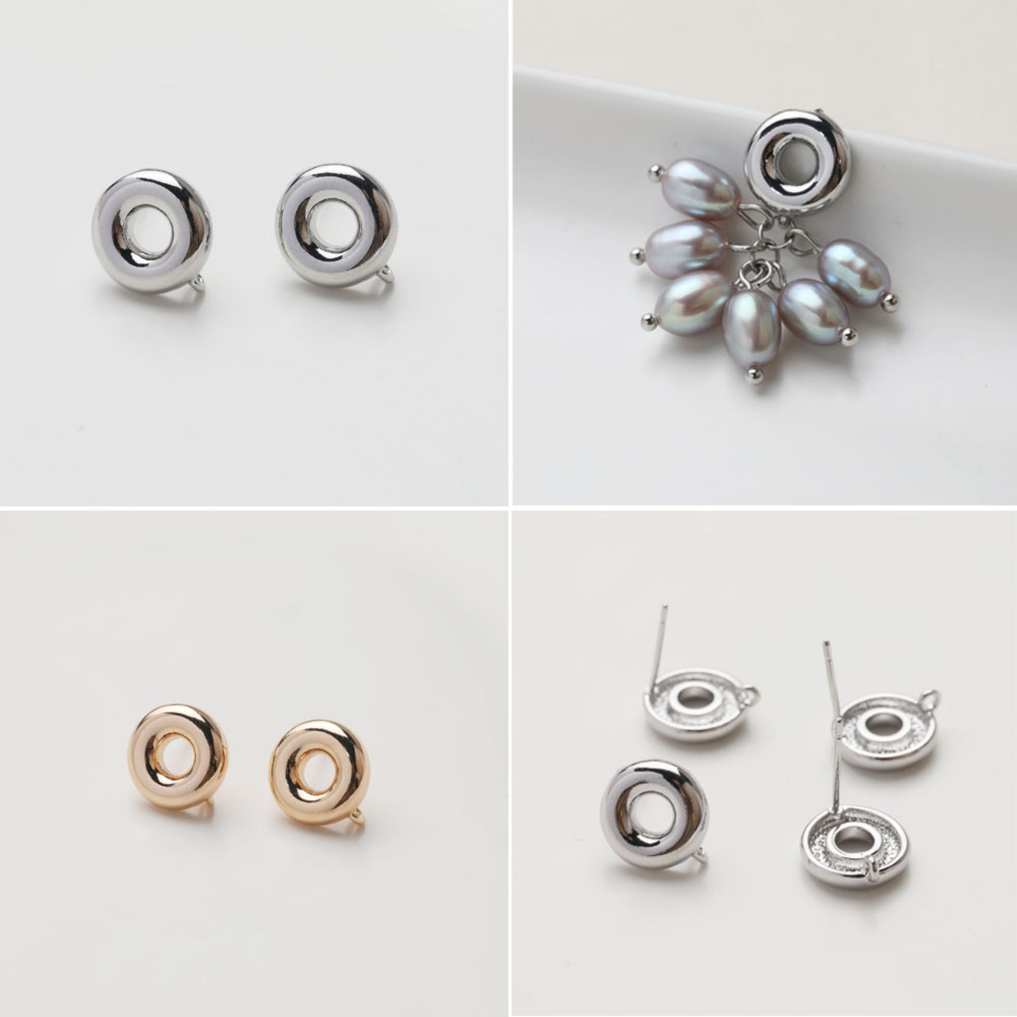 Round Geometry Earring Post, S925 Silver Pin, 14K Gold/Silver Plated, Nickel Free Earrings, Irregular Shape Ear Stud with Loop JG067