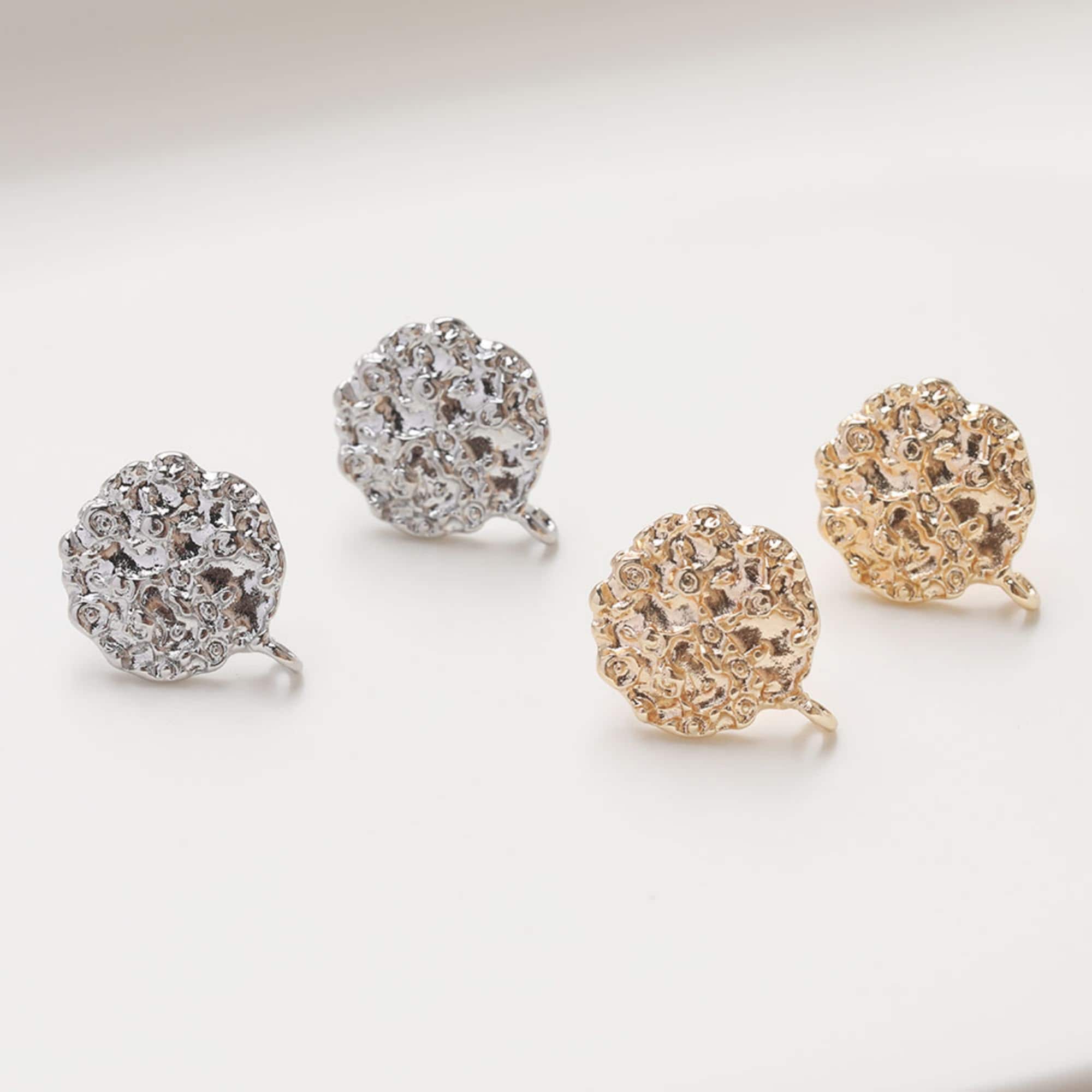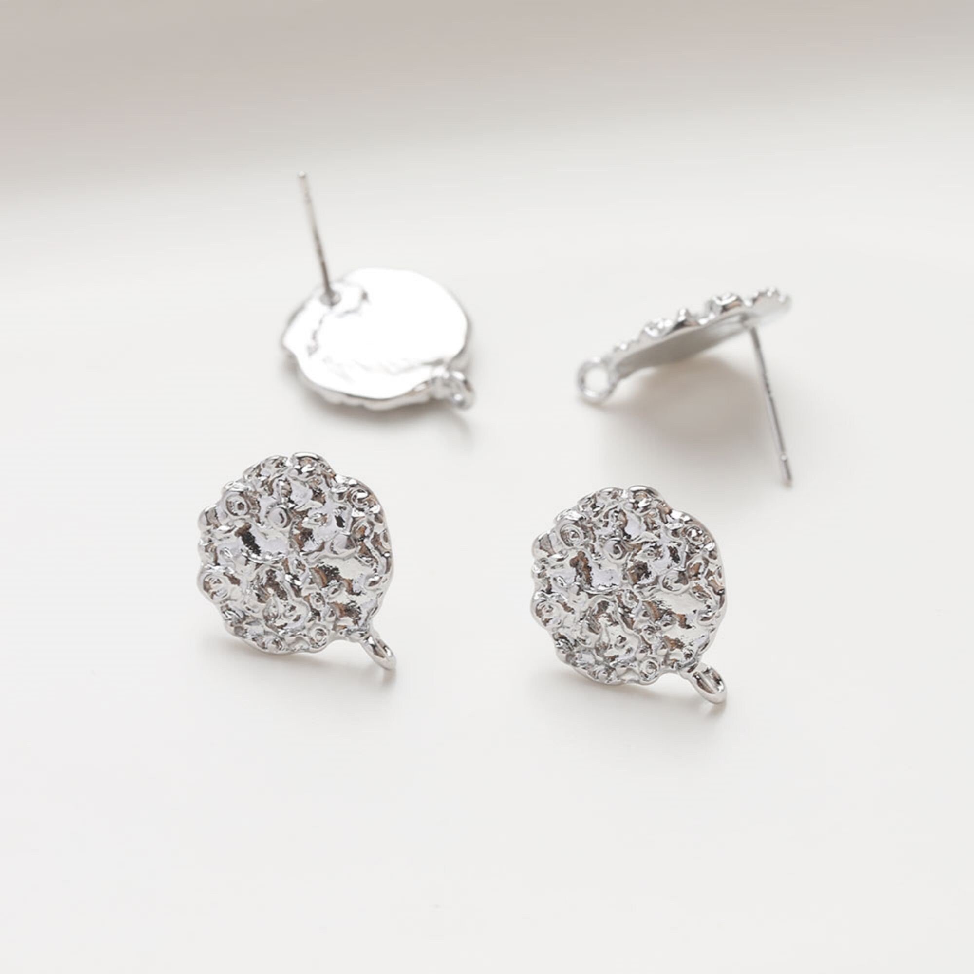Round Lava Ear Post With Loop, S925 Silver Ear Pin Nickel Free Earrings, Gold/Silver Ear Stud, Hypoallergenic Earring Findings JG004