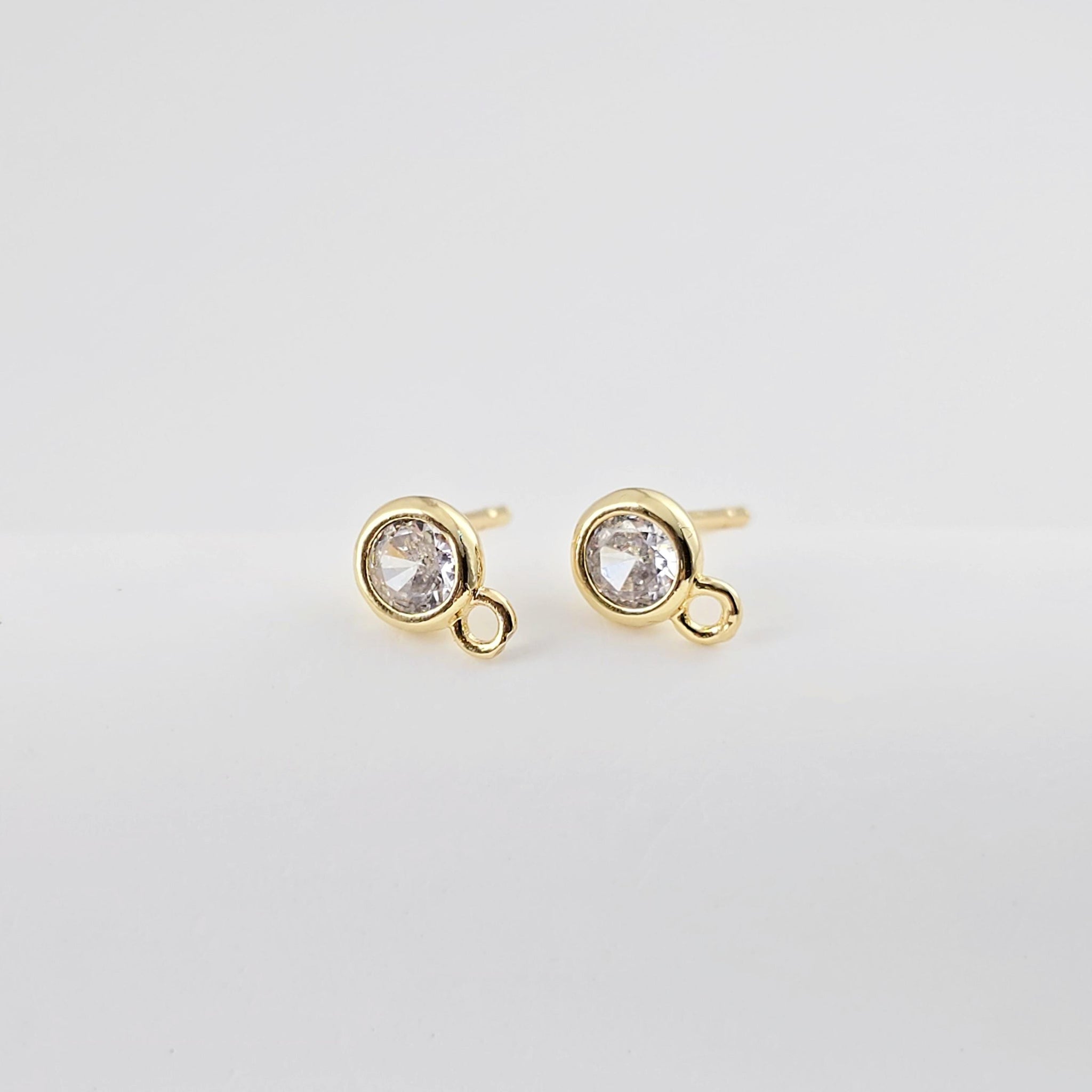 Round Stud Post with Loops, S925 Silver Ear Pin, Nickel Free, CZ 18K Gold Plated Stud Earring Finding D0283