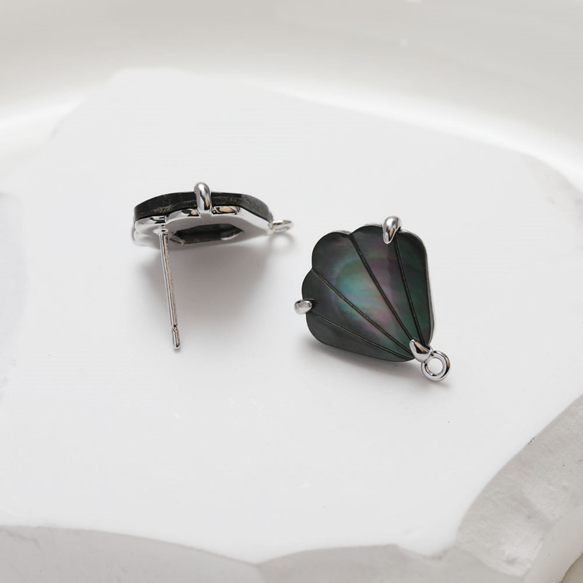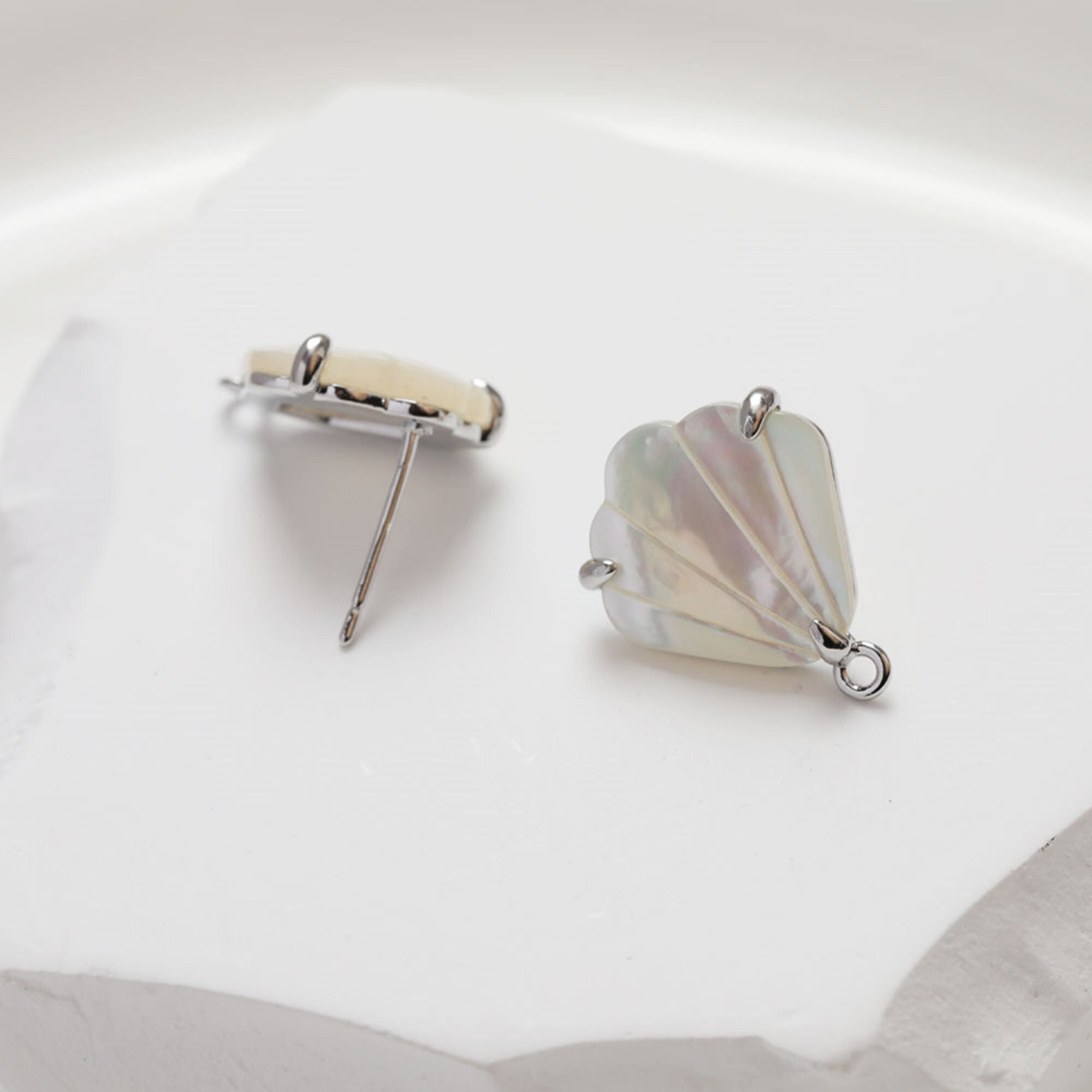 Shell Ear Post With Loop, Scallop Studs, S925 Silver Ear Pin Nickel Free, Gold/Silver Ear Stud, Hypoallergenic Earring Findings GZ224
