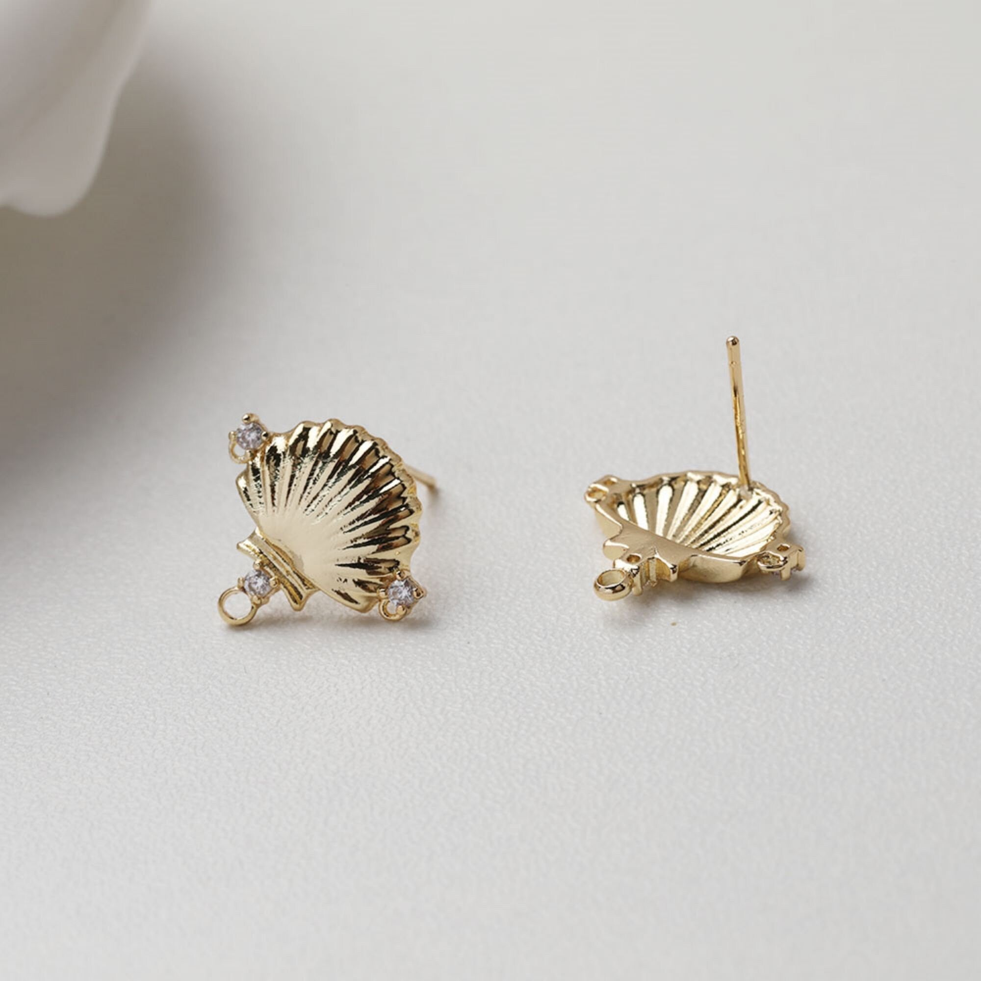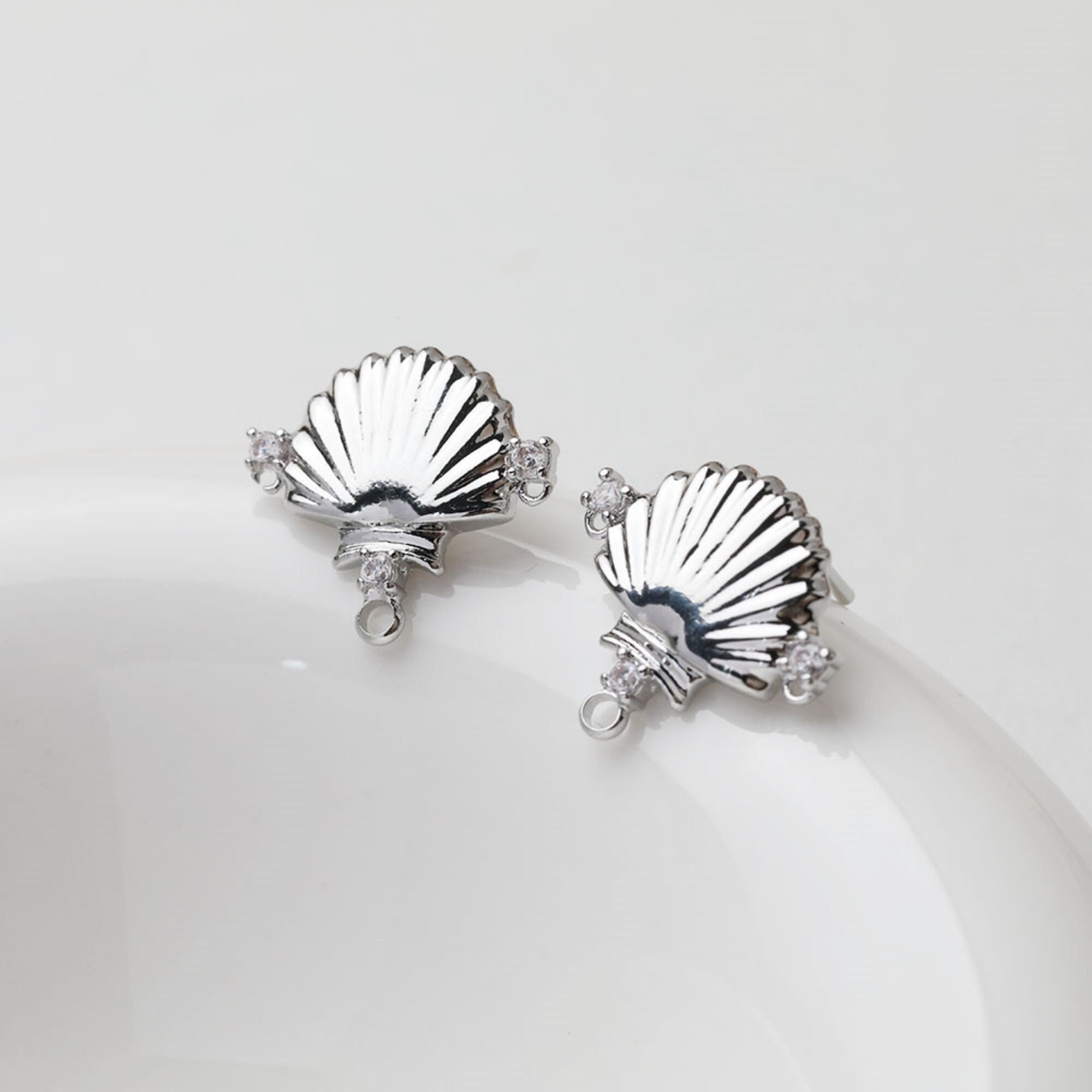 Shell Pave Cubic Earring Post, Shell Post, Gold/Silver, S925 Silver Pin Nickel Free Earrings, Hypoallergenic Earring Findings GT054
