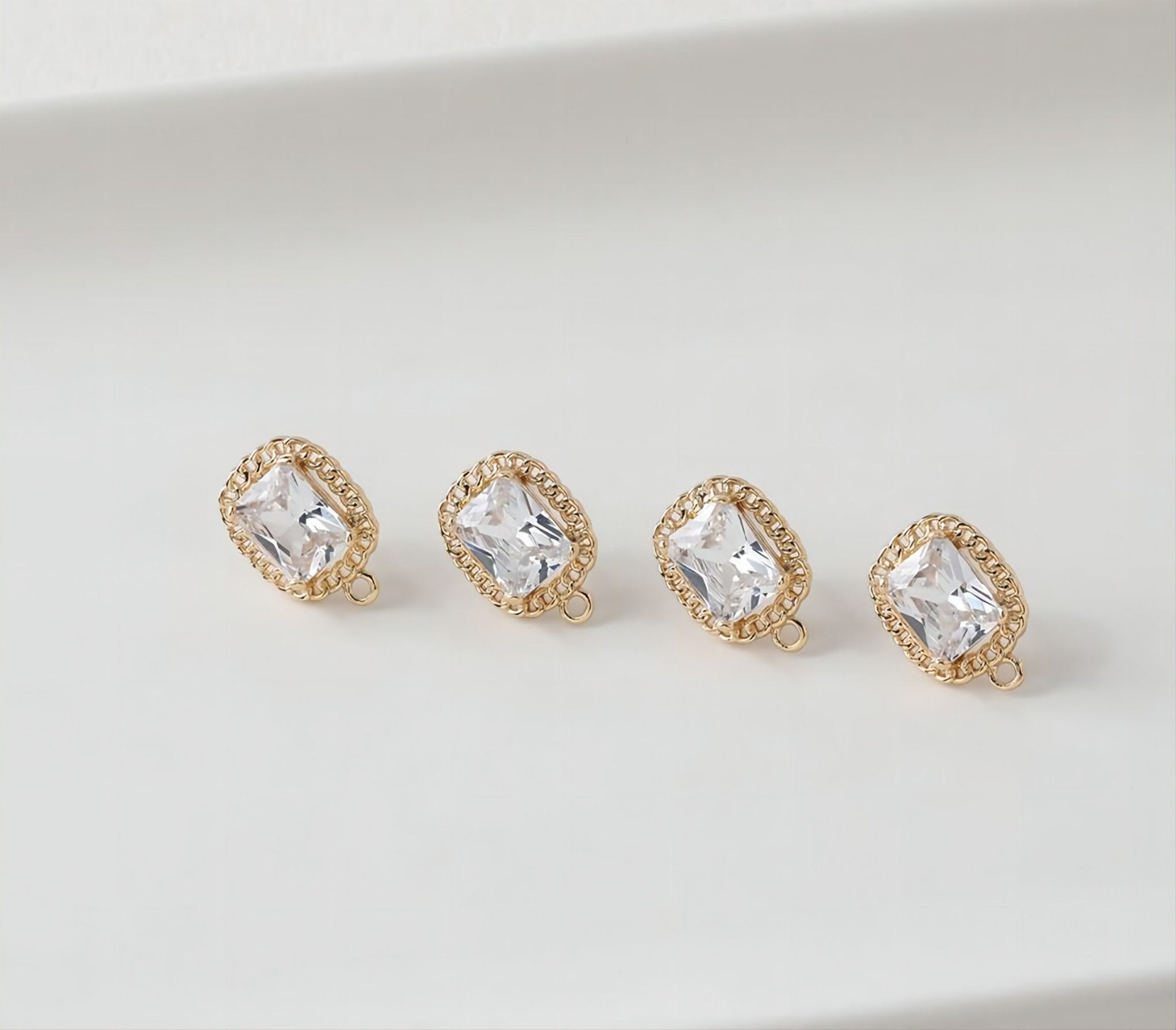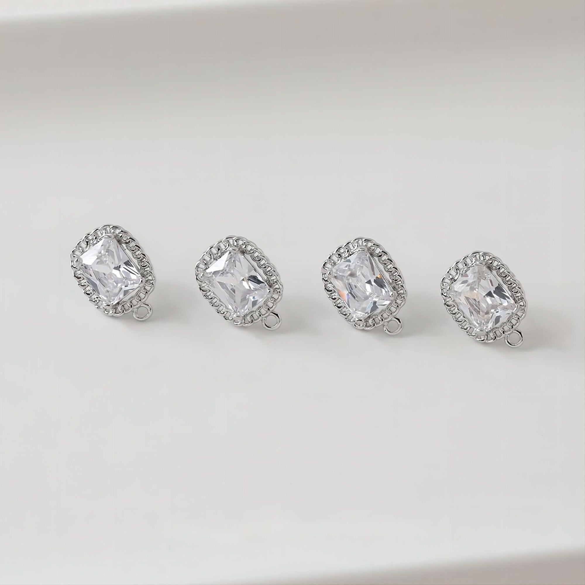 Vintage Rectangular Ear Post With Loop, S925 Silver Ear Pin Nickel Free, Gold/Silver Ear Stud, Hypoallergenic Earring Findings GE076