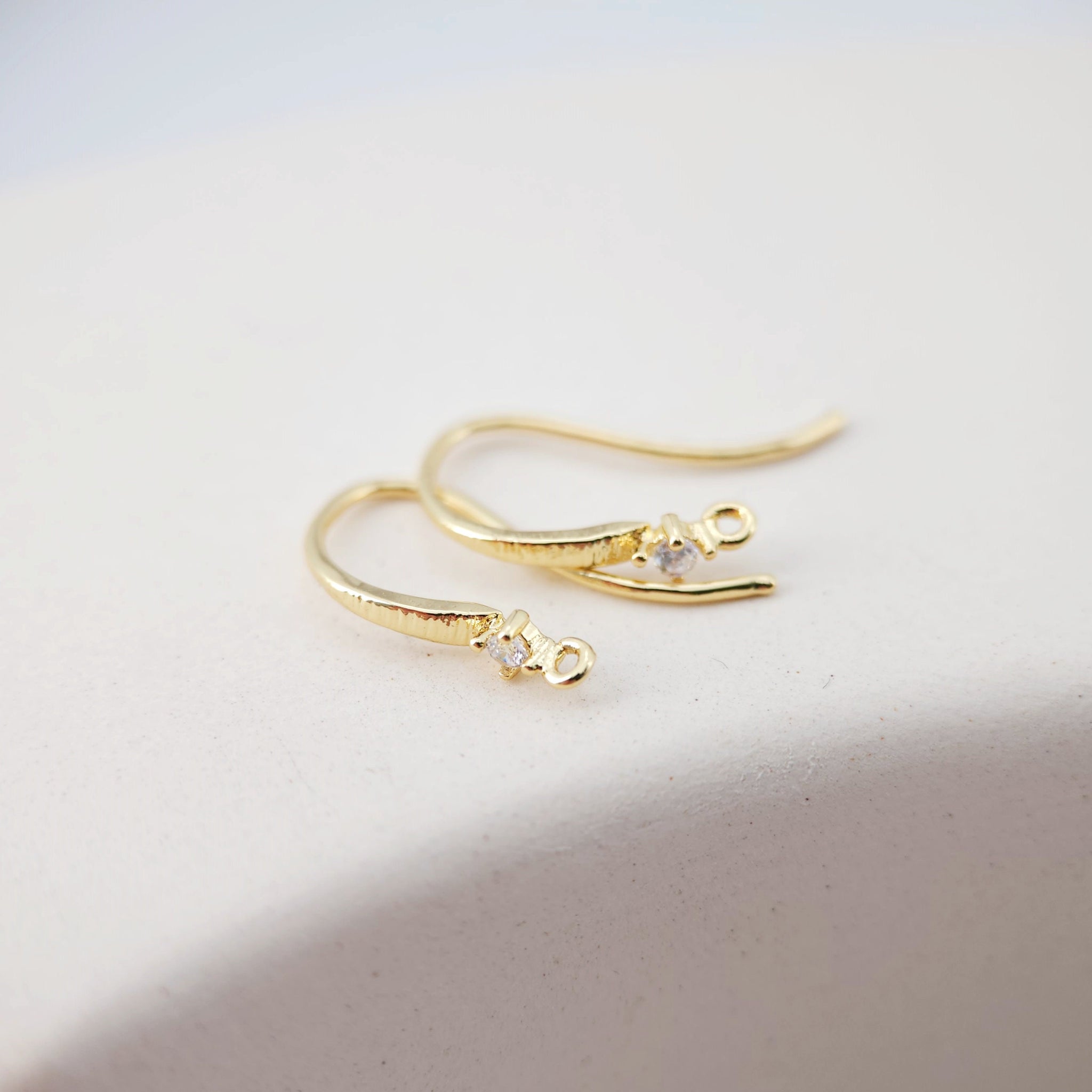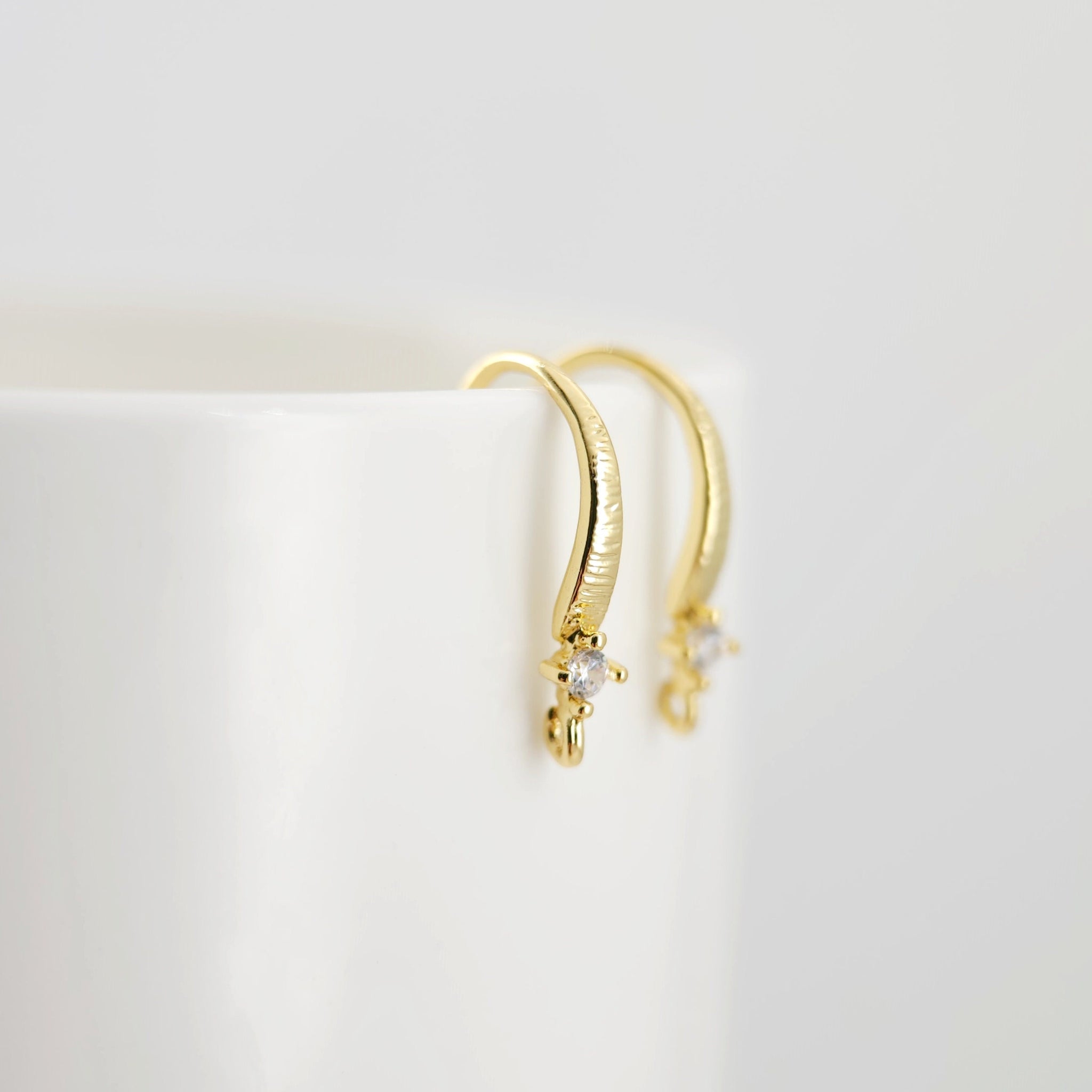 18K Gold Plated Ear Wires, Cubic Pave Earring Hooks, Nickel Free, Fish Hooks, Ear Wires for Jewelry Making D0183