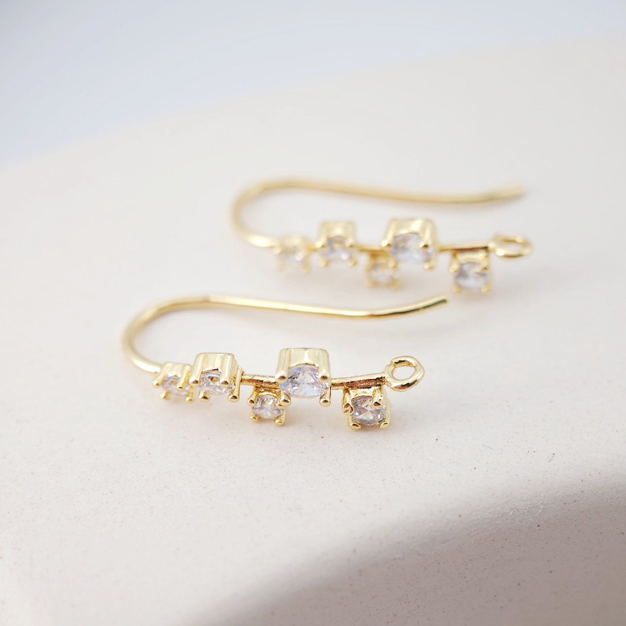 18K Gold Plated Ear Wires, Multiple small cubic zirconias Pave Earring Hooks, Nickel Free, Fish Hooks, Ear Wires for Jewelry Making D0185