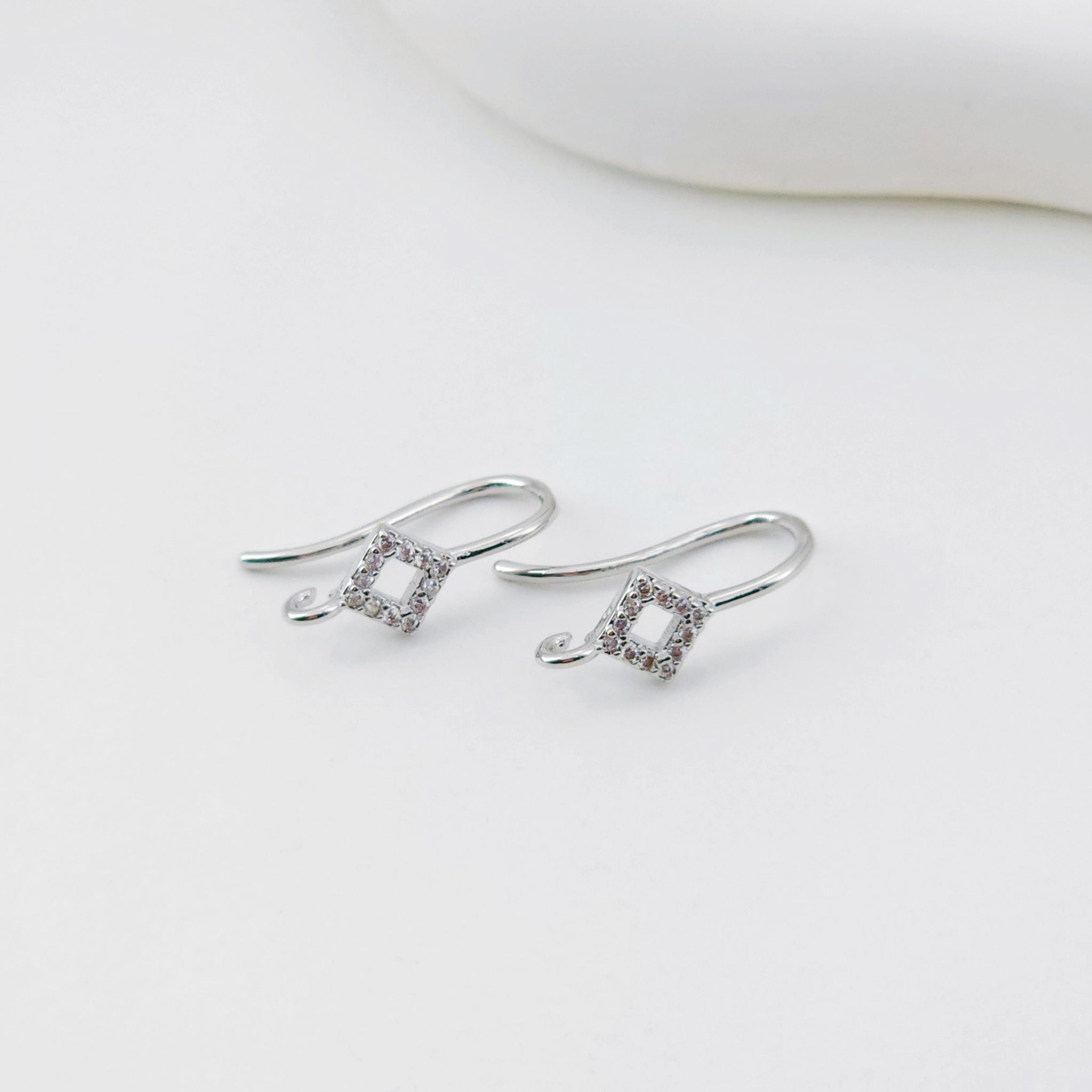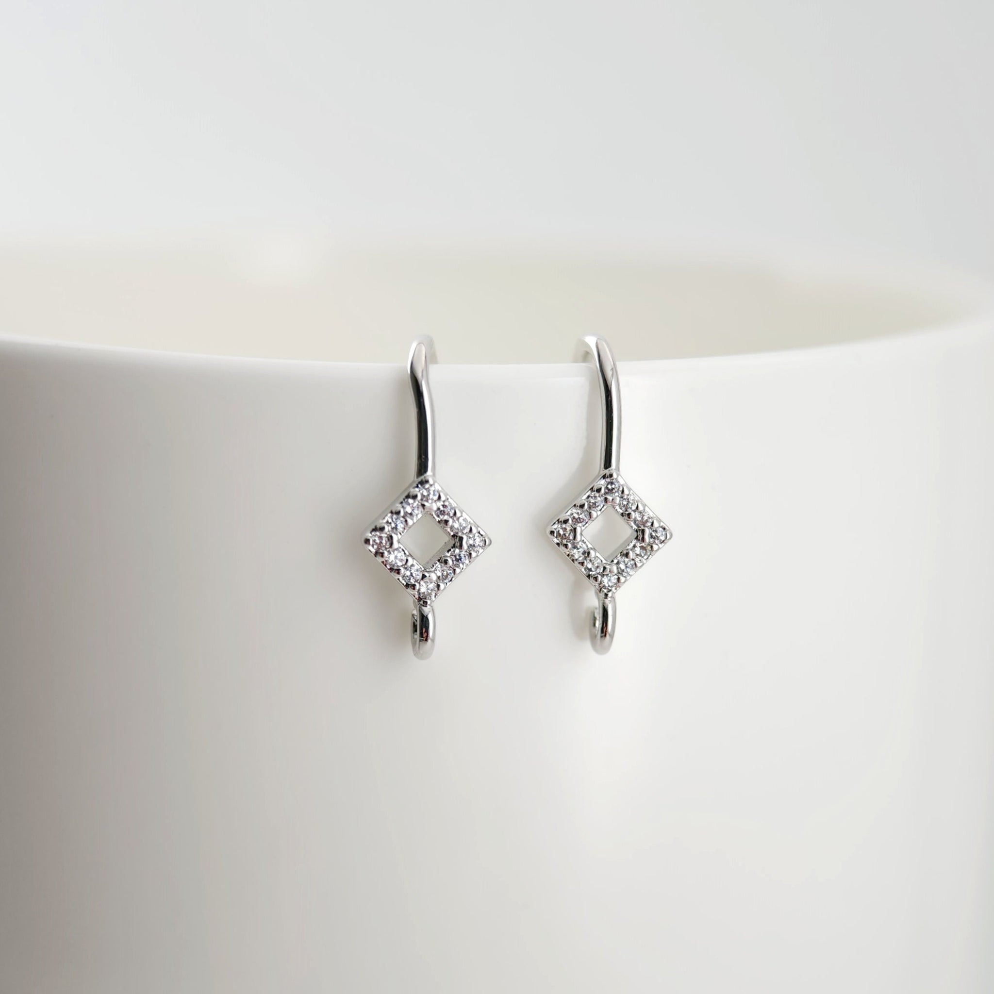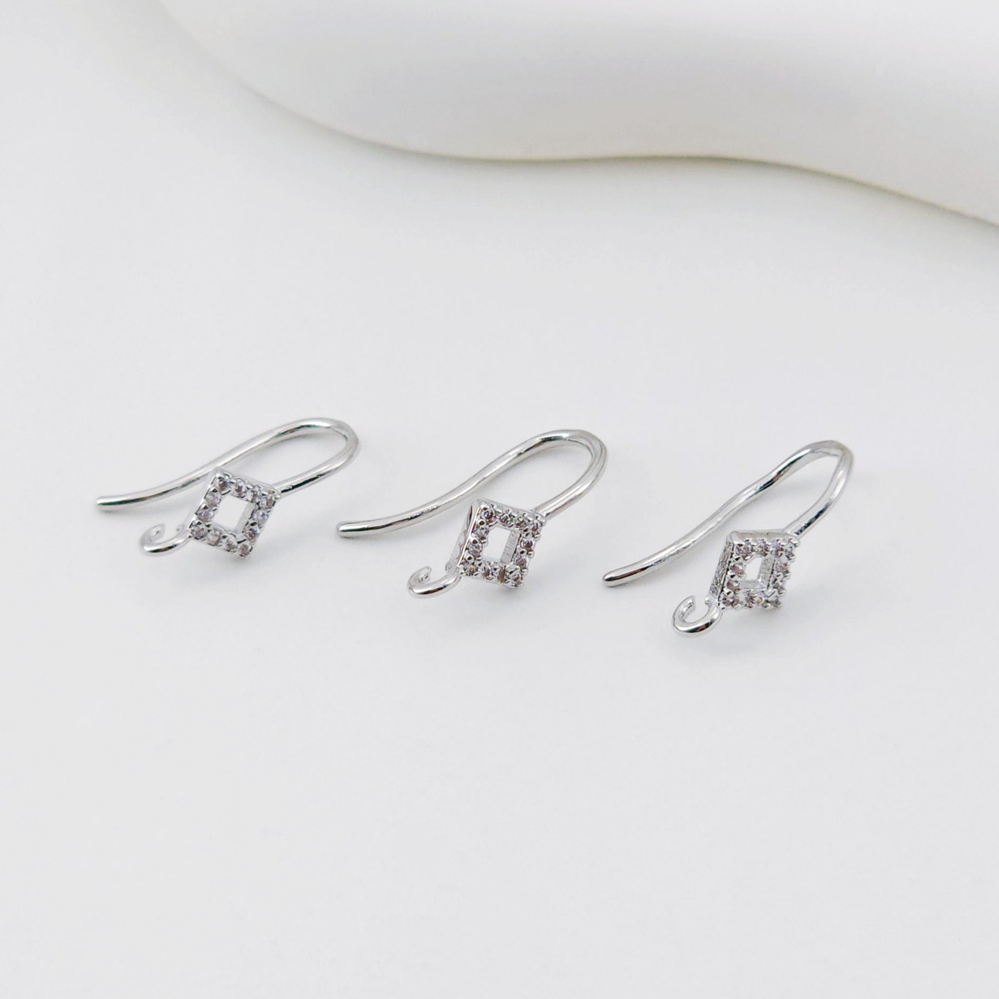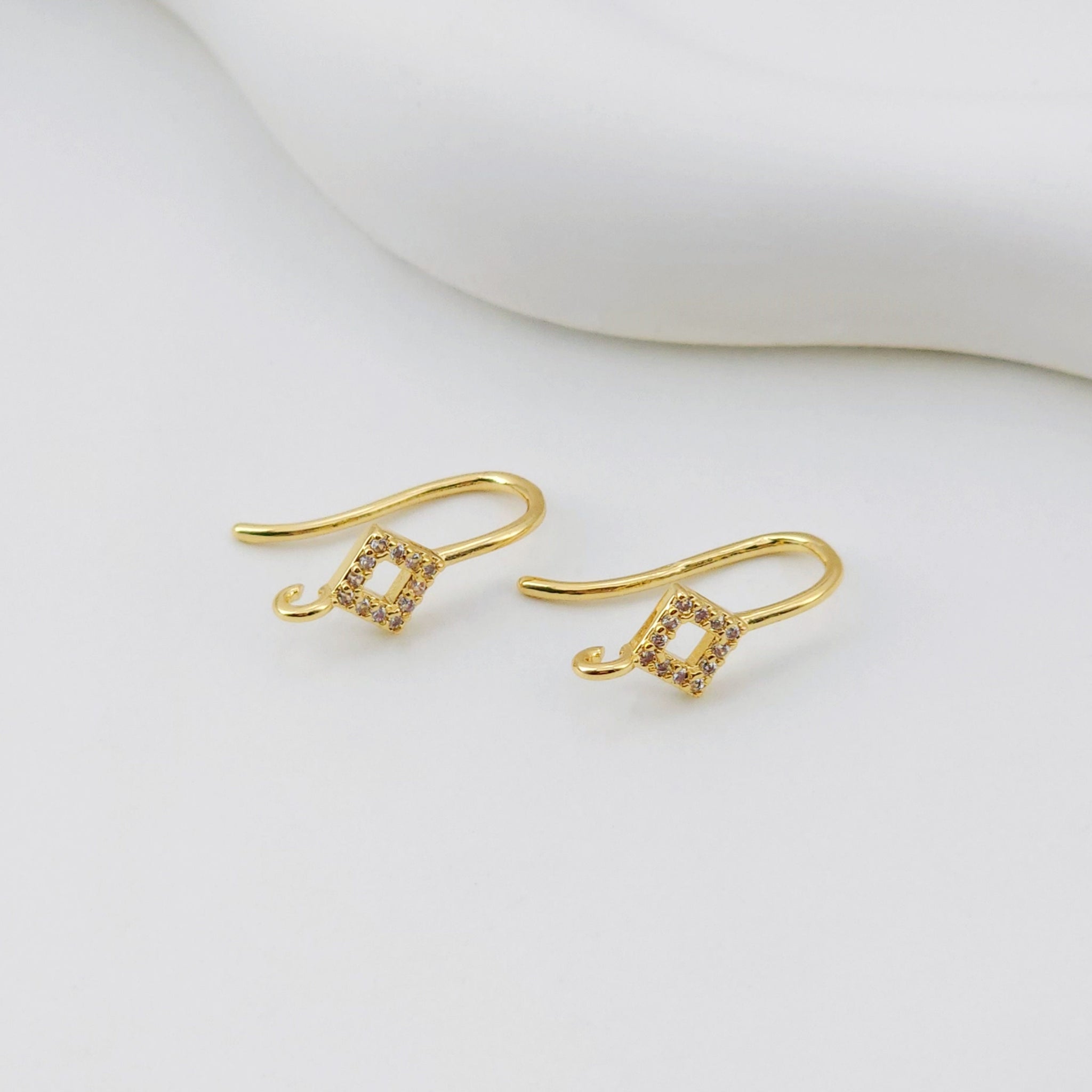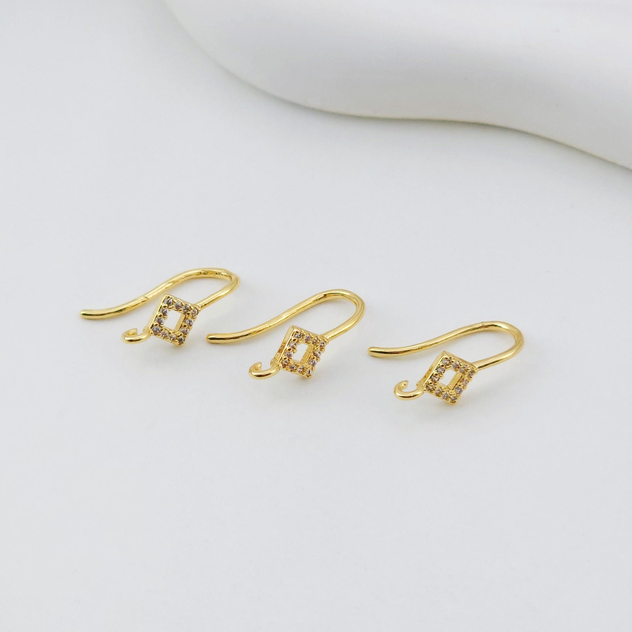 18K Gold Plated Ear Wires, Rhombic Cubic Pave Earring Hooks, Nickel Free, Fish Hooks, Ear Wires for Jewelry Making D0134
