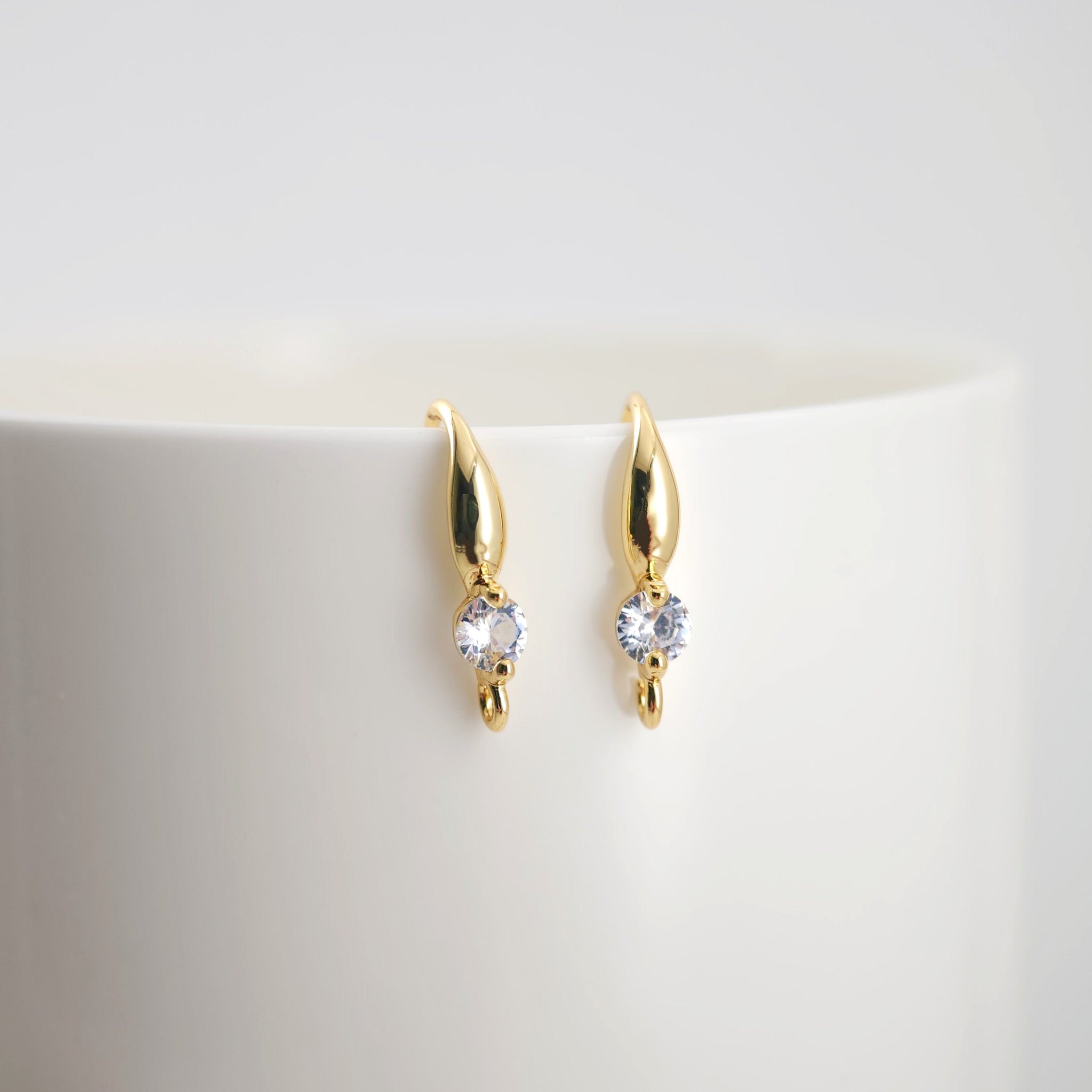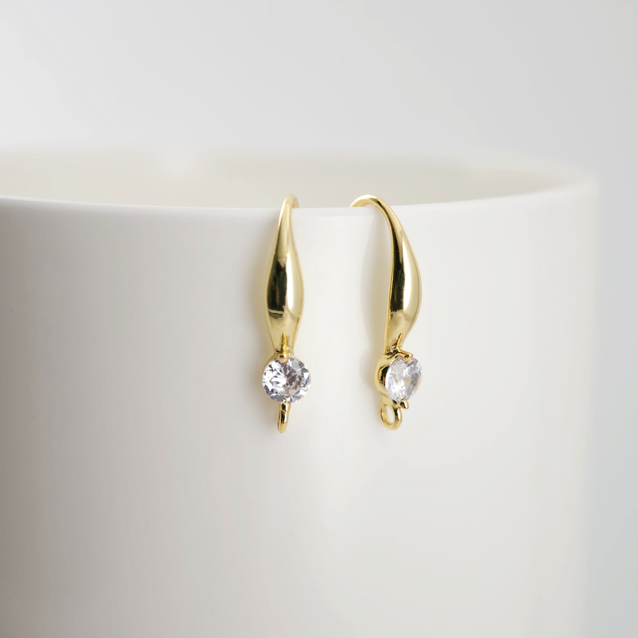 18K Gold Plated Ear Wires, Round Cubic Pave Earring Hooks, Nickel Free, Fish Hooks, Ear Wires for Jewelry Making D0138