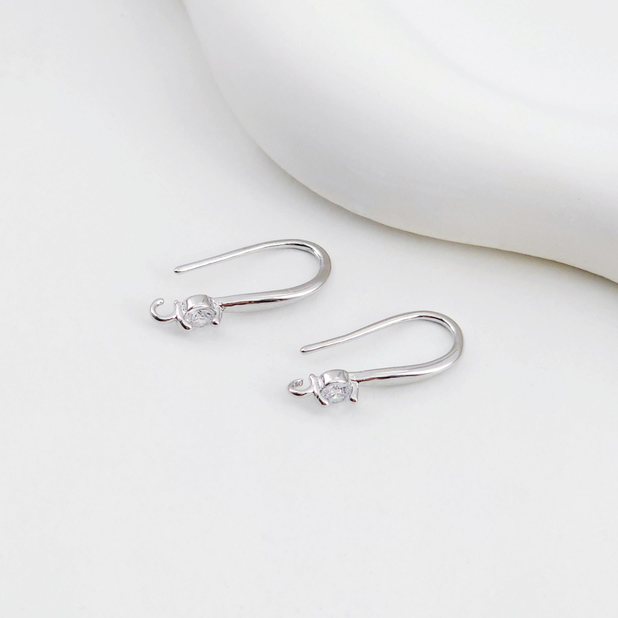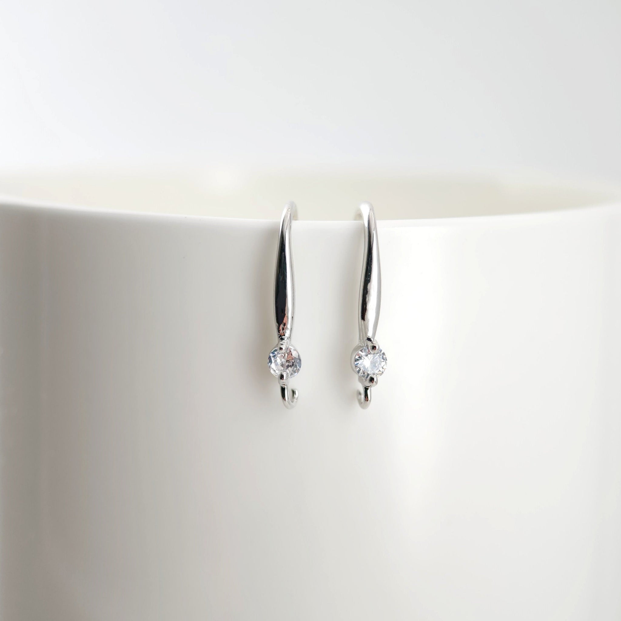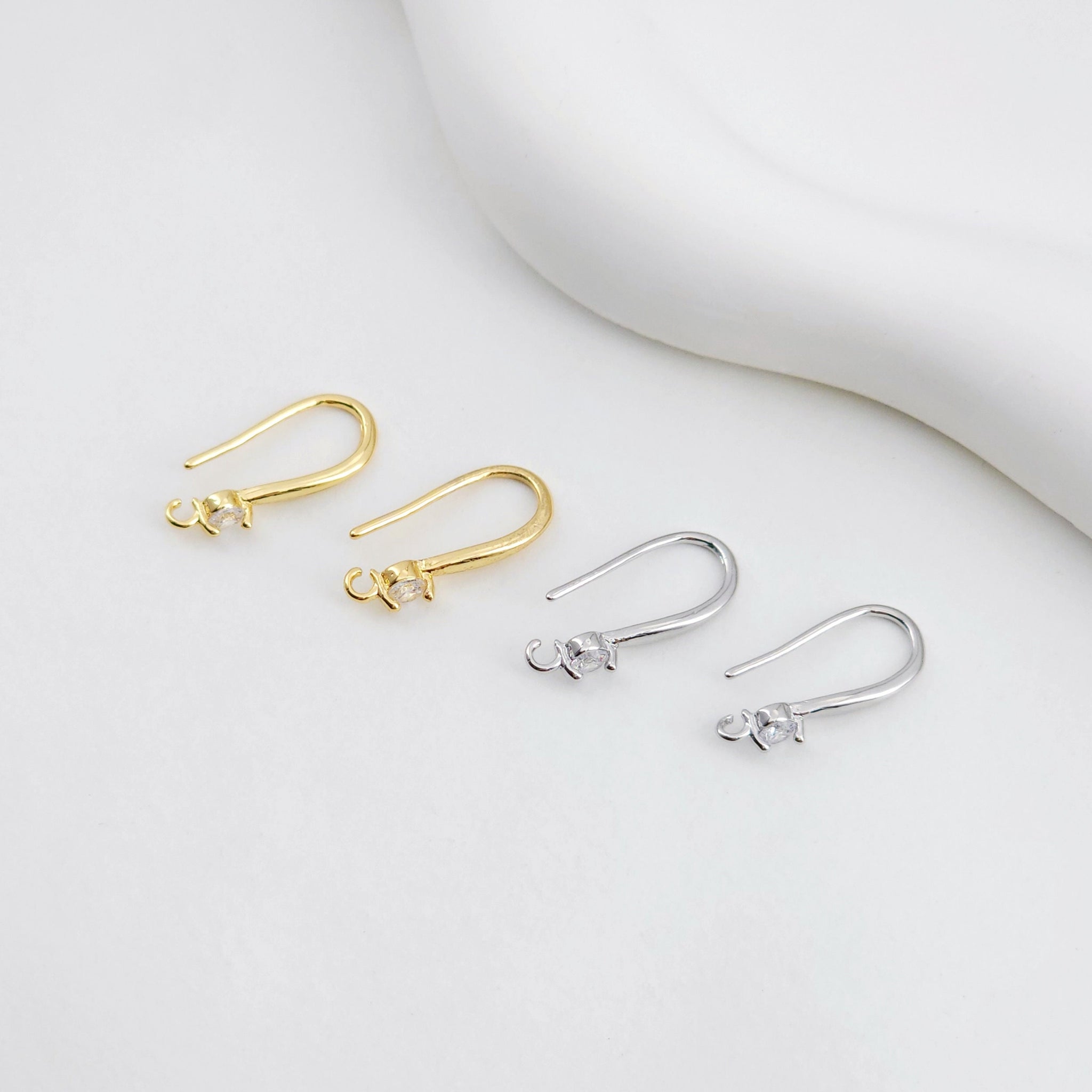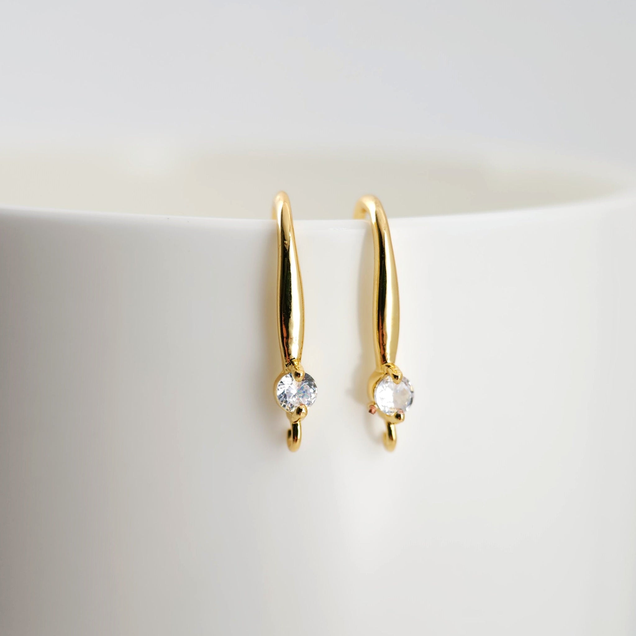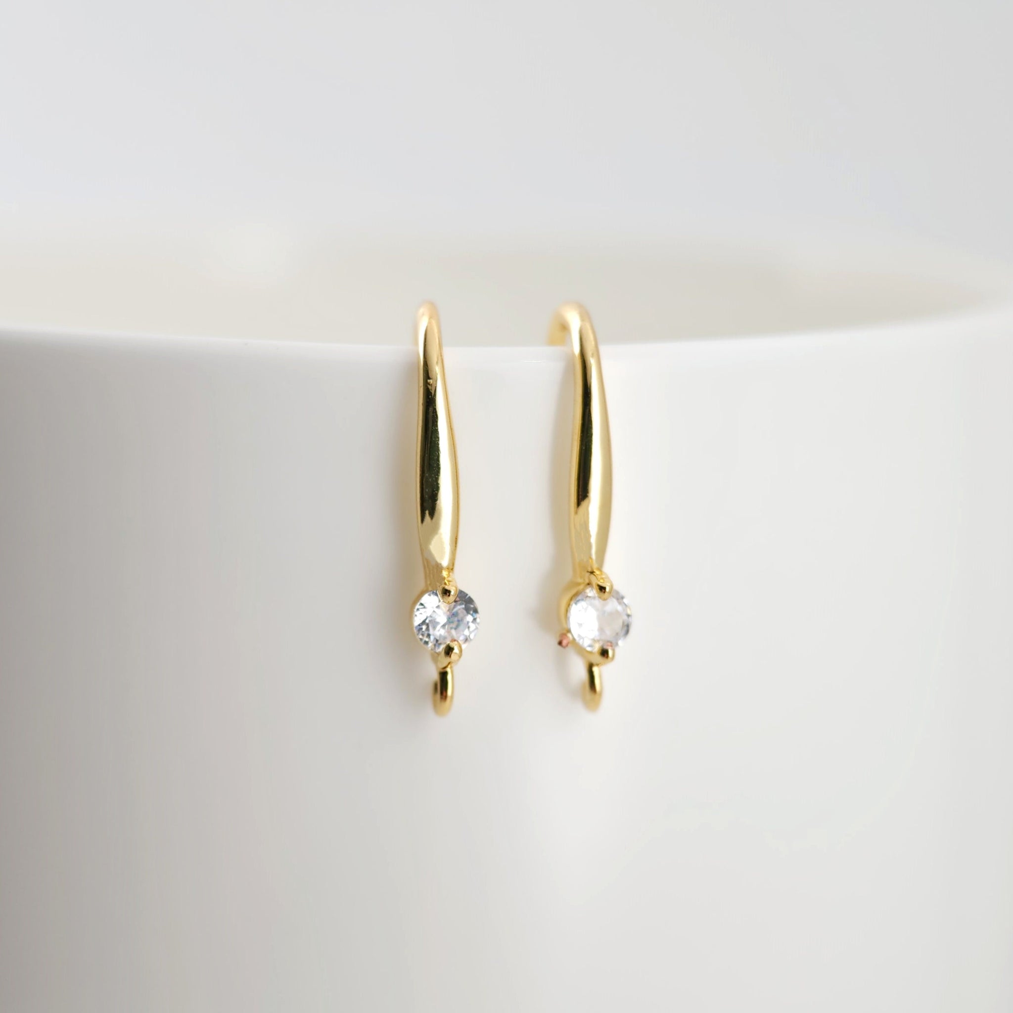 18K Gold Plated Ear Wires, Round Cubic Pave Earring Hooks, Nickel Free, Fish Hooks, Ear Wires for Jewelry Making D0142