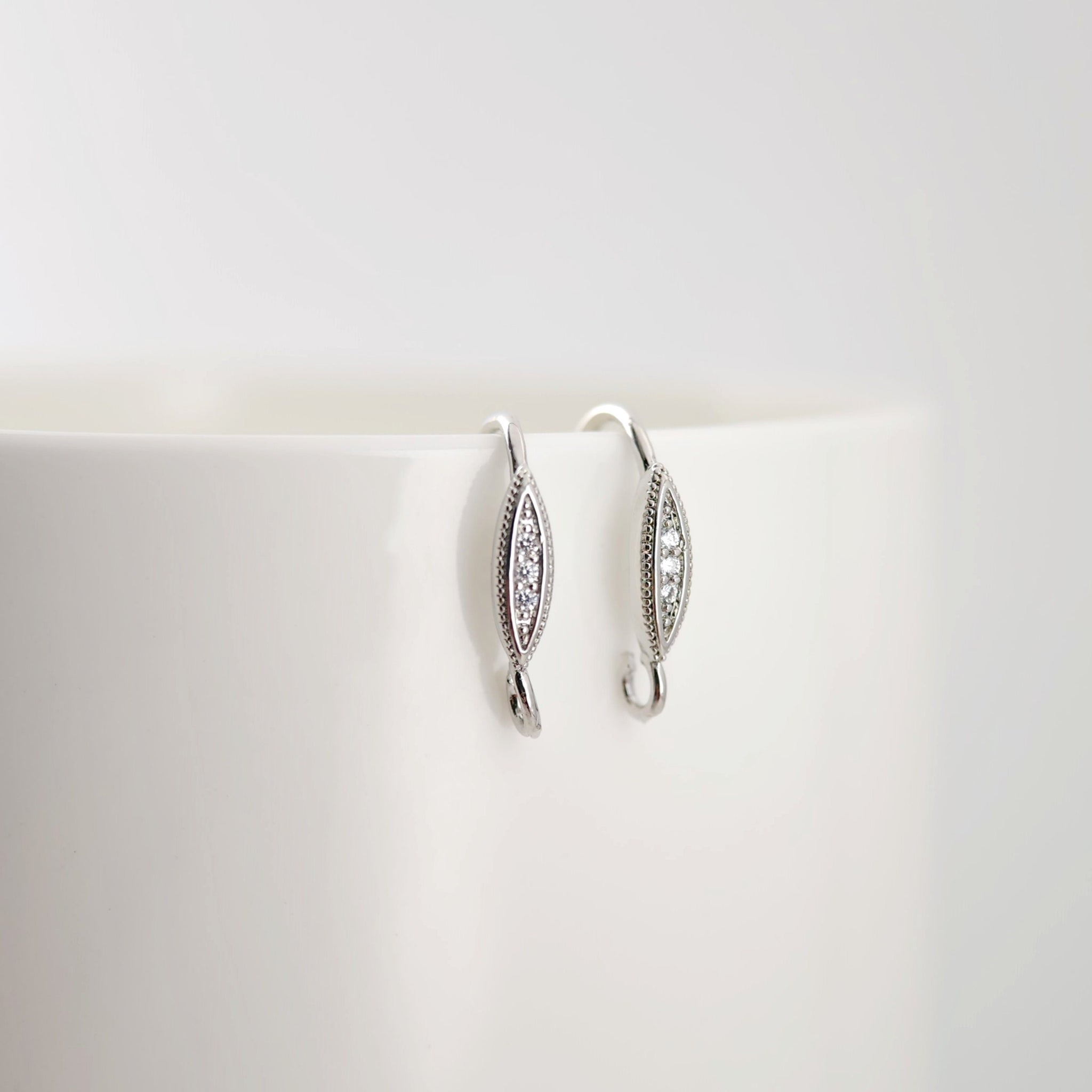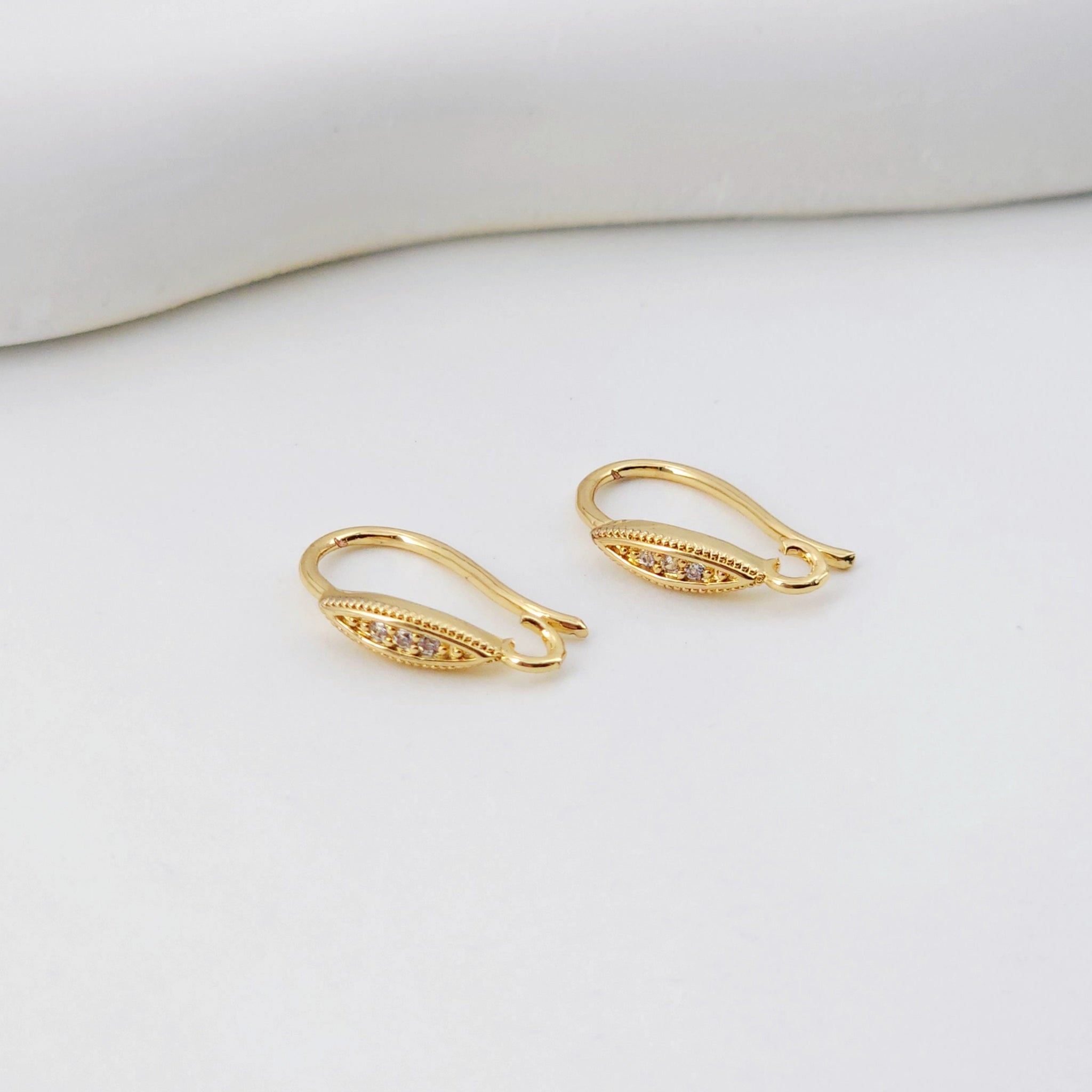 18K Gold Plated Ear Wires, Oval Cubic Pave Earring Hooks, Nickel Free, Fish Hooks, Ear Wires for Jewelry Making D0137