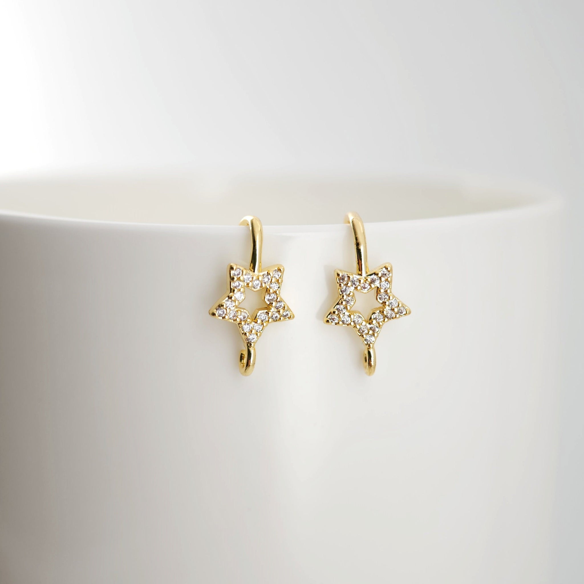 18K Gold Plated Ear Wires, Star Cubic Pave Earring Hooks, Nickel Free, Fish Hooks, Ear Wires for Jewelry Making D0133