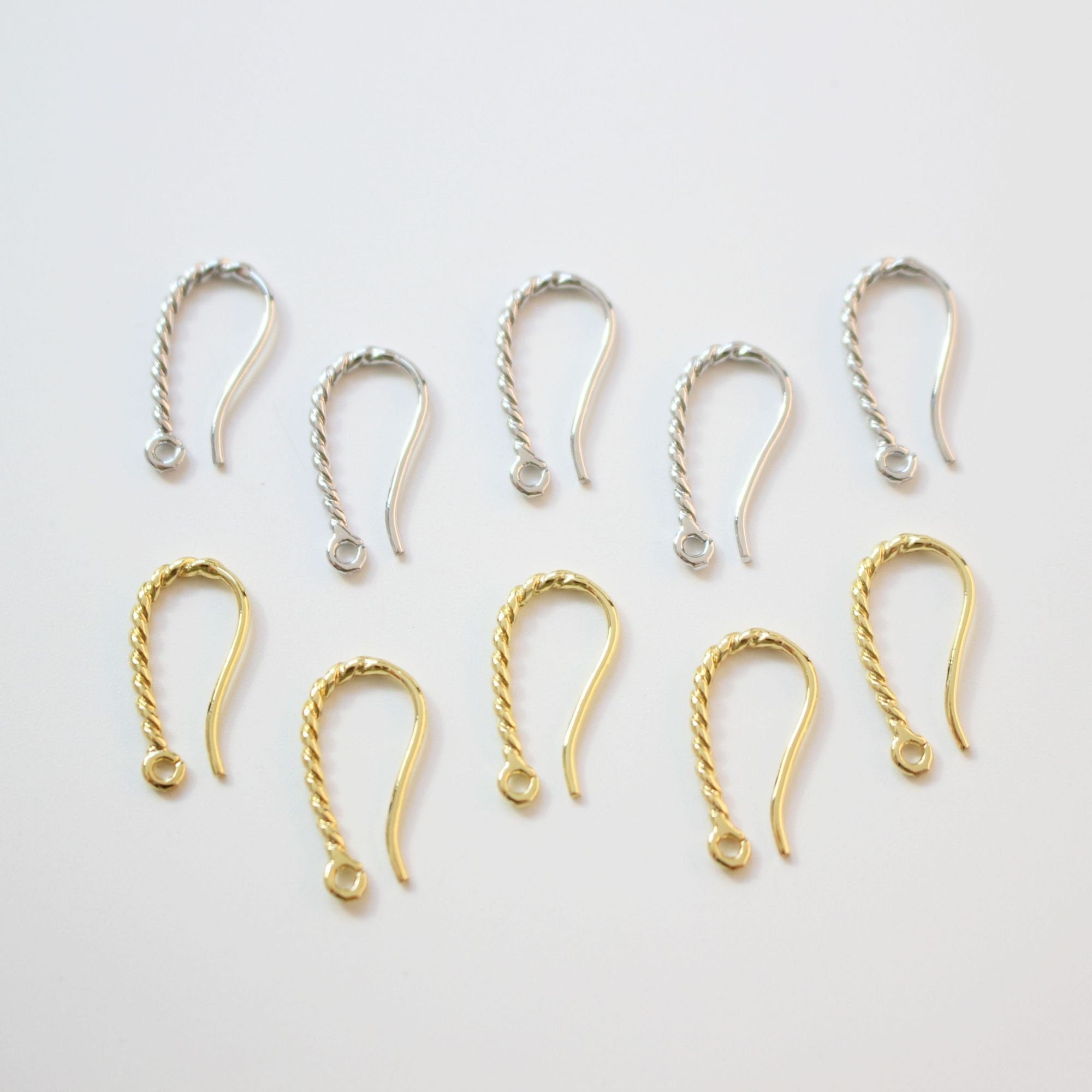 Twisted Ear Hooks, 14K Gold Earring Earring findings with loop, Fish Hooks, Ear Wires for Jewelry Making GT061