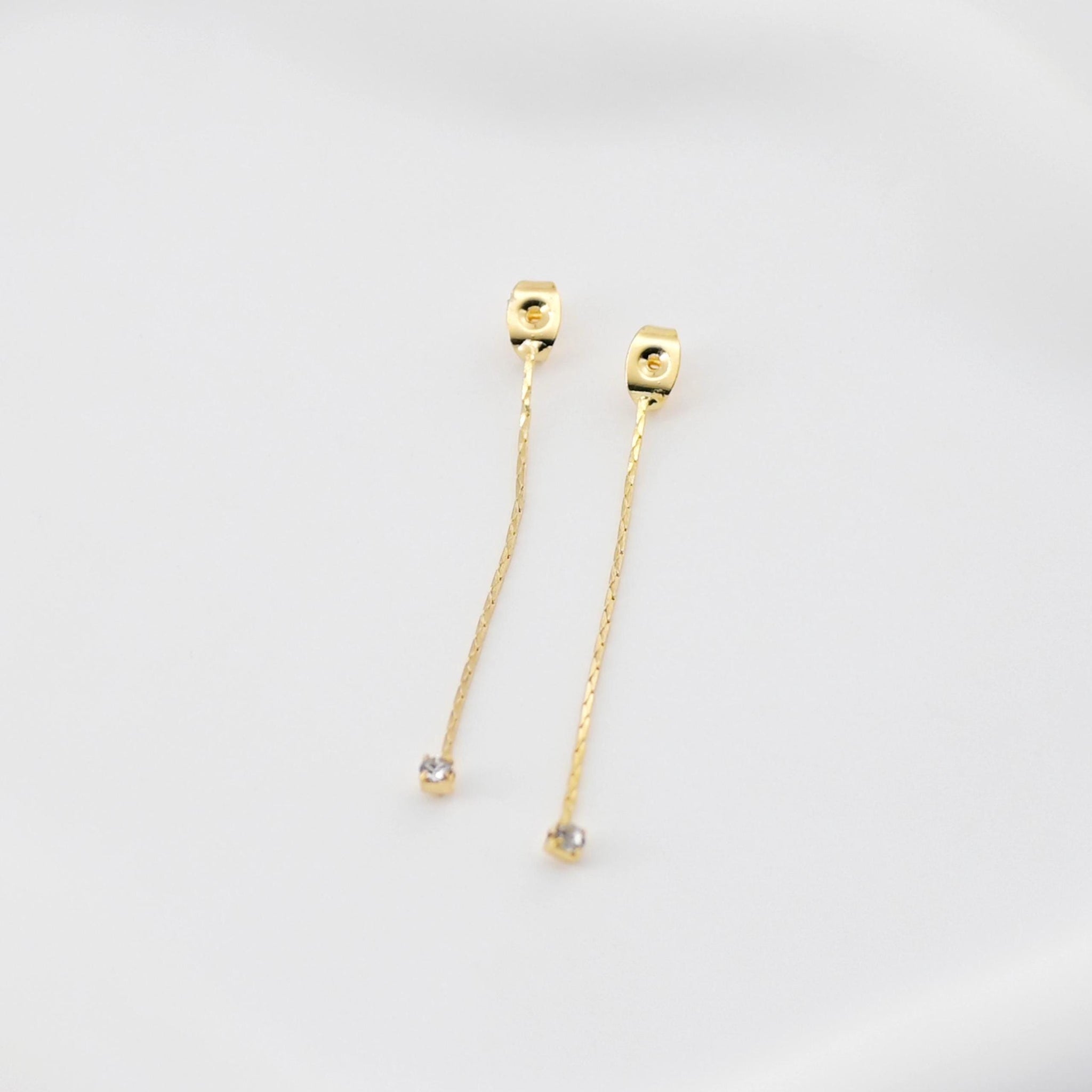 10pcs 18k Real Gold Plated Earring Back with Chain Tassels, CZ Pave, Hypoallergenic Earring Backs for Studs, Jewelry making Findings ZX365