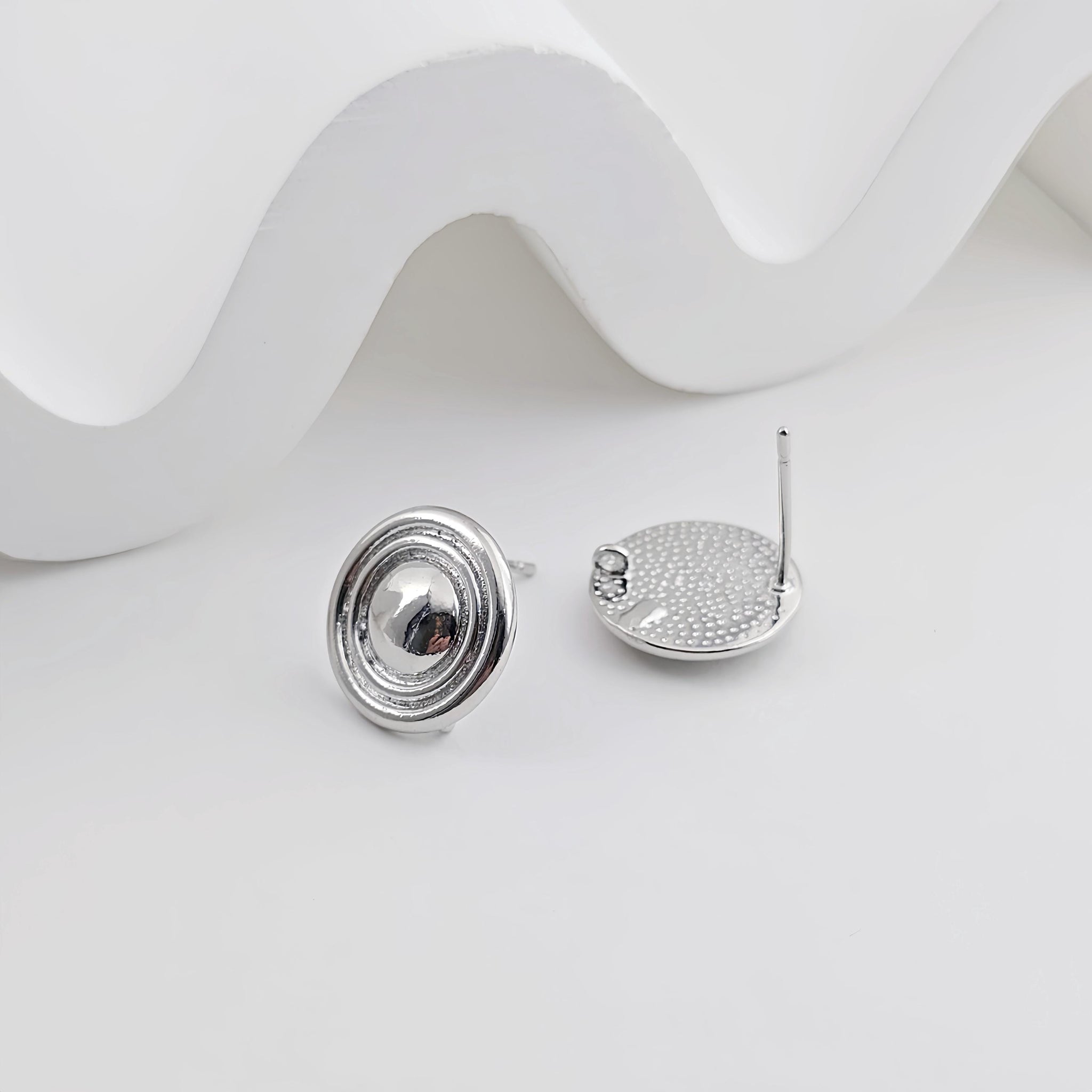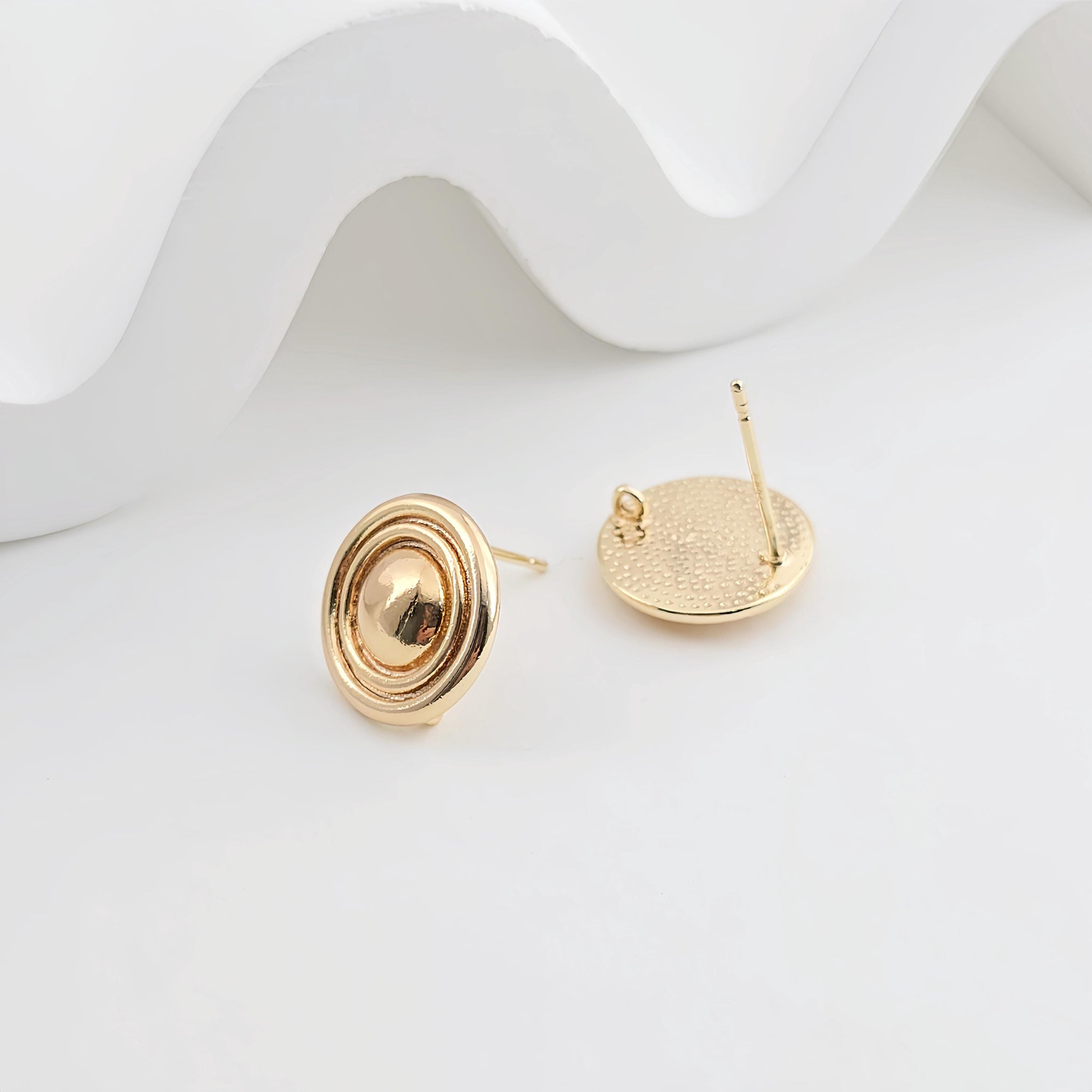 18K Gold Round Engraved Post With Loop, Round Stud Earring Nickel Free, 13.5mm, Hypoallergenic Earring Findings ZX264