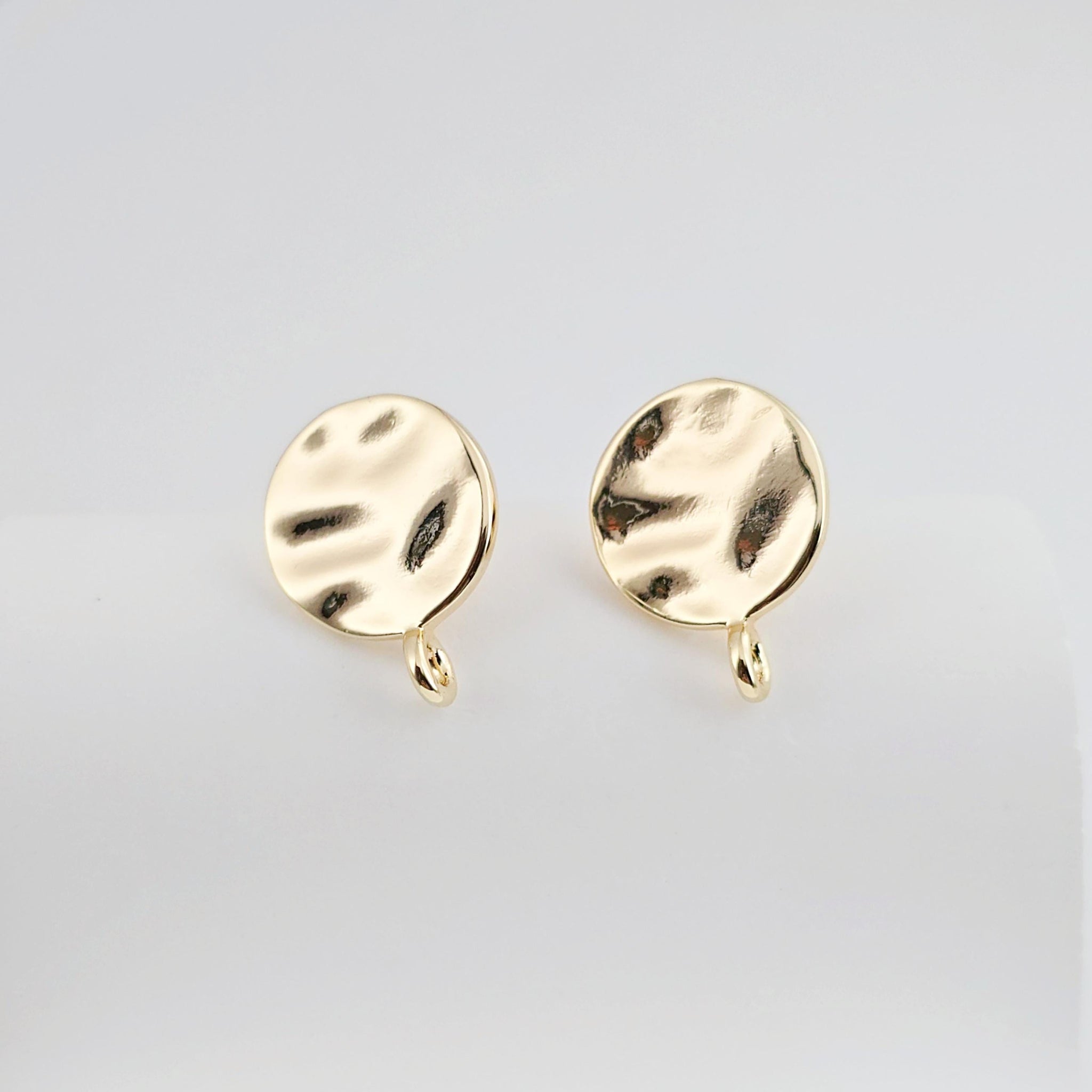 18K Gold Round Textured Post With Loop, S925 Silver Pin, Round Stud Earring Nickel Free, 13.5mm, Hypoallergenic Earring Findings ZX253
