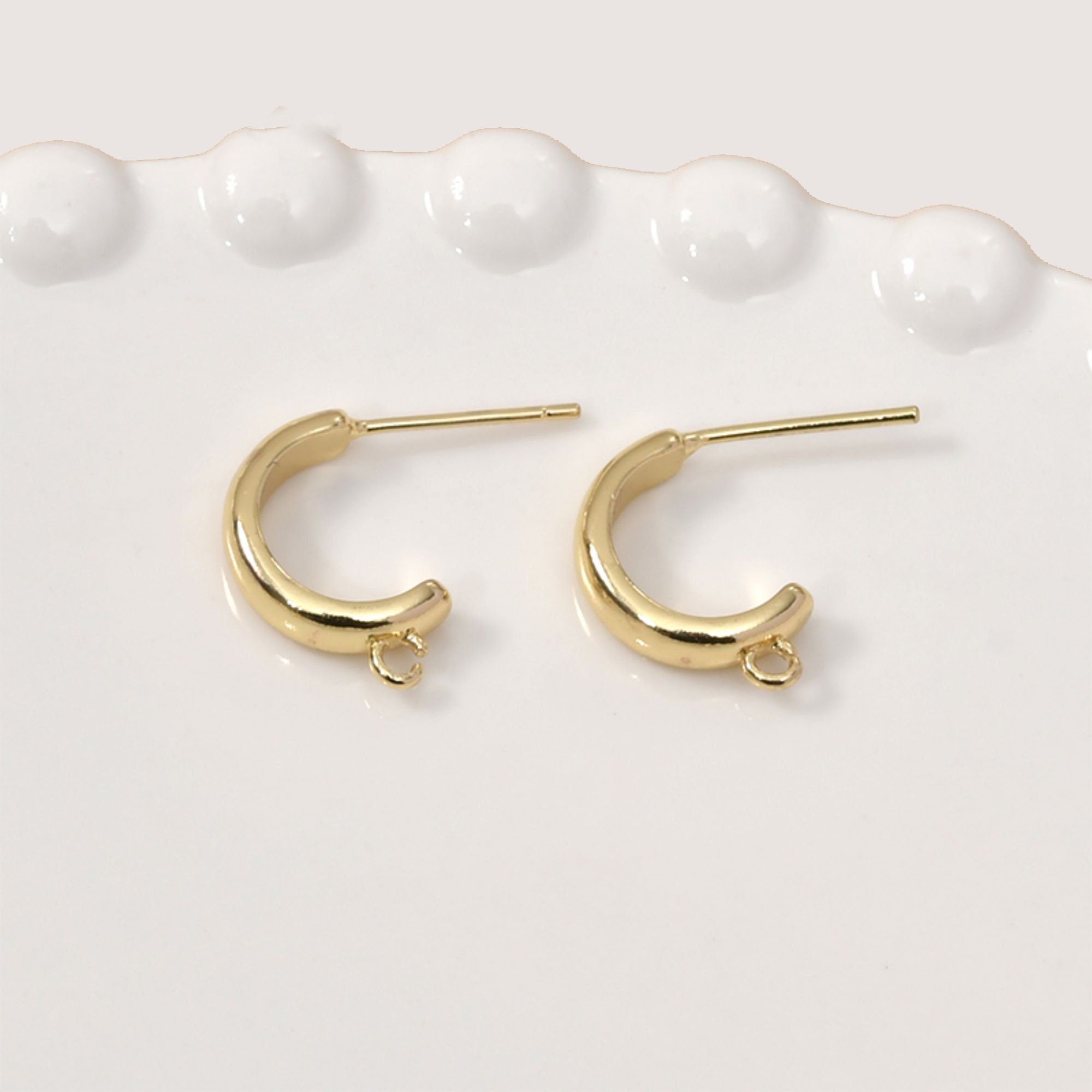 C Shape Earrings Post With Loop, 14K Gold, S925 Silver Ear Pin Nickel Free Earrings, Ear...