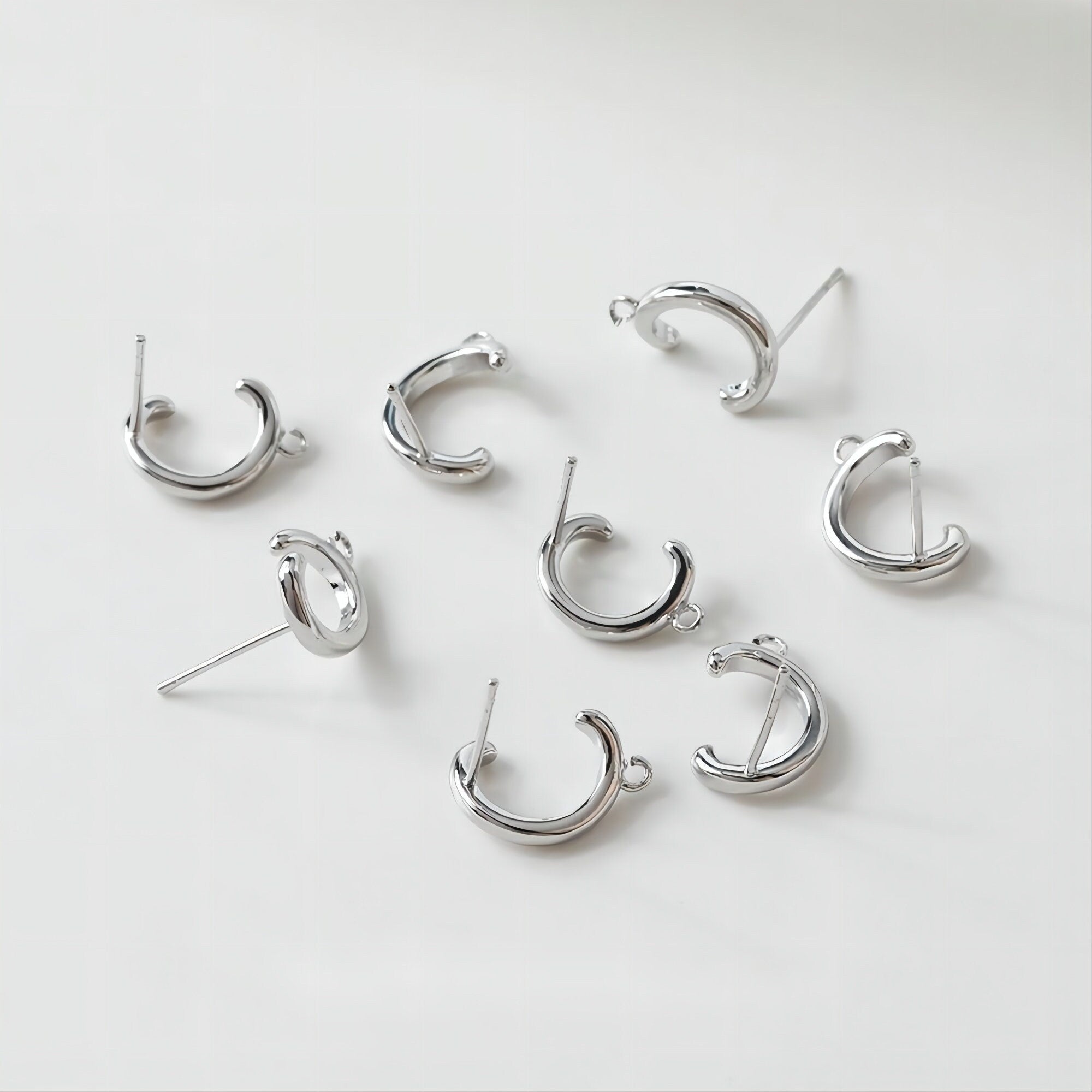 C Shape Earrings Post With Loop, 14K Gold, S925 Silver Ear Pin Nickel Free Earrings, Ear...