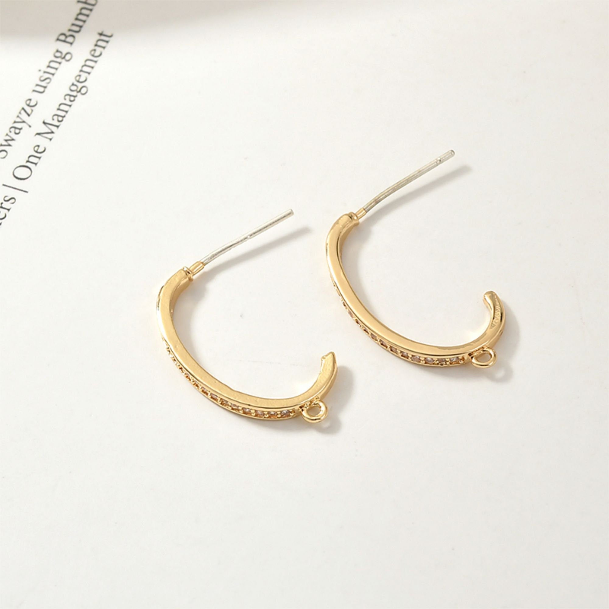 C Shape Earrings Post With Loop, 14K Gold/Silver Plated, S925 Silver Ear Pin Nickel Free Earrings, Pave Cubic Stone, Earring Findings YL002