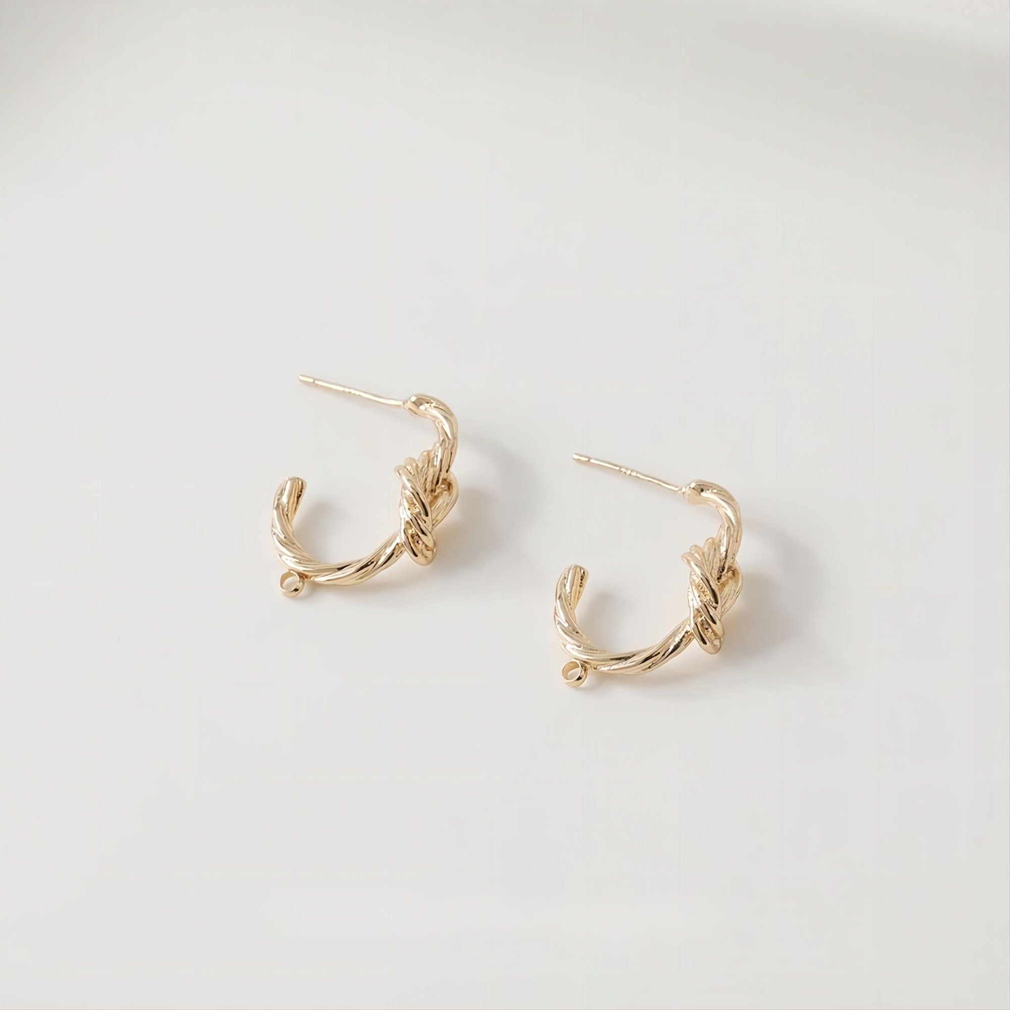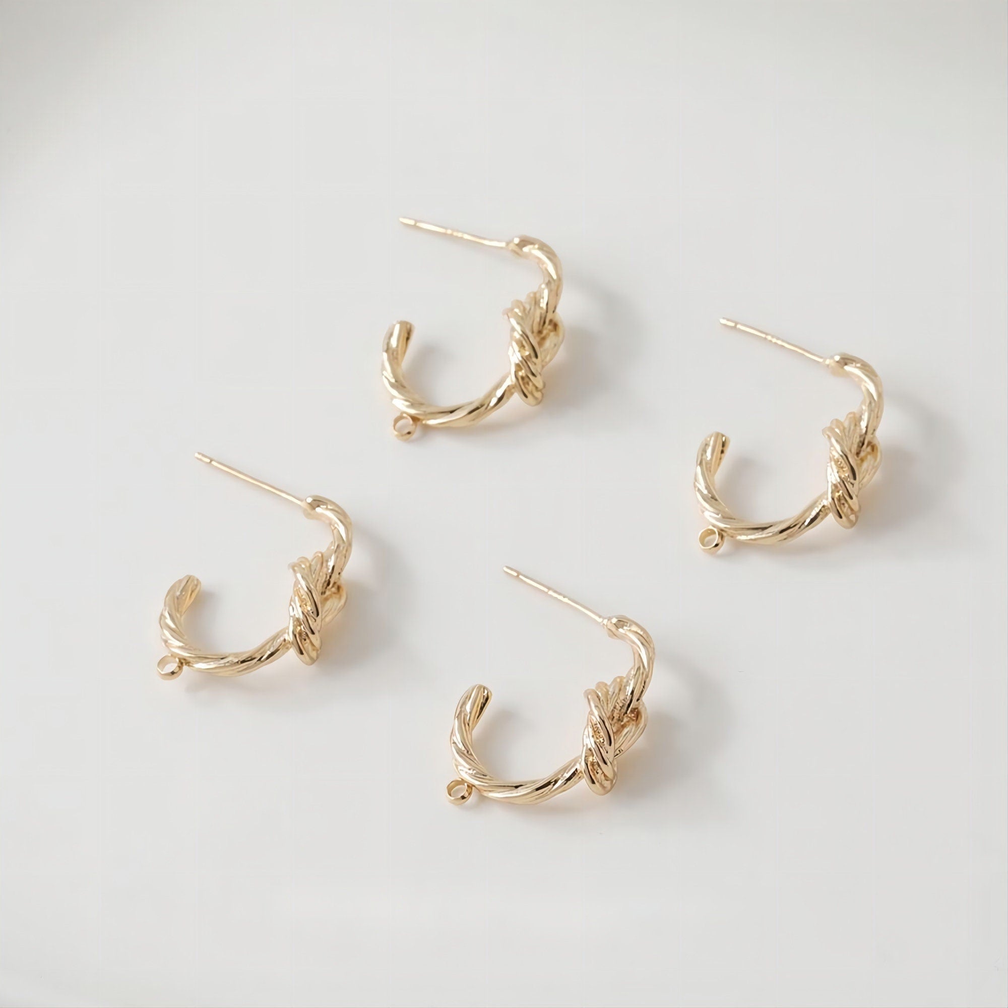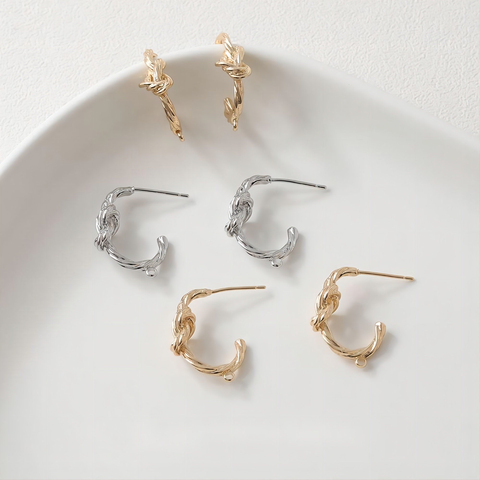 C Shape Knot Earrings Post, 14K Gold, S925 Silver Ear Pin Nickel Free Earrings, Ear Stud Hypoallergenic Earring Findings GE078-D0431